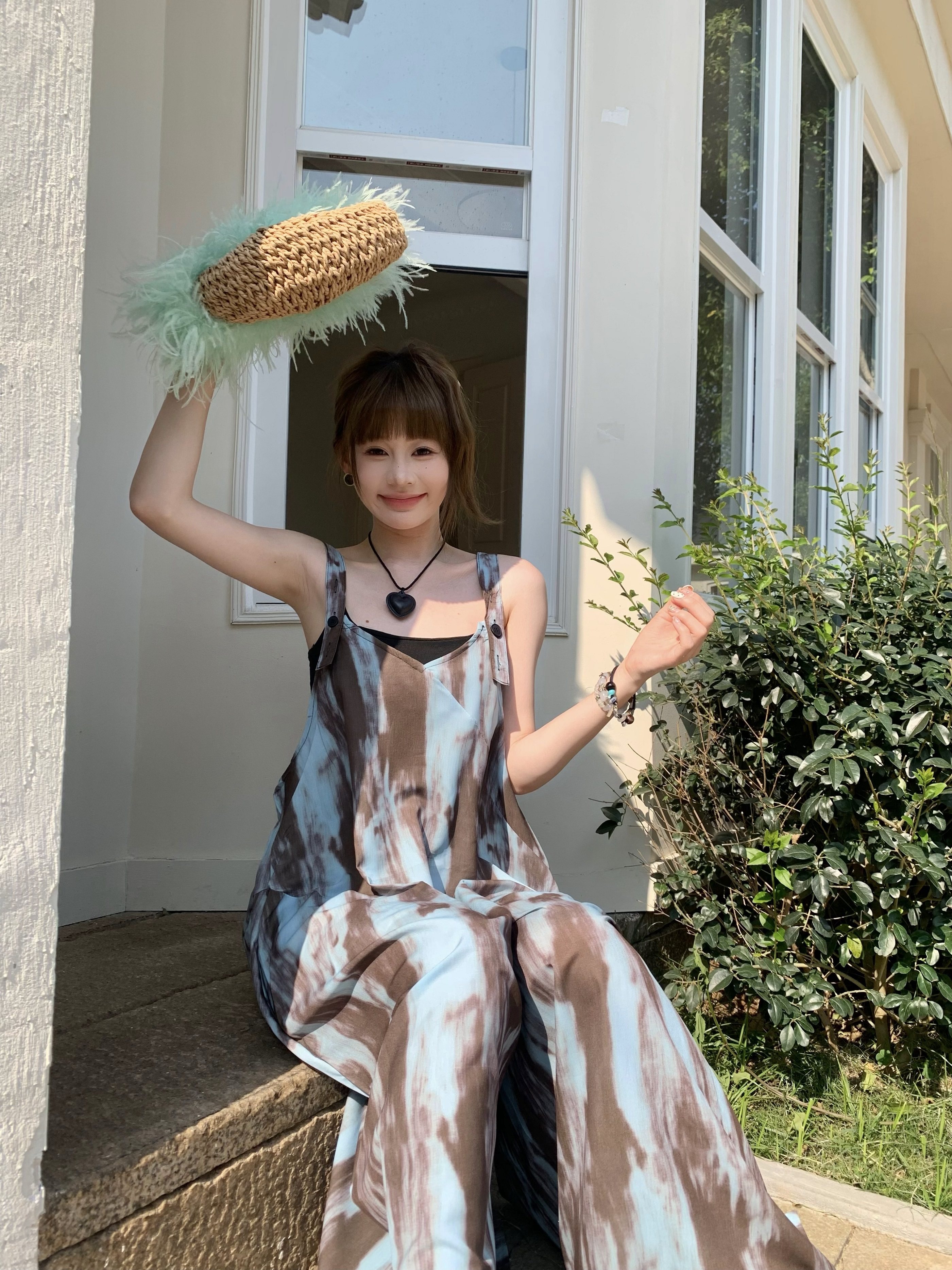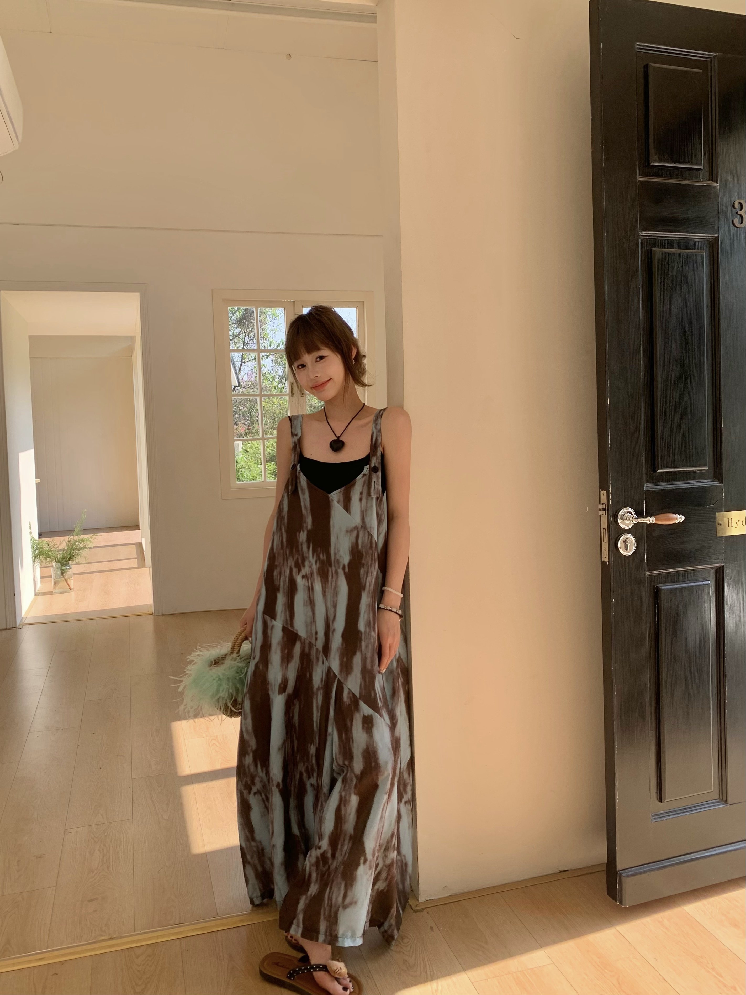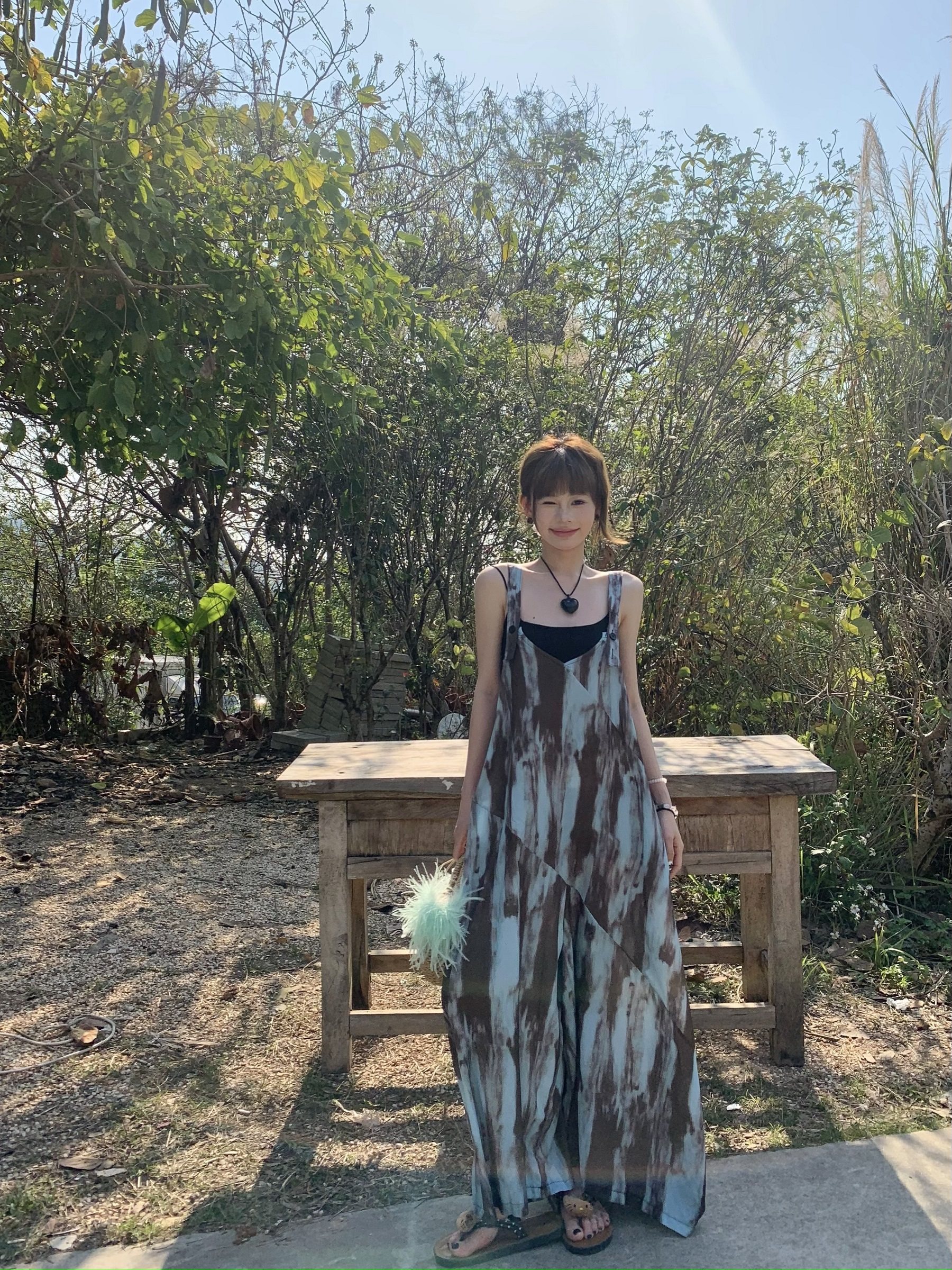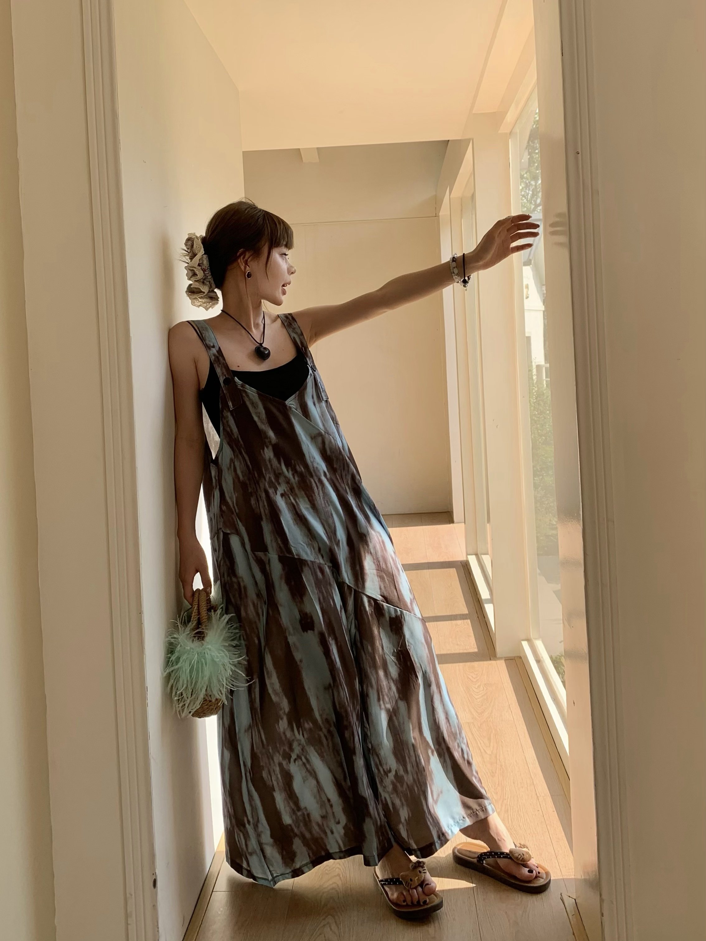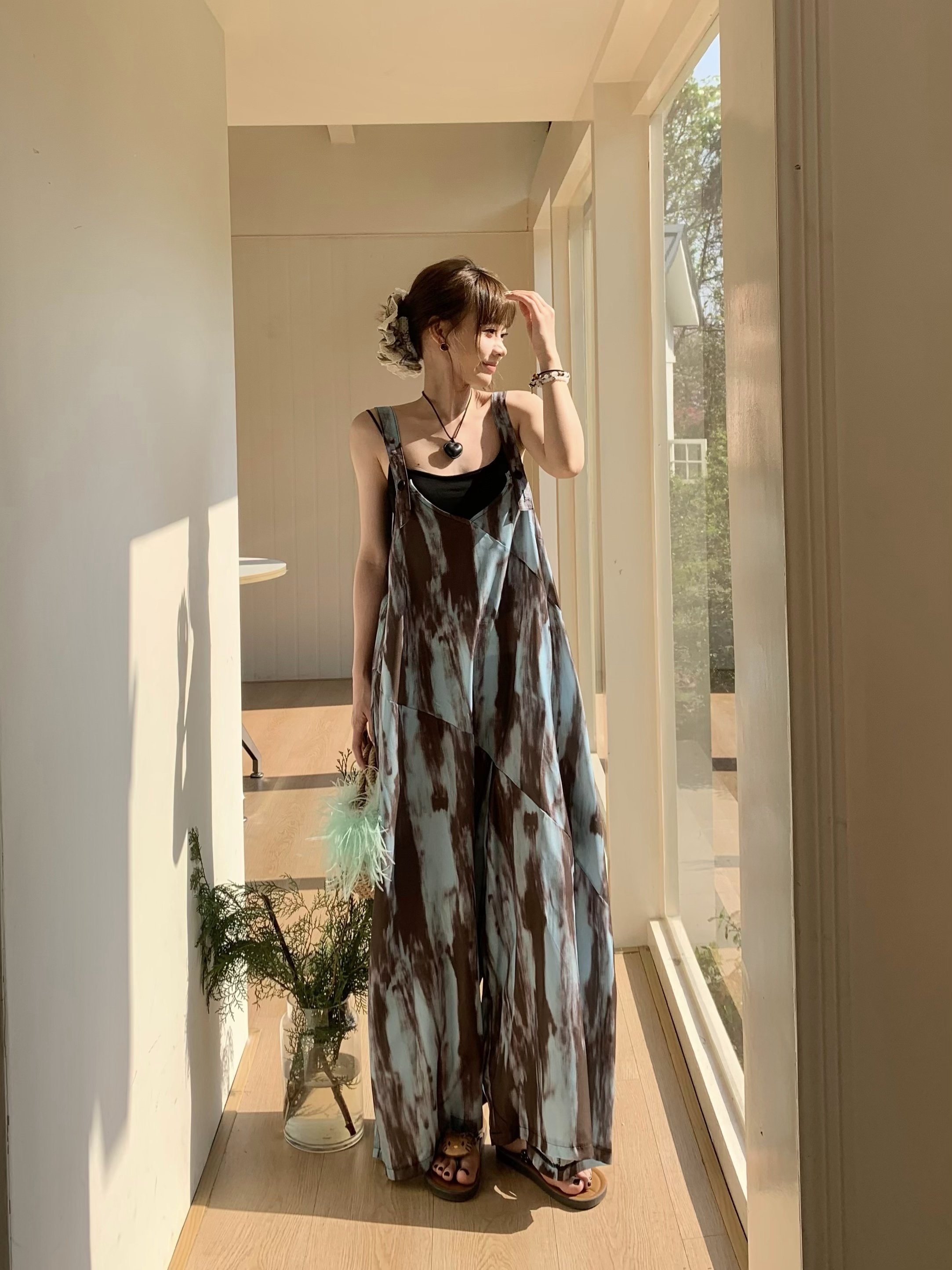 【ボトムス】アートタイダイデザイン 夏 ゆったりカジュアル リラックスシルエット Vネックキャミオールインワン【SHシリーズ】