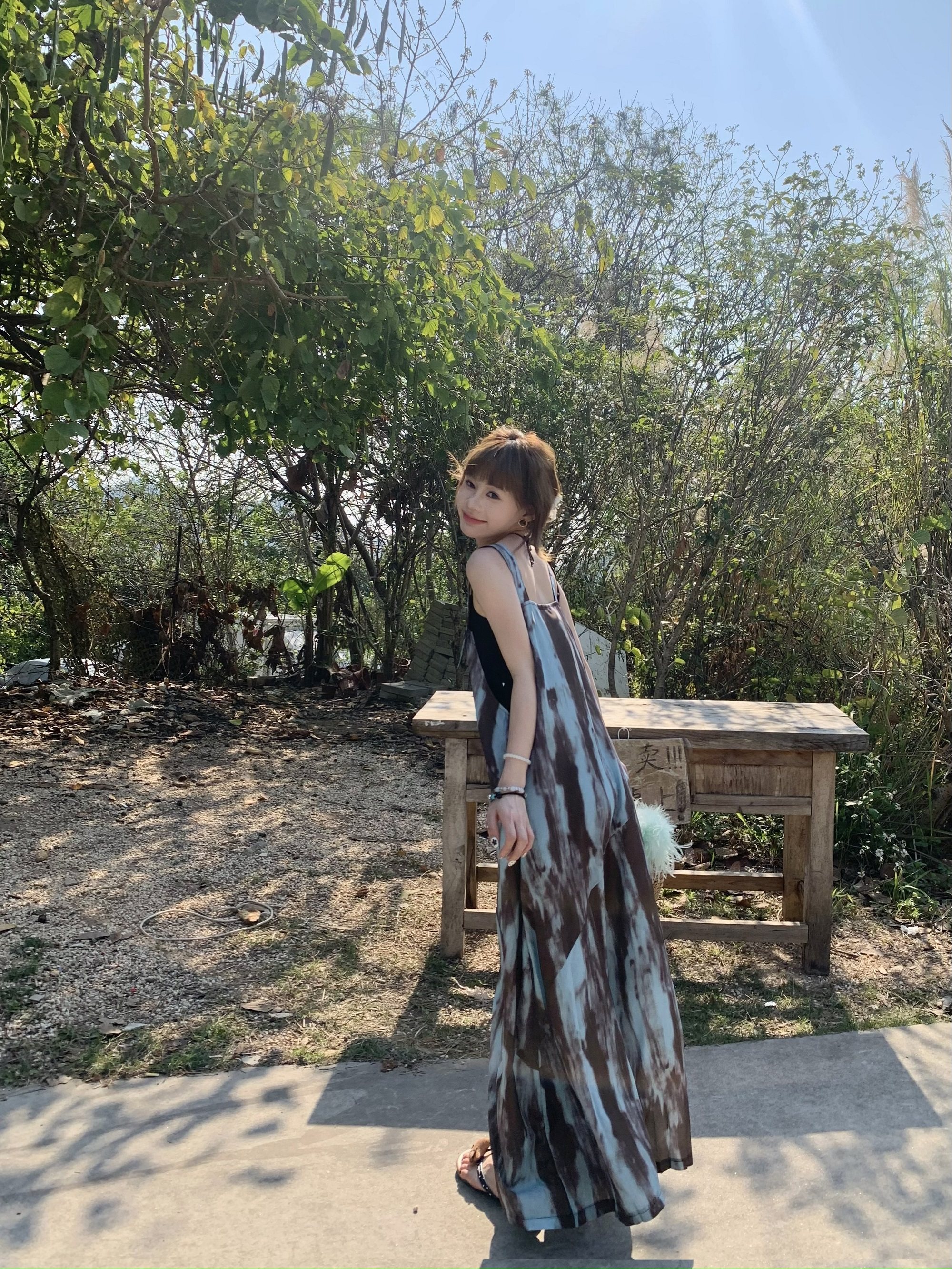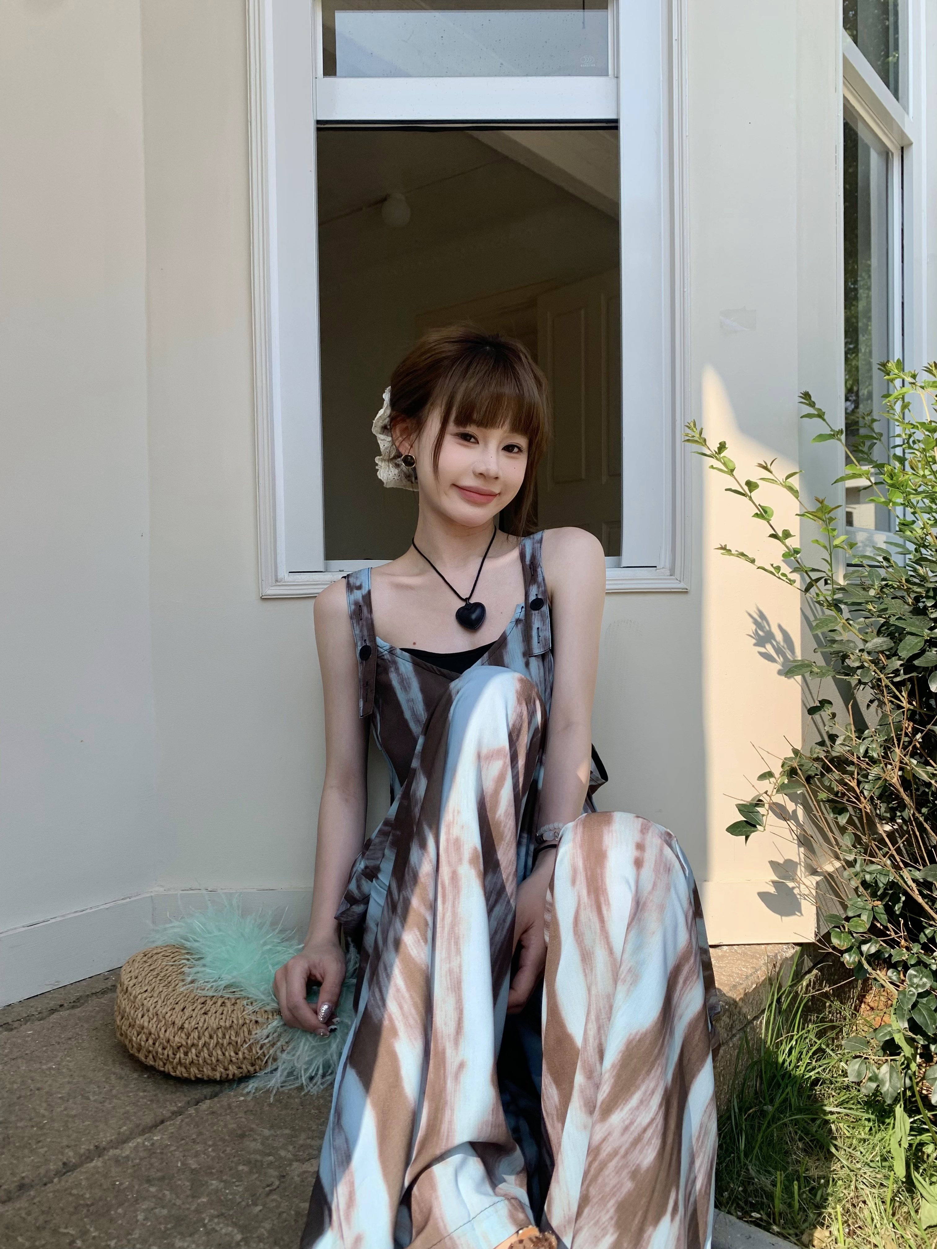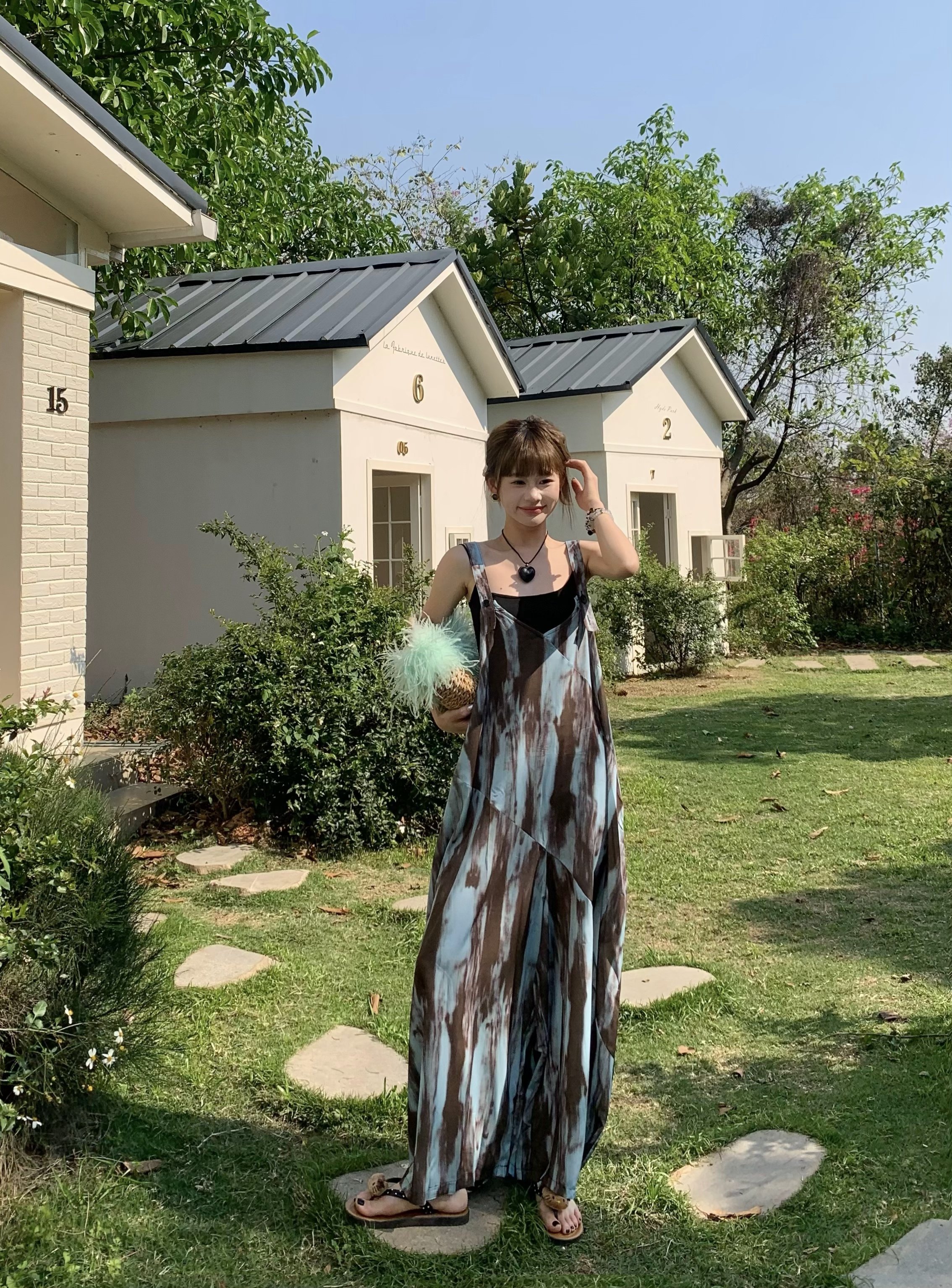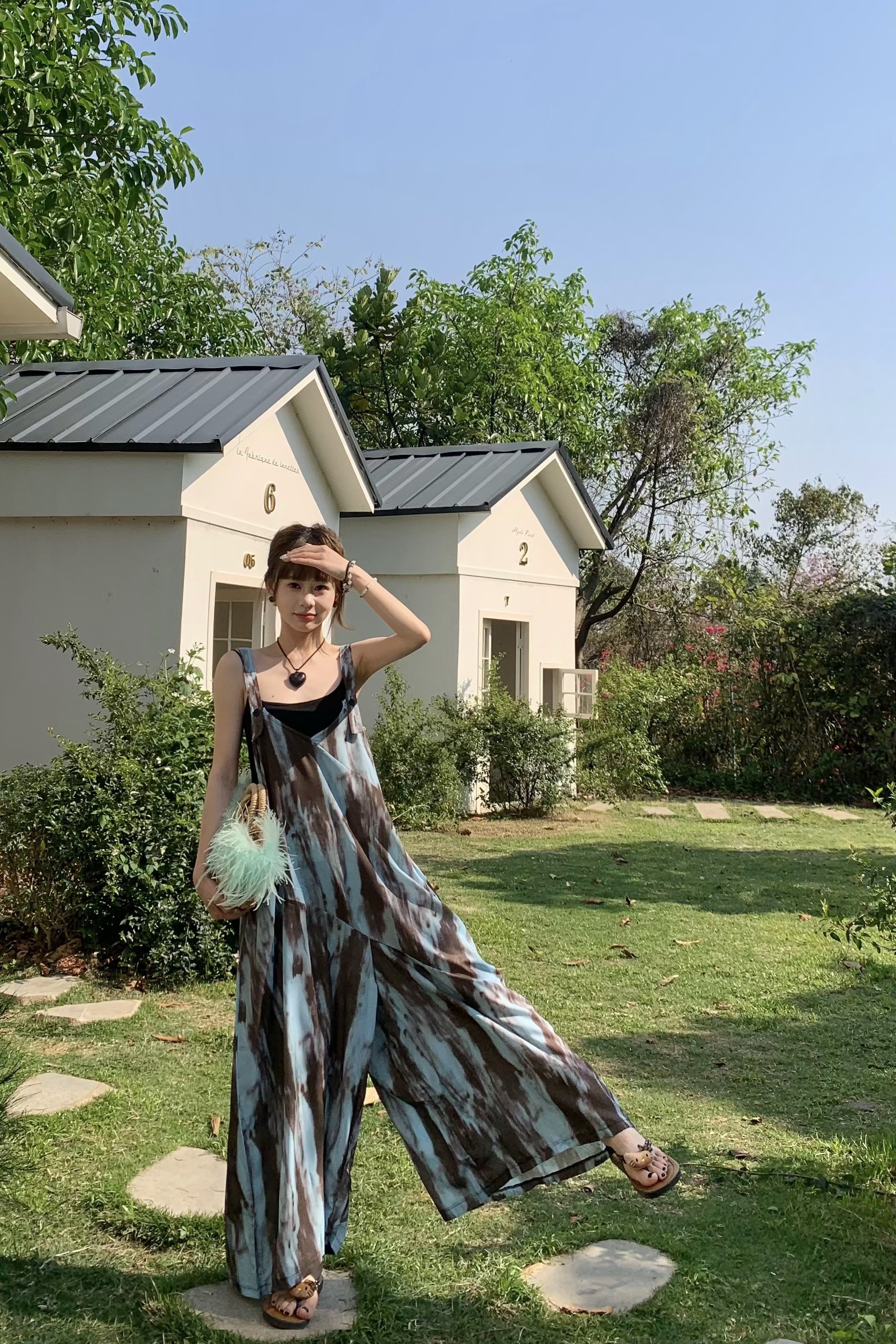 【ボトムス】アートタイダイデザイン 夏 ゆったりカジュアル リラックスシルエット Vネックキャミオールインワン【SHシリーズ】