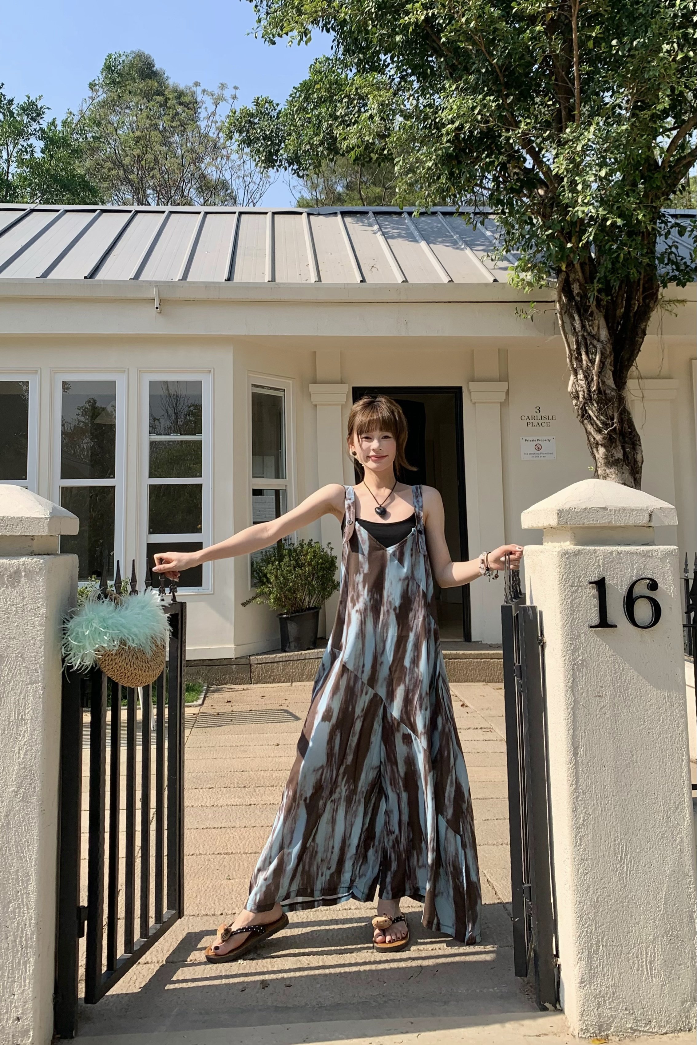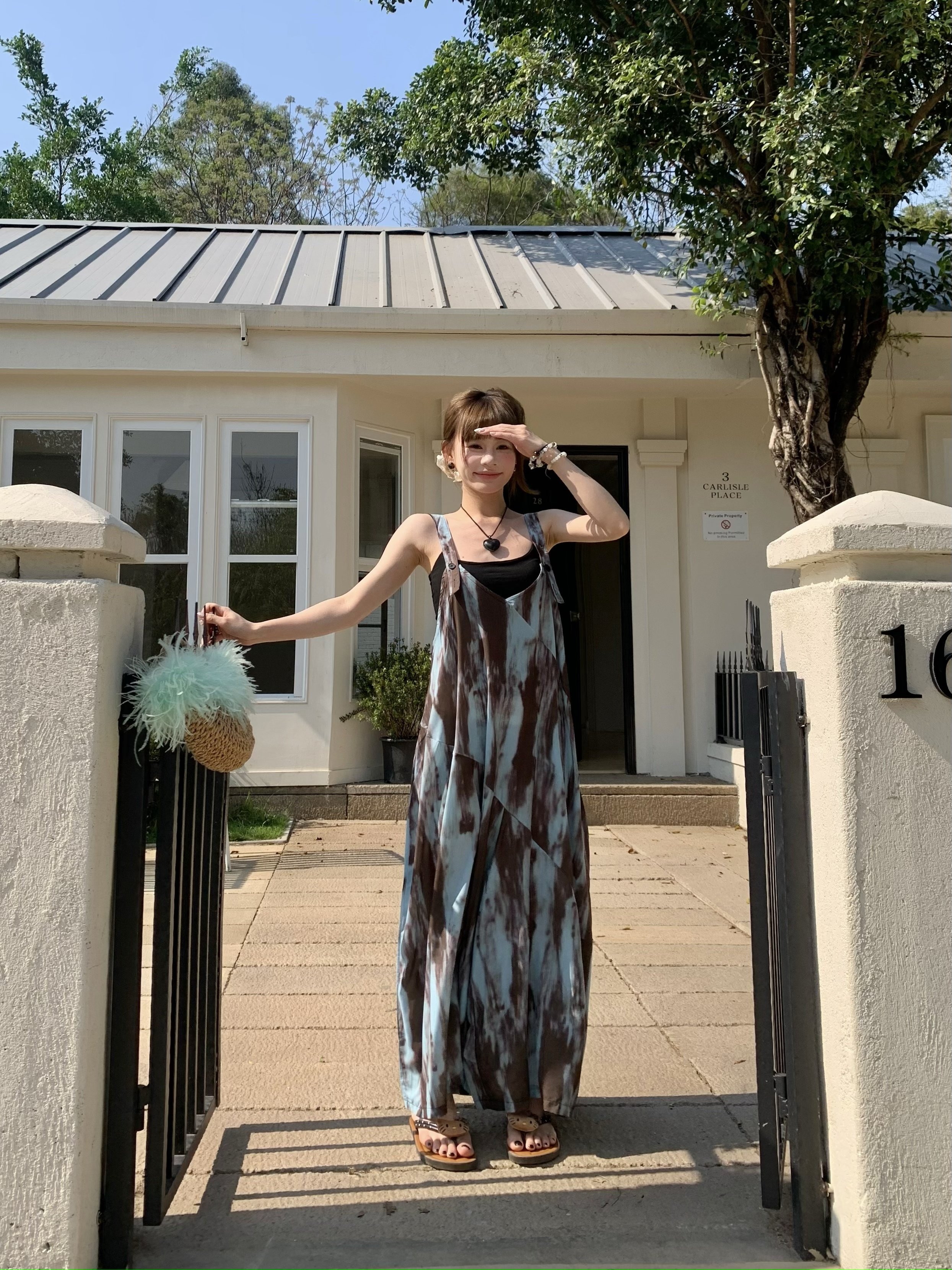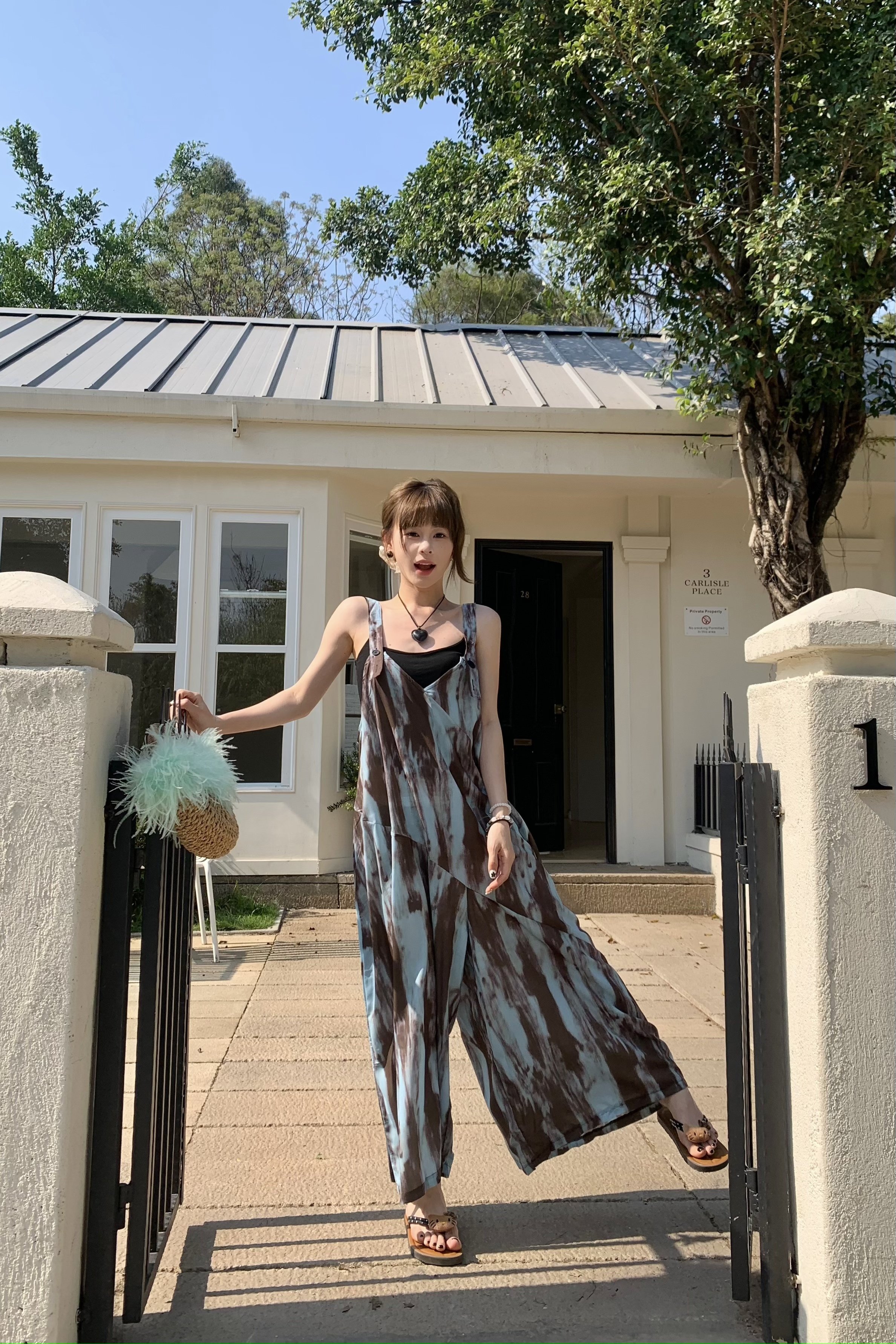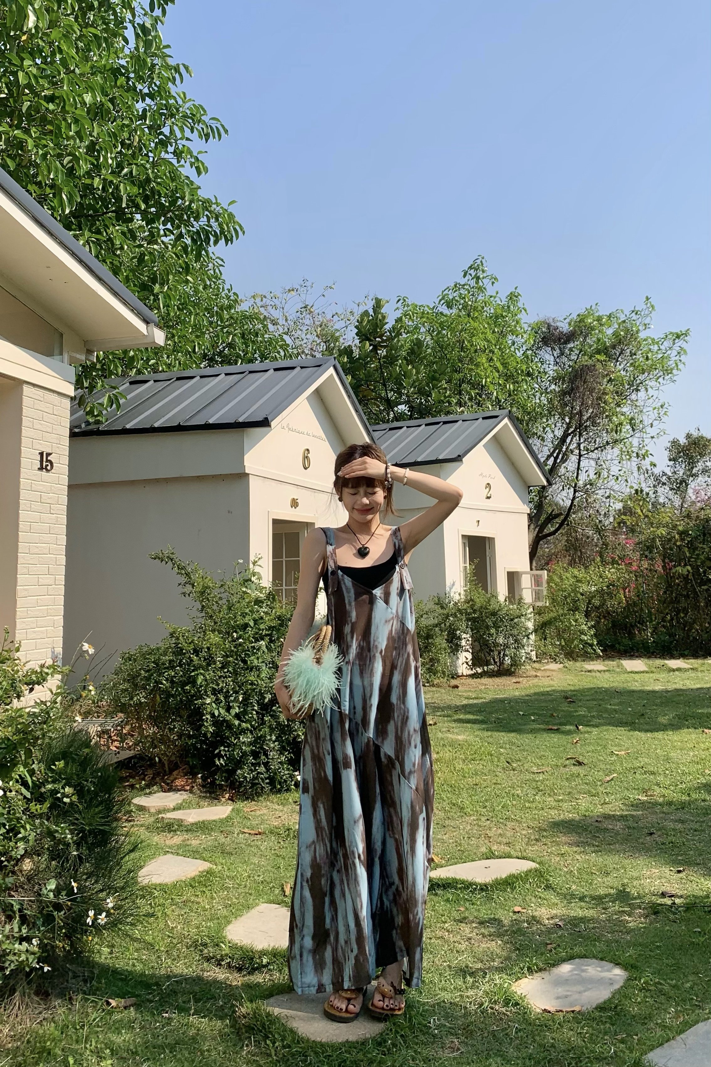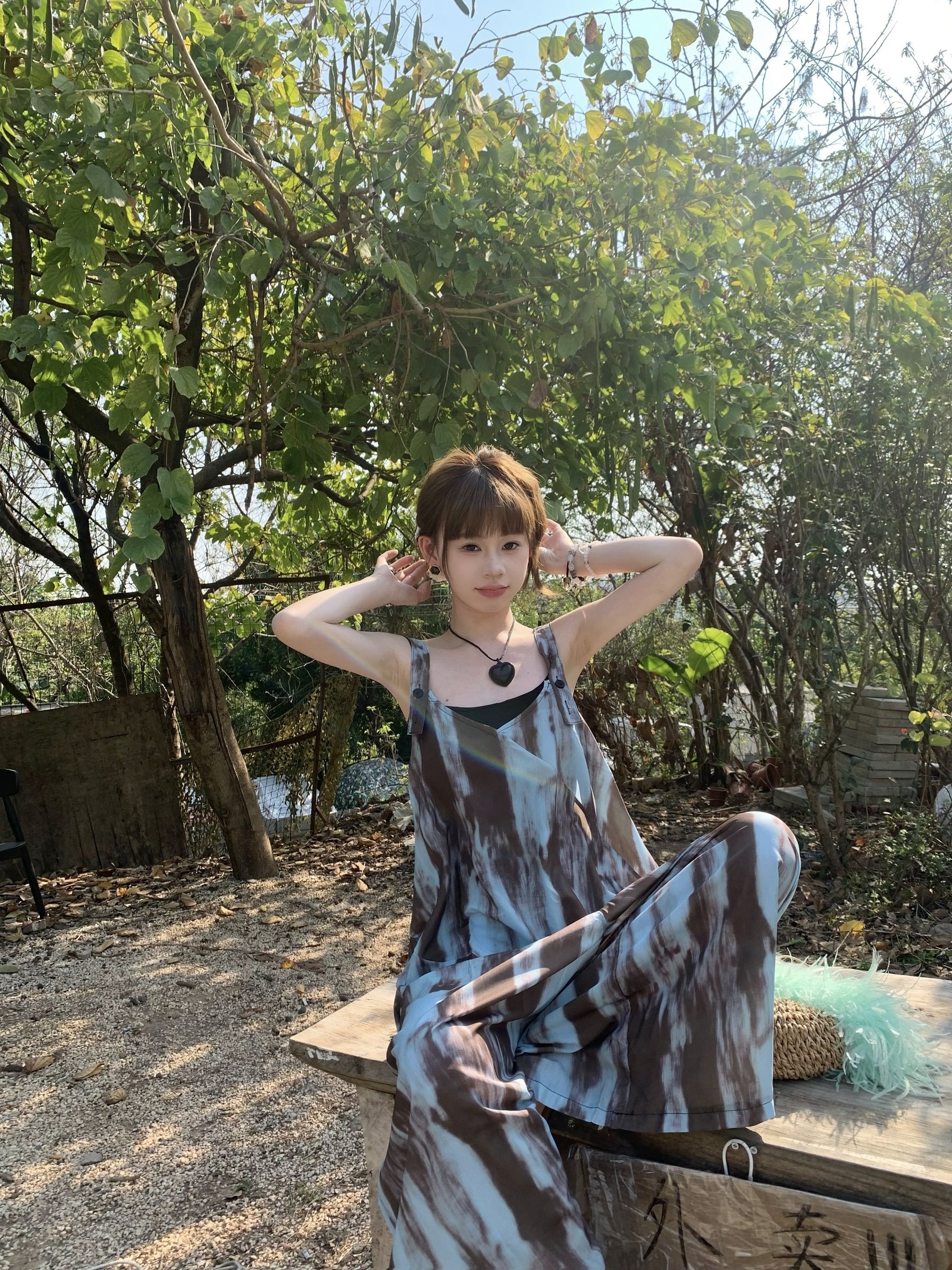 【ボトムス】アートタイダイデザイン 夏 ゆったりカジュアル リラックスシルエット Vネックキャミオールインワン【SHシリーズ】
