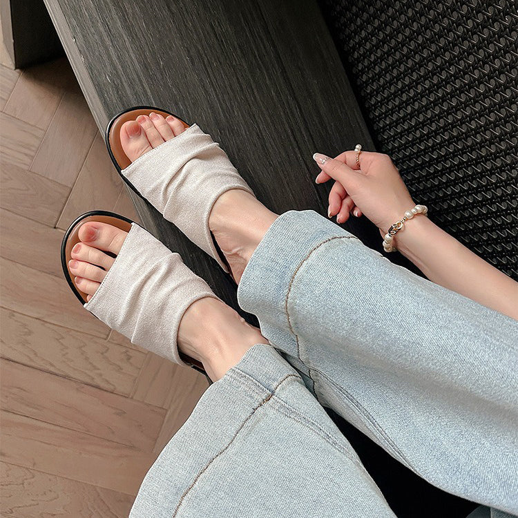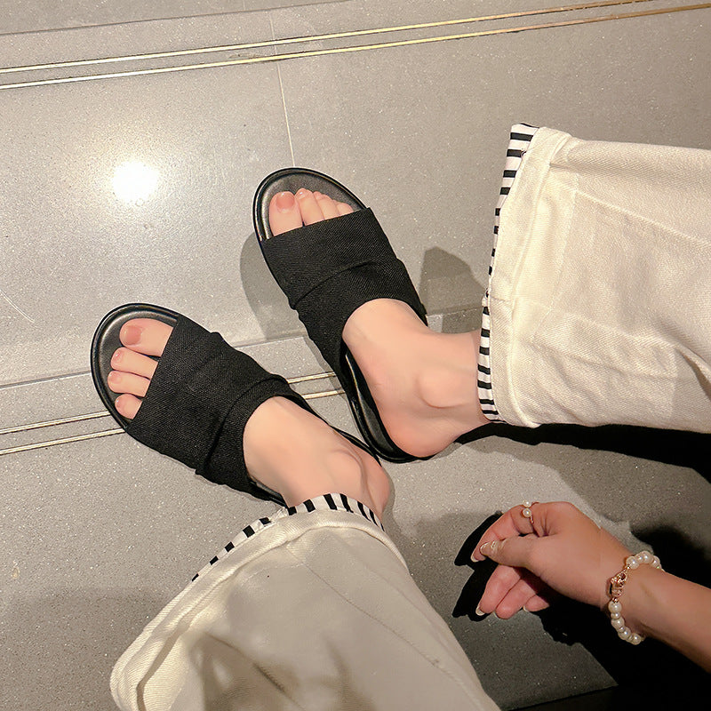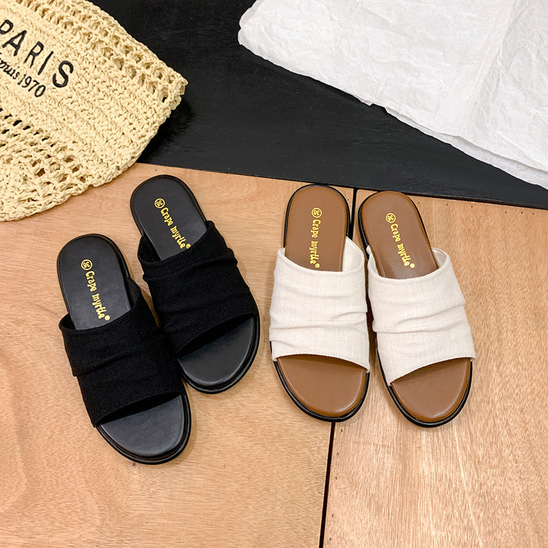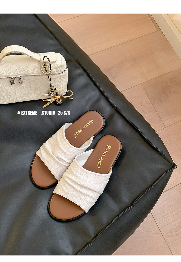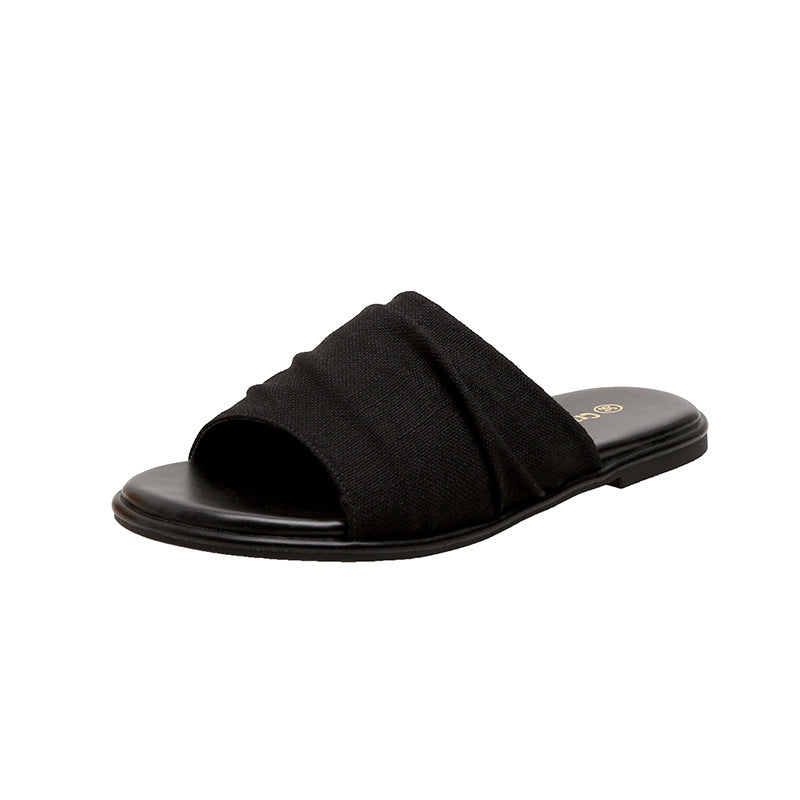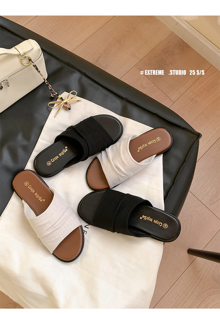 【商品名】【シューズ】夏新作 リゾート風 ビーチアラン 細かいシワ デザイン フラットサンダル レディース 外履き用