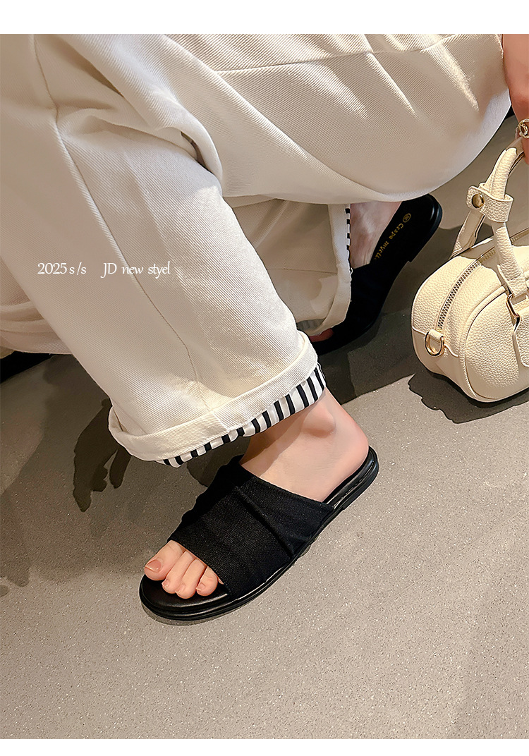 【シューズ】夏新作 リゾート風 ビーチアラン 細かいシワ デザイン フラットサンダル レディース 外履き用