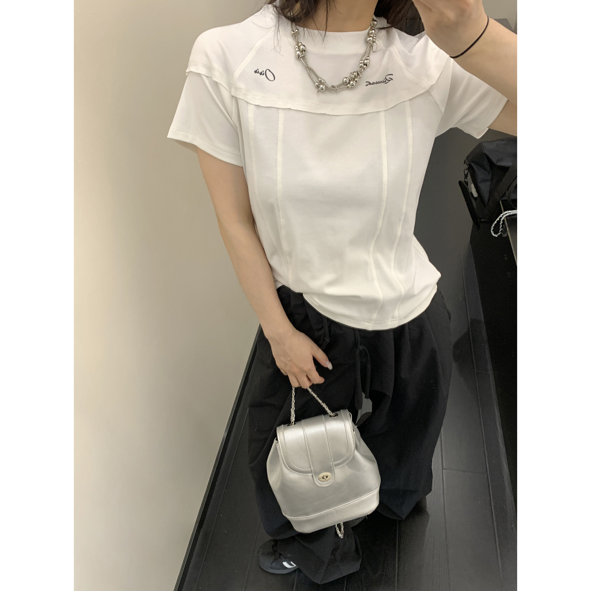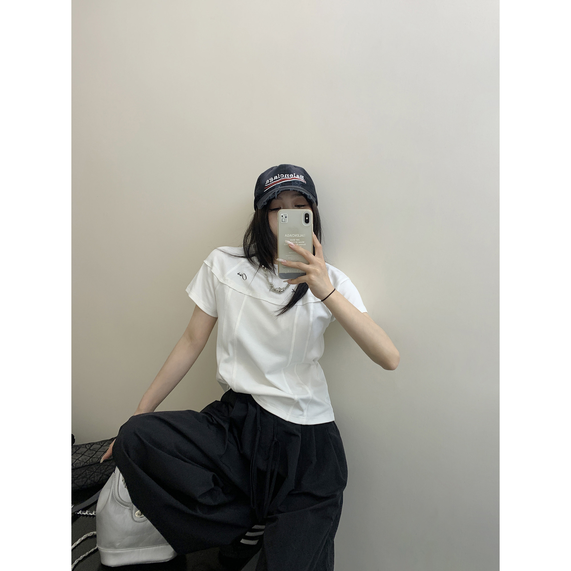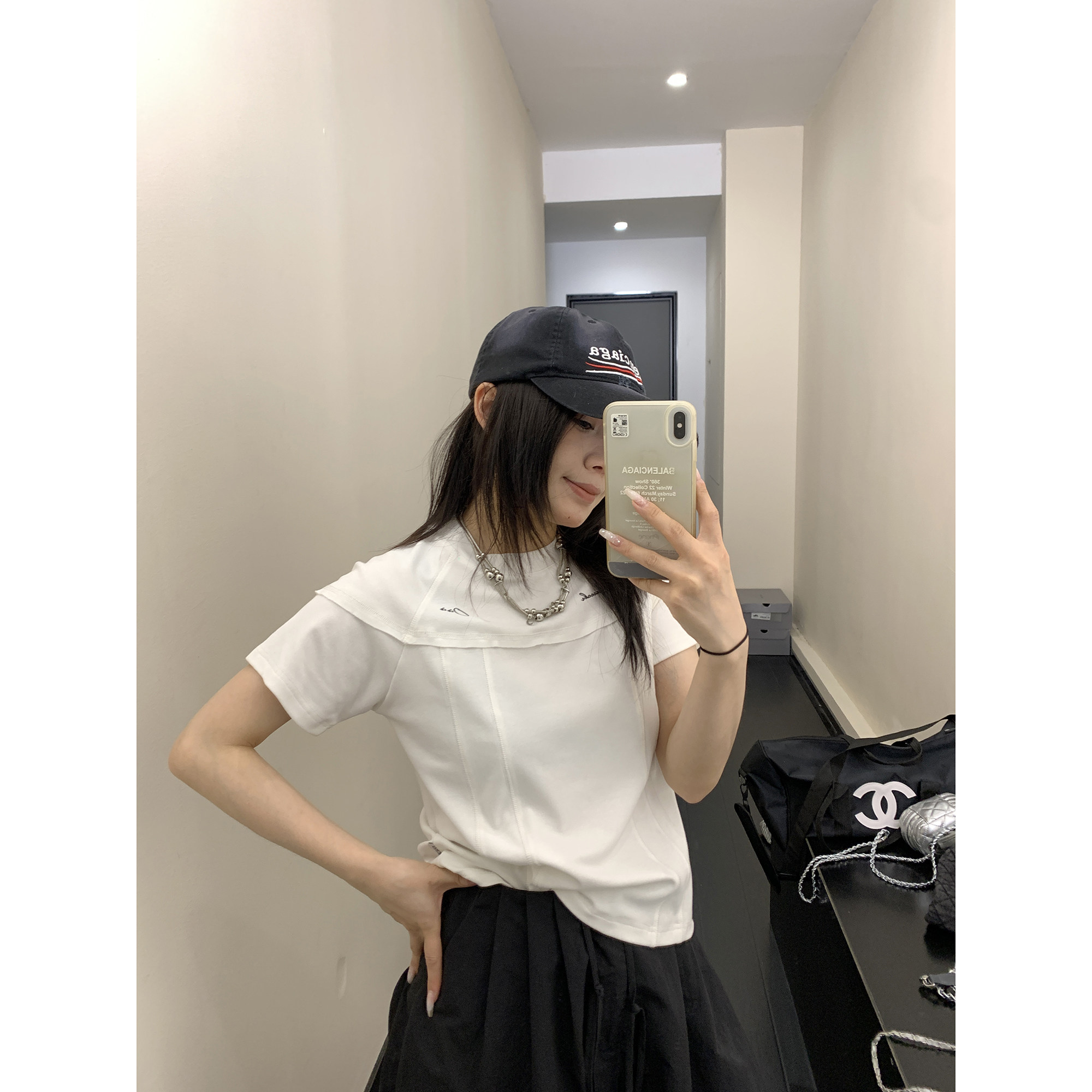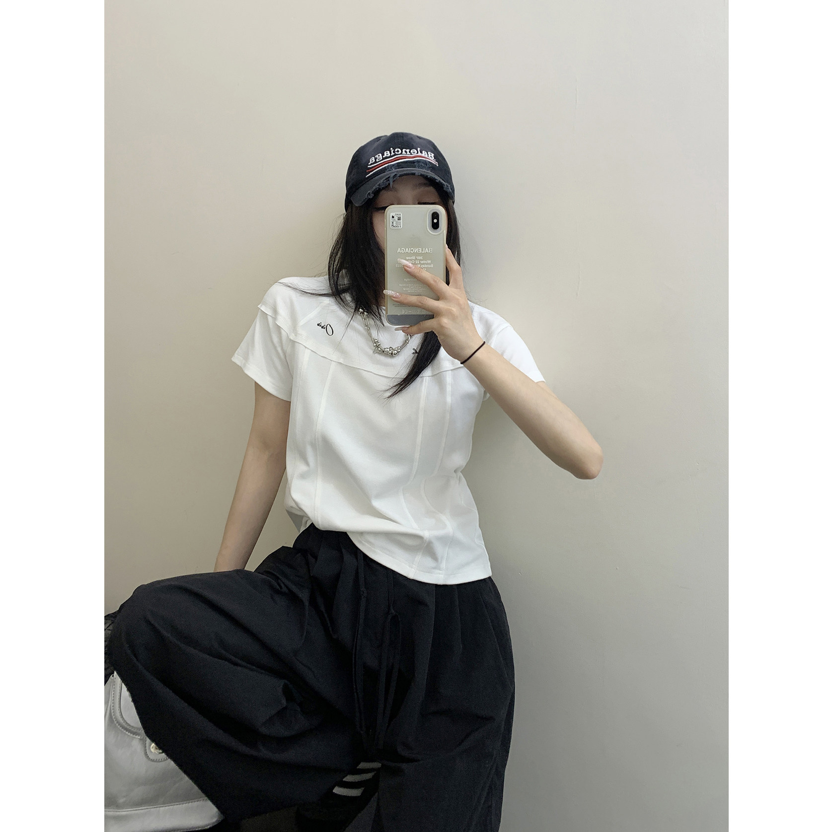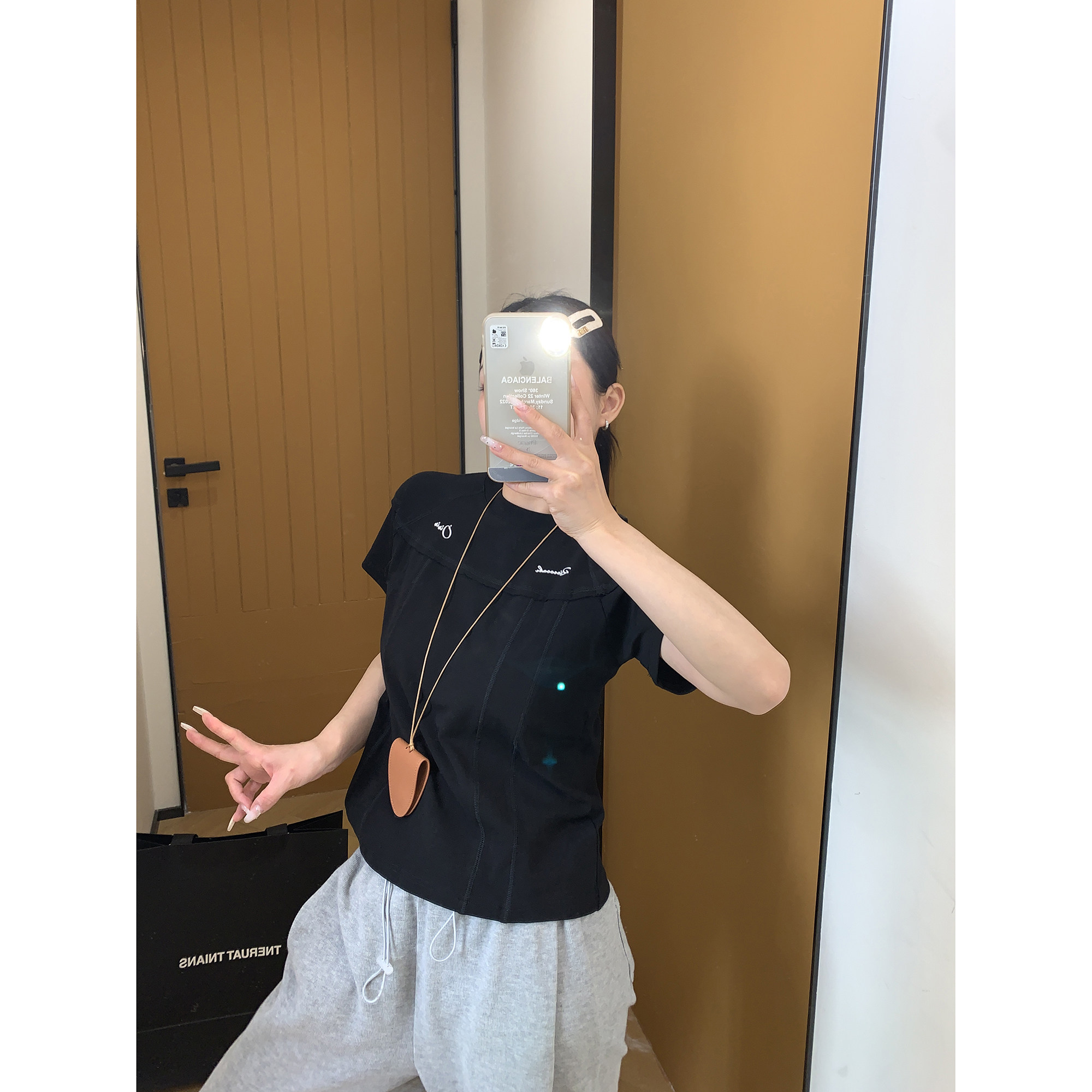 【トップス】夏新作 個性派デザイン ストラクチャード刺繍 ショートフィット Tシャツ【FCシリーズ】