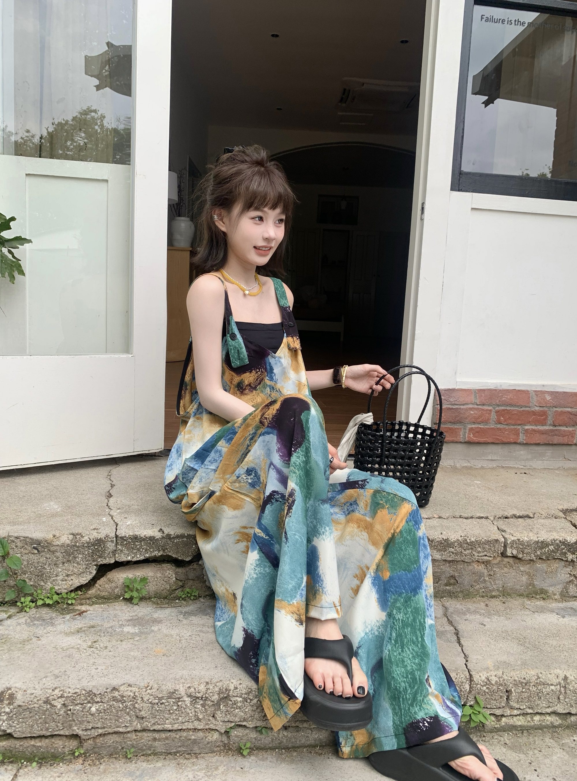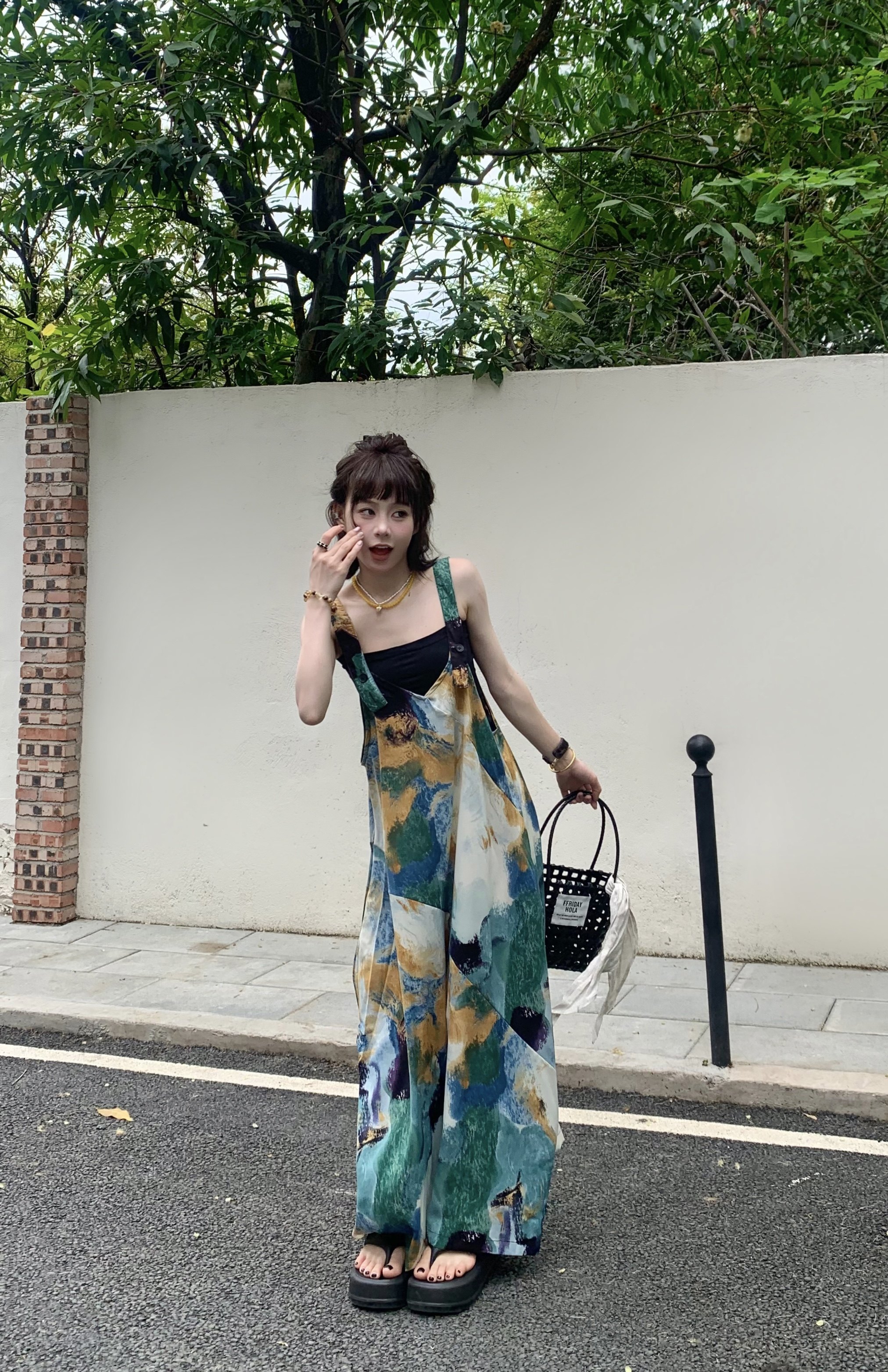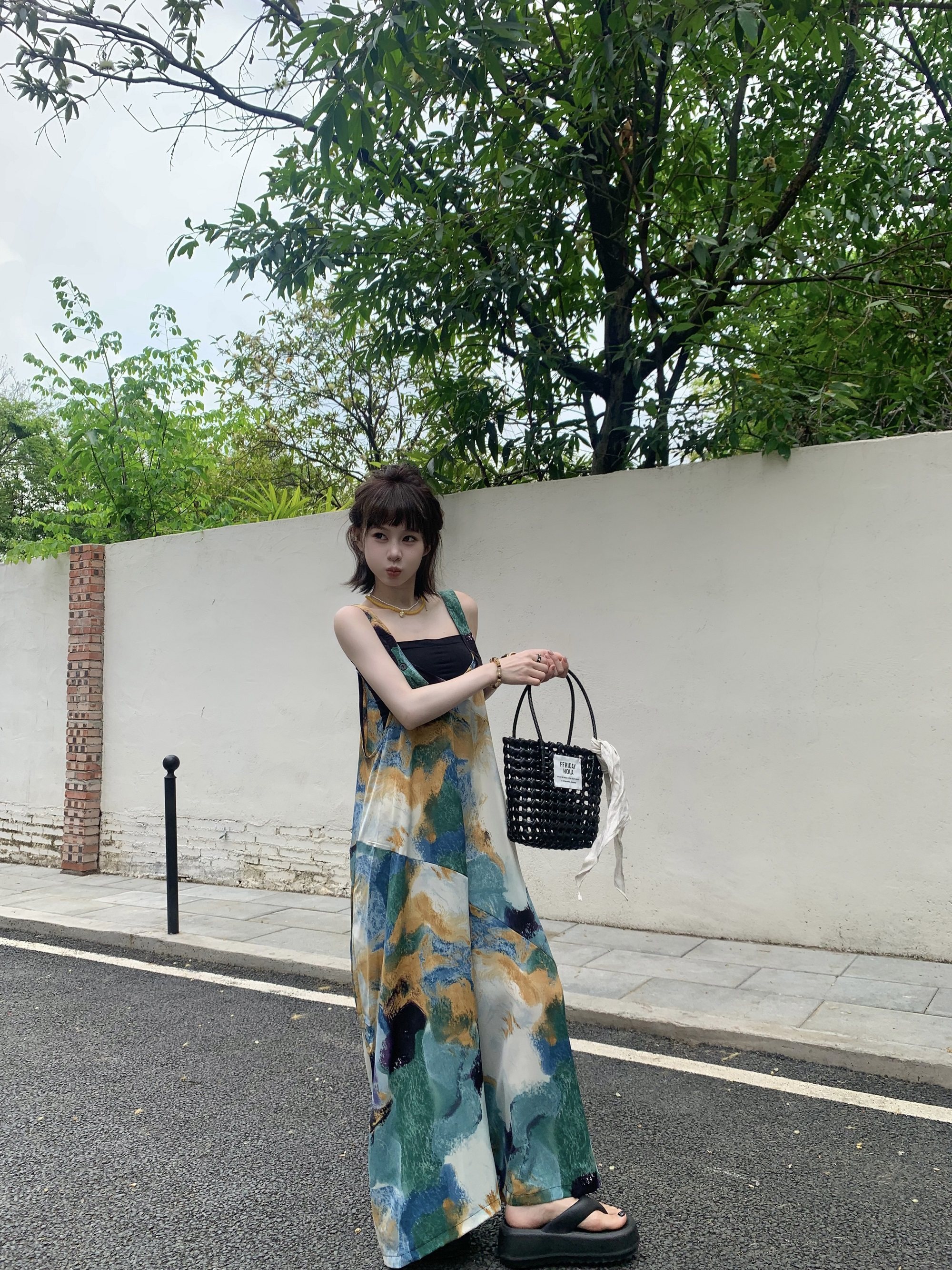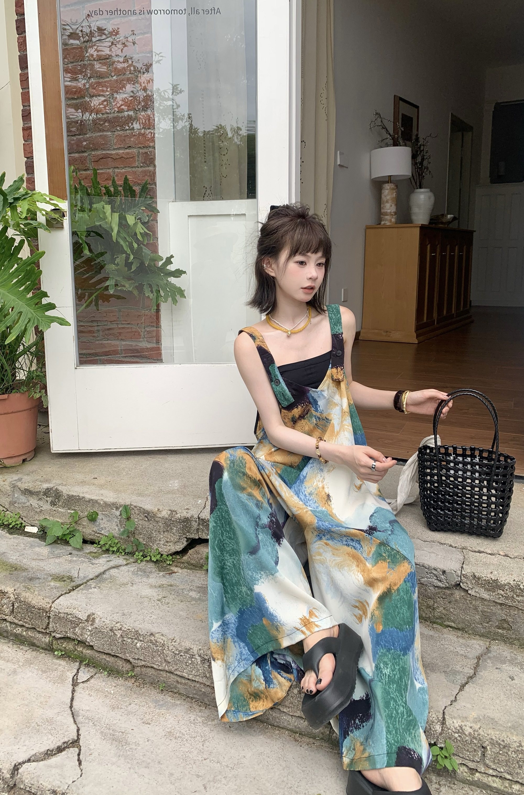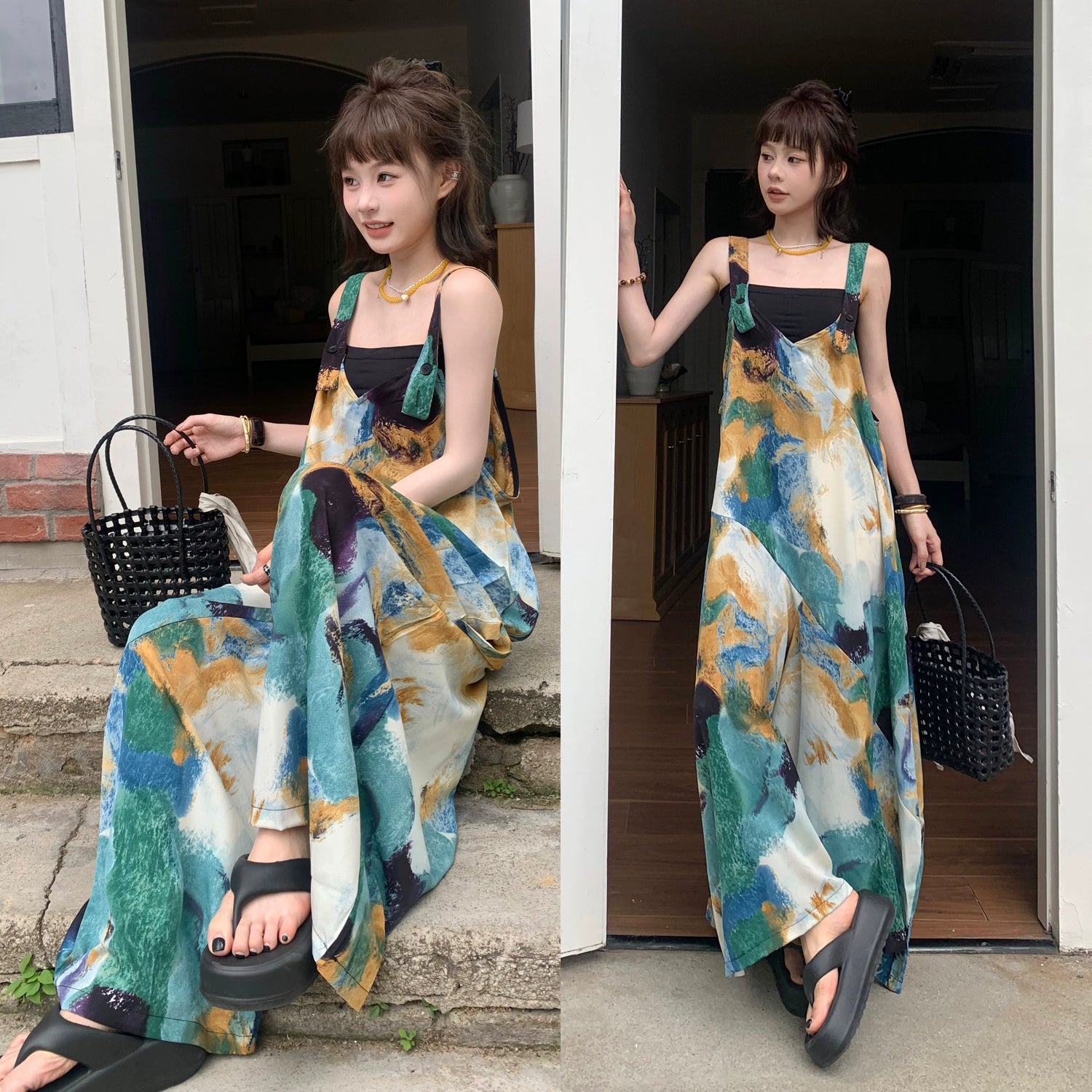 🔥 人気爆発【ボトムス】夏新作 レトロVネック ゆったりリラクシー アイランド風 清涼感 オールインワン【SHシリーズ】