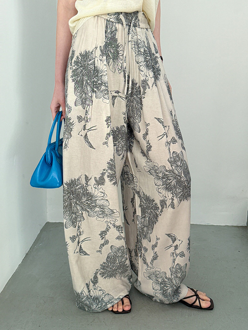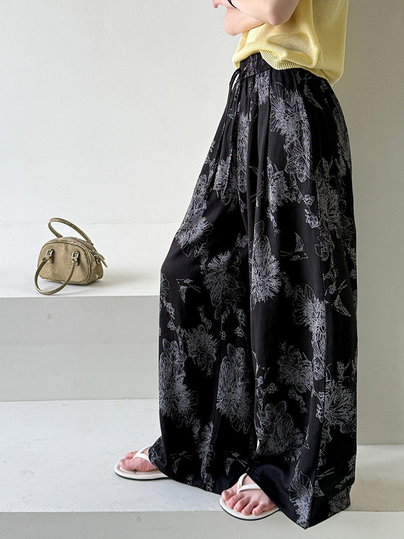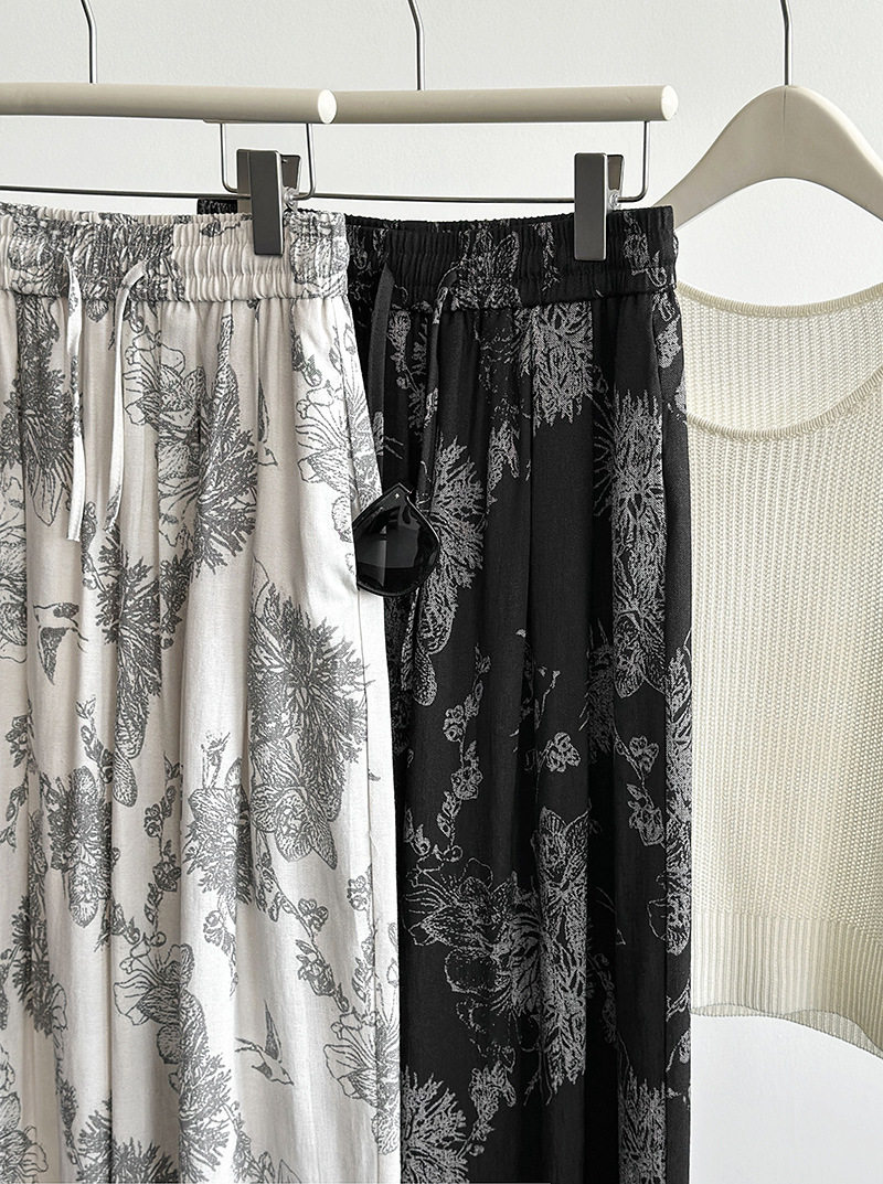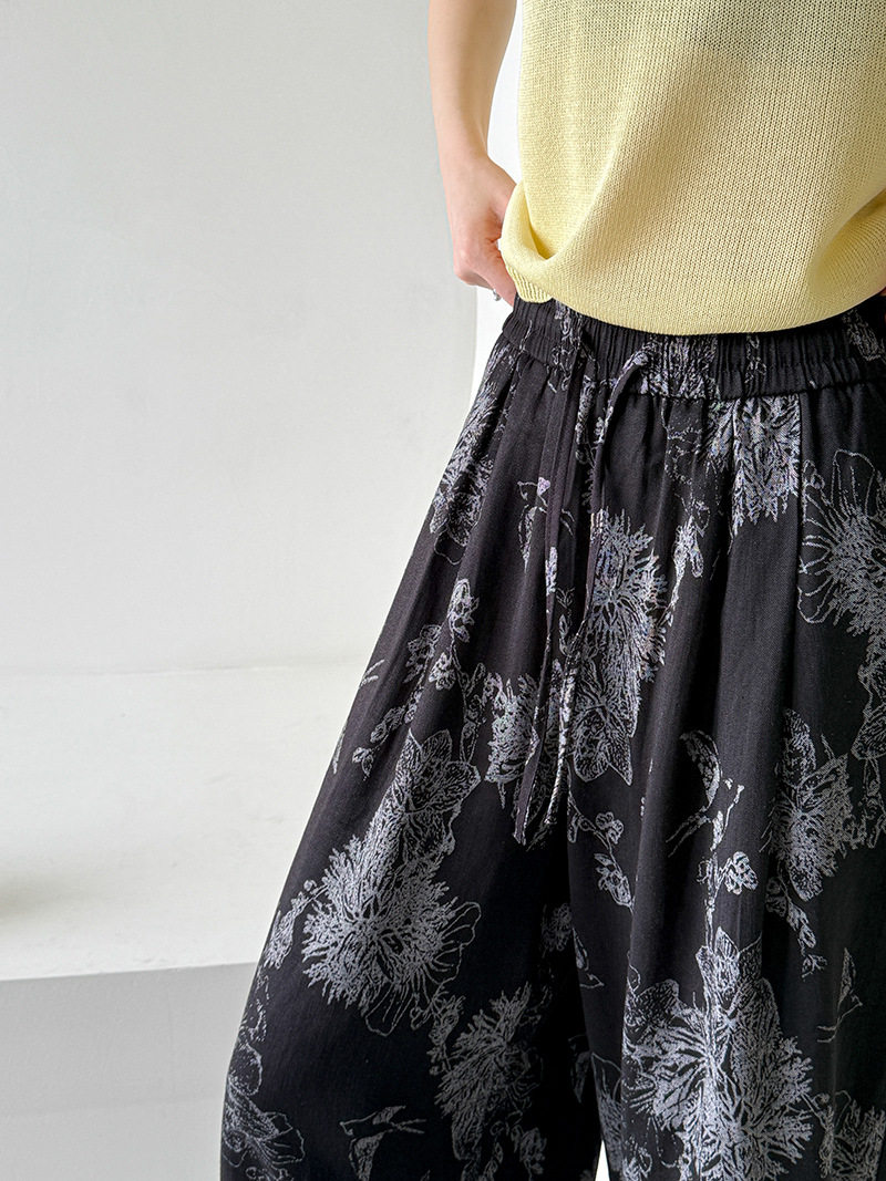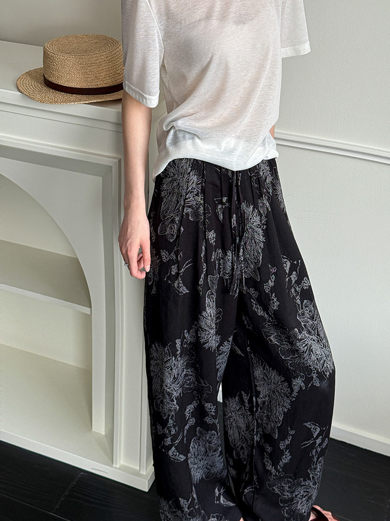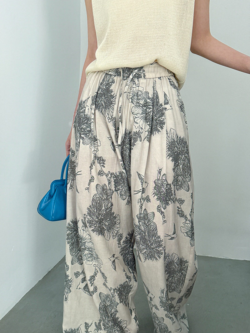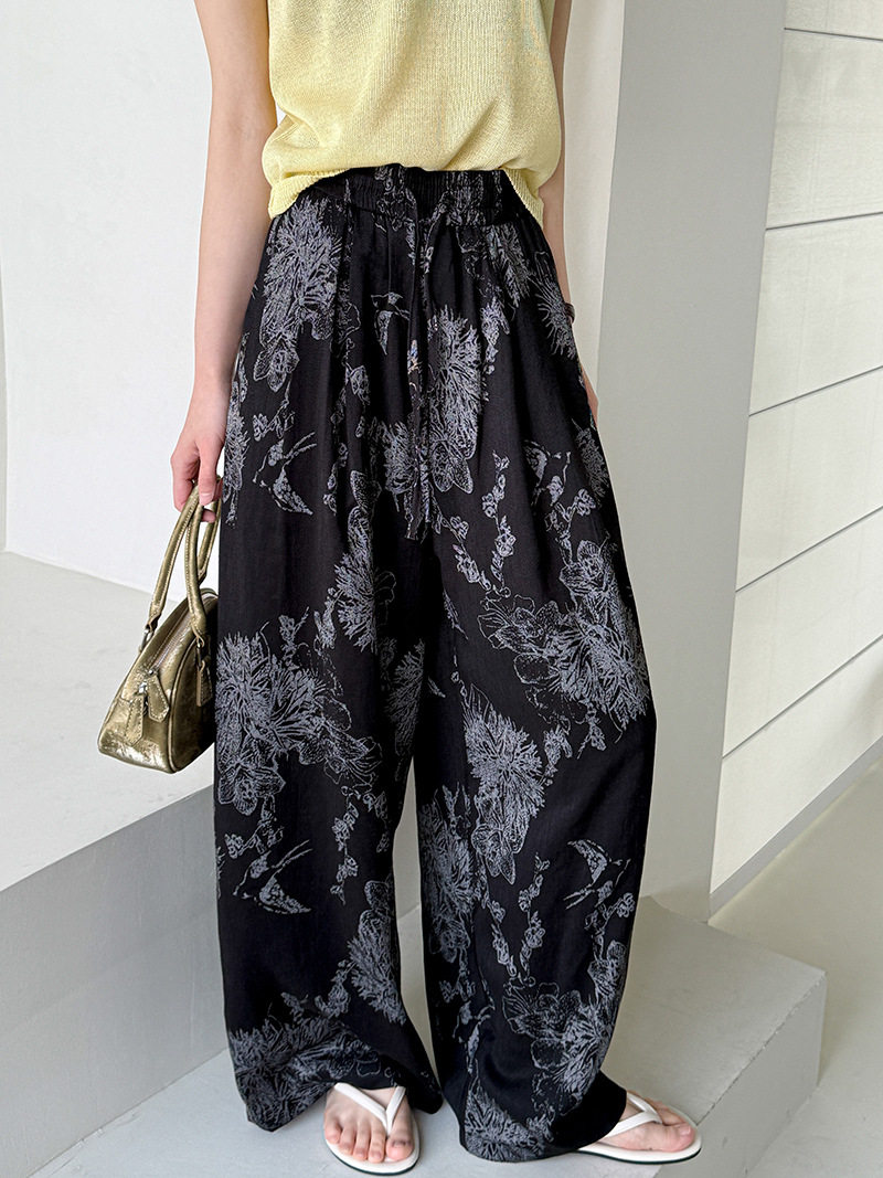 【ボトムス】夏 プリント 花柄 ルーズ 涼やか ワイドパンツ【SHシリーズ】