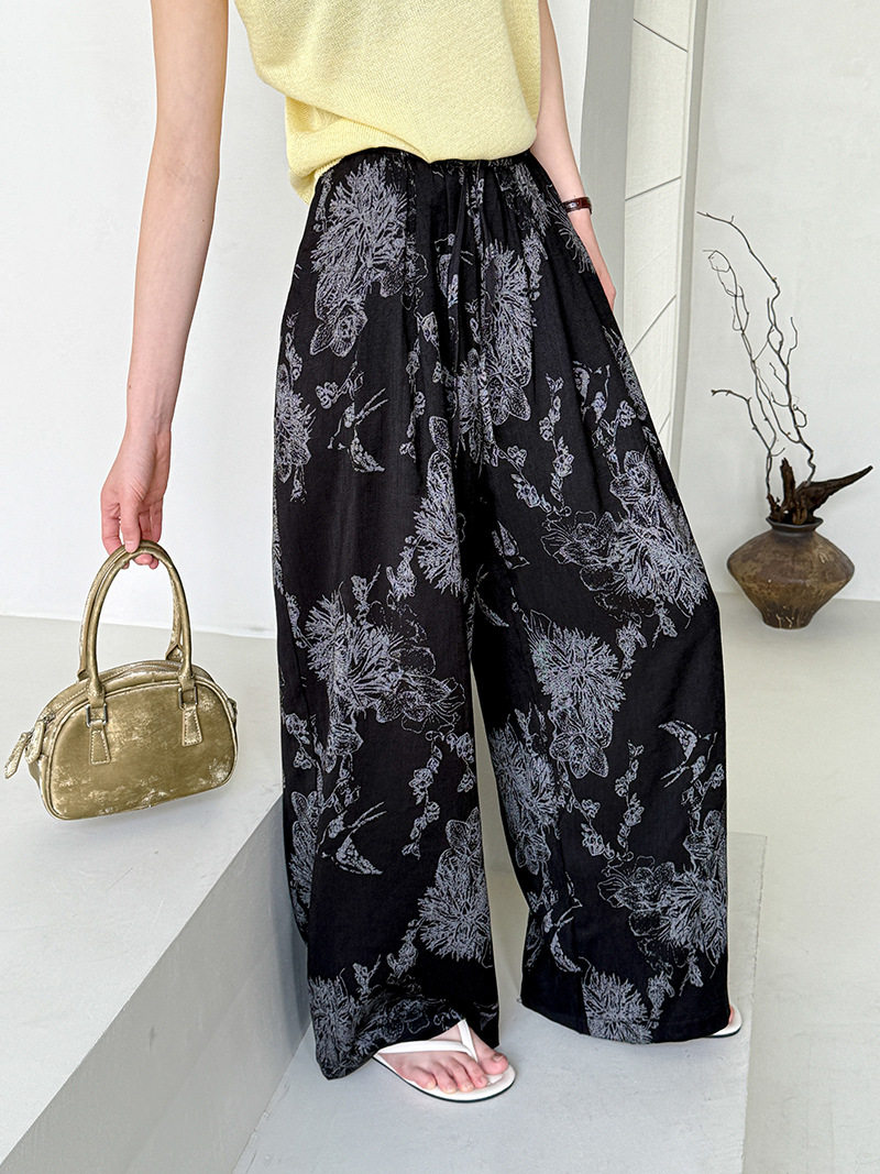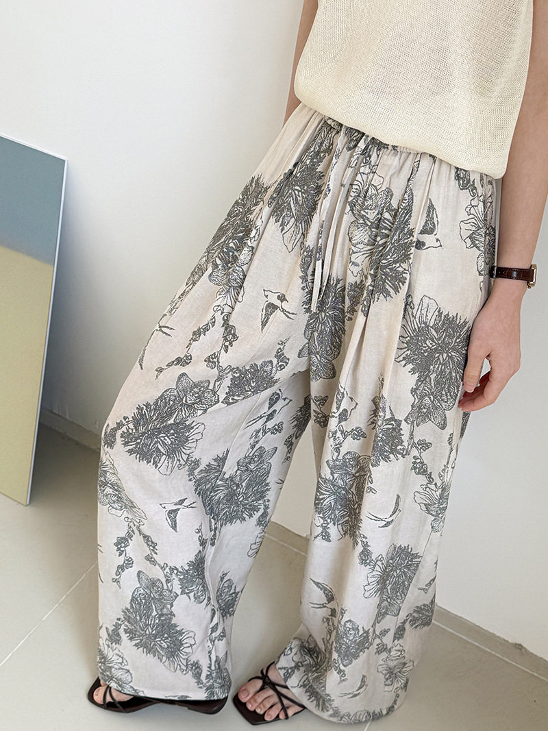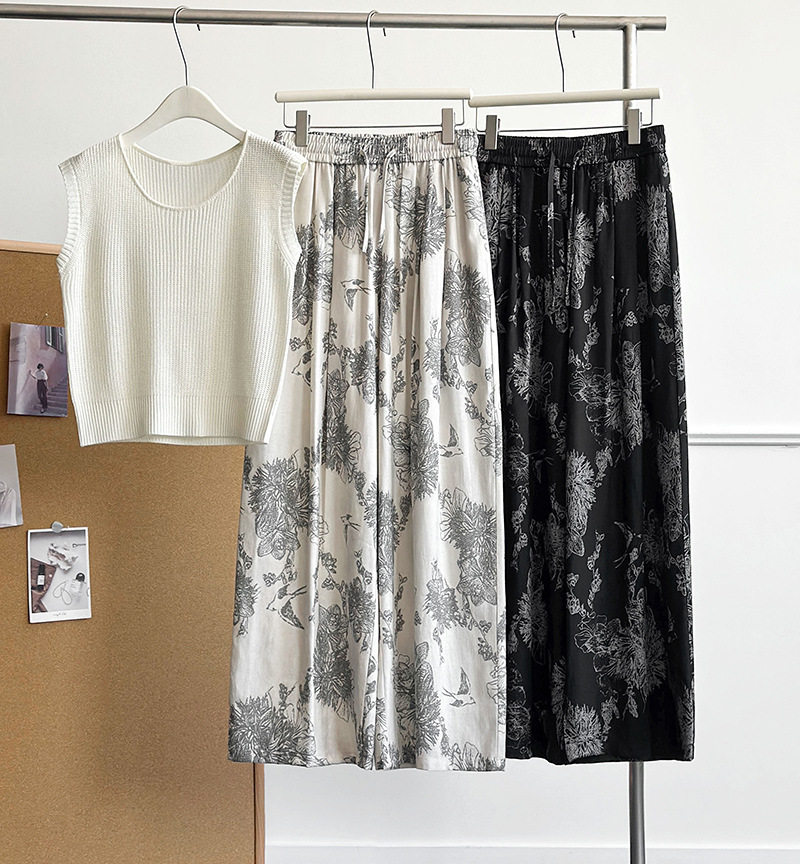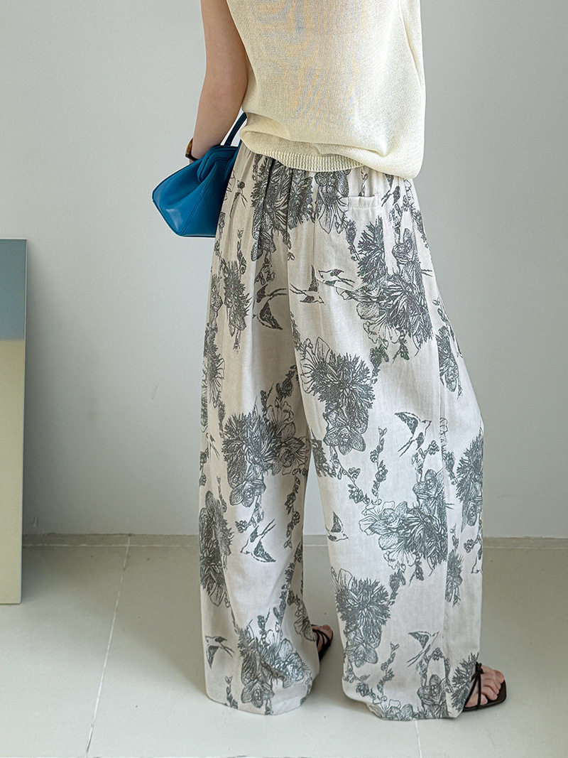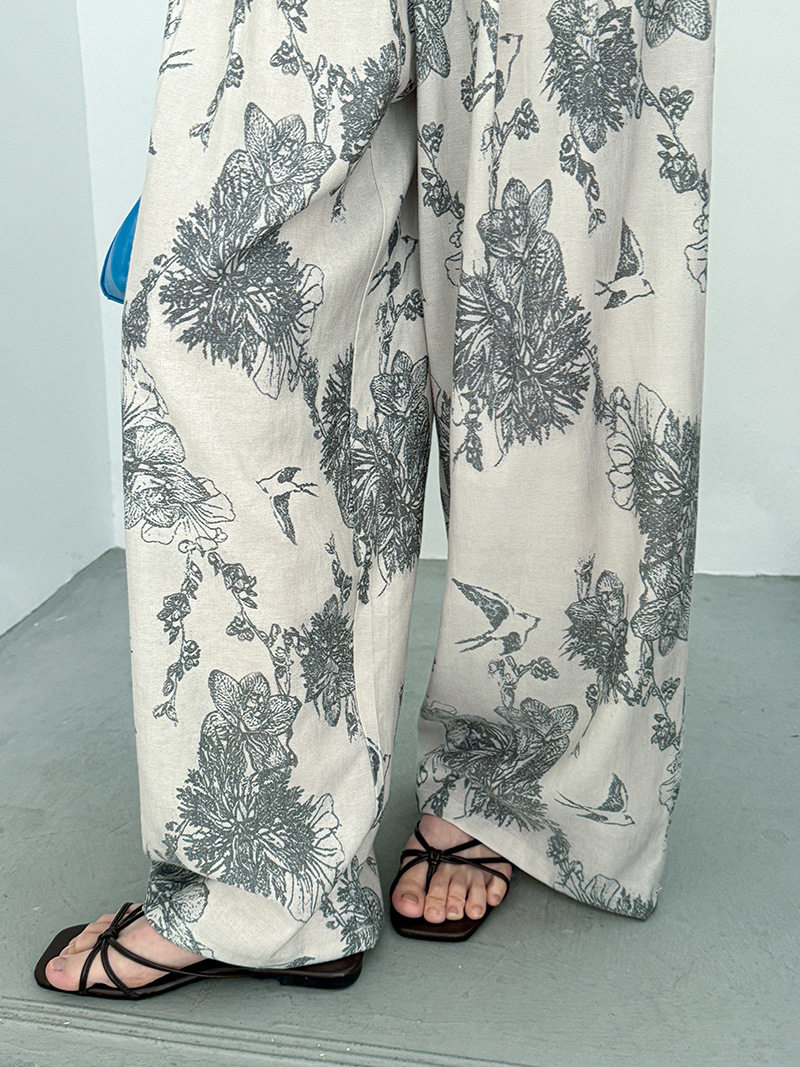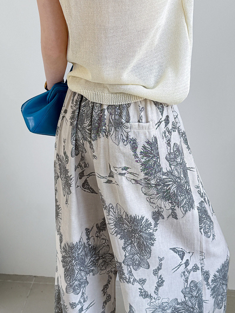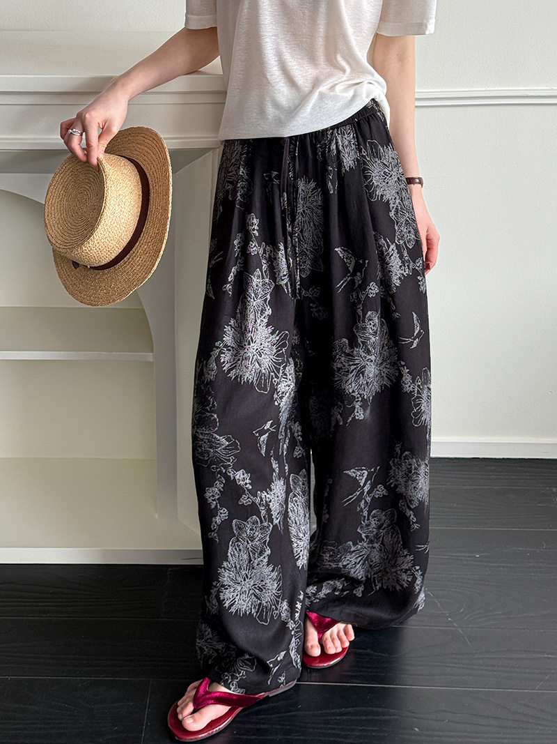 【ボトムス】夏 プリント 花柄 ルーズ 涼やか ワイドパンツ【SHシリーズ】