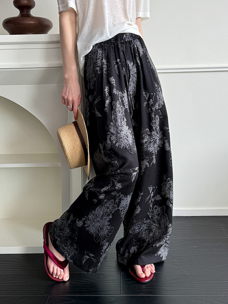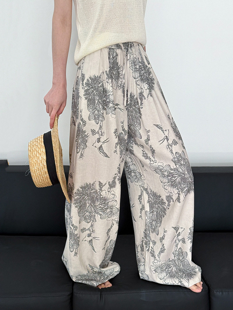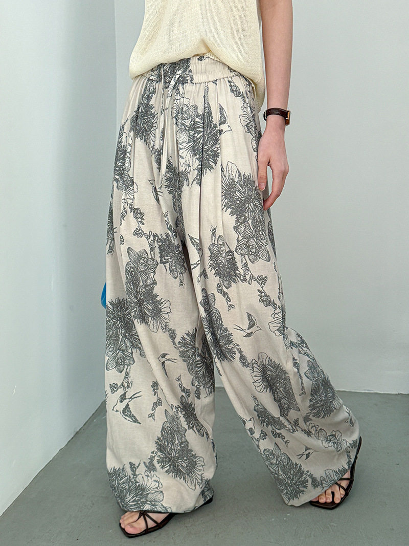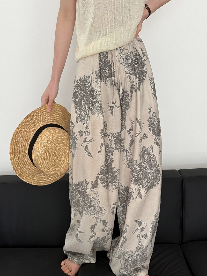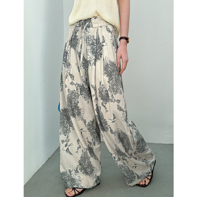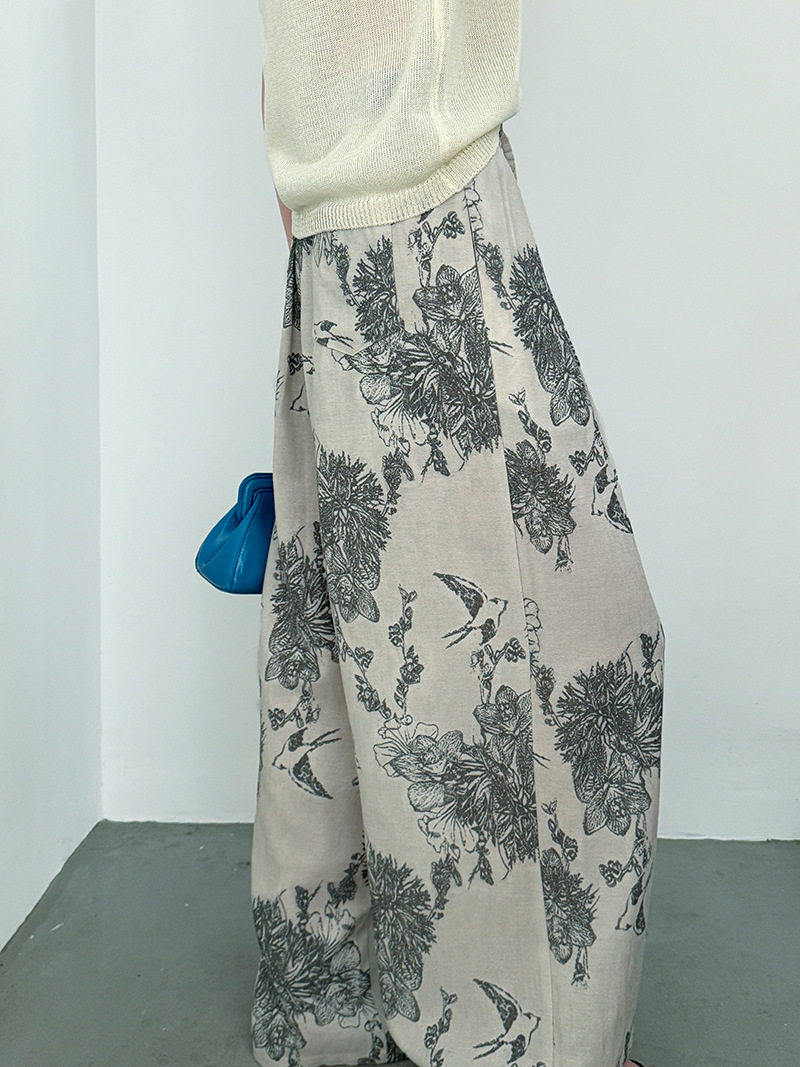 【商品名】【ボトムス】夏 プリント 花柄 ルーズ 涼やか ワイドパンツ【SHシリーズ】