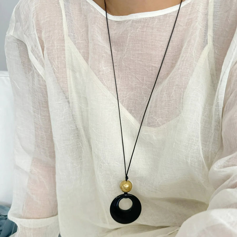【🎁 B2G1|先行スタート!】【グッズ】小众スタイル 黒曜石サークルチャーム ロングペンダントネックレス