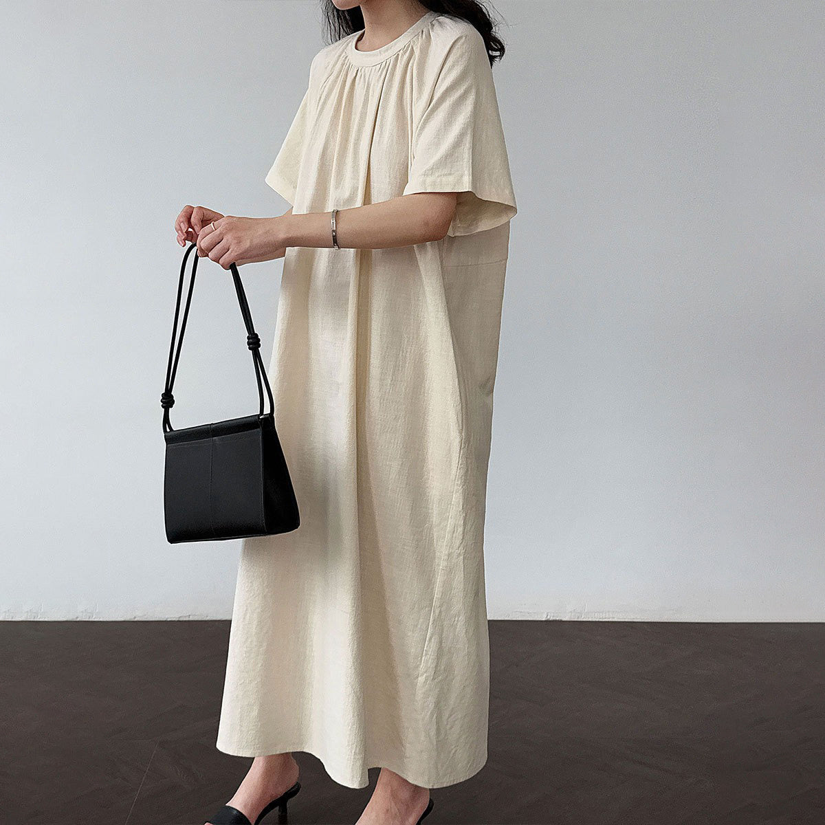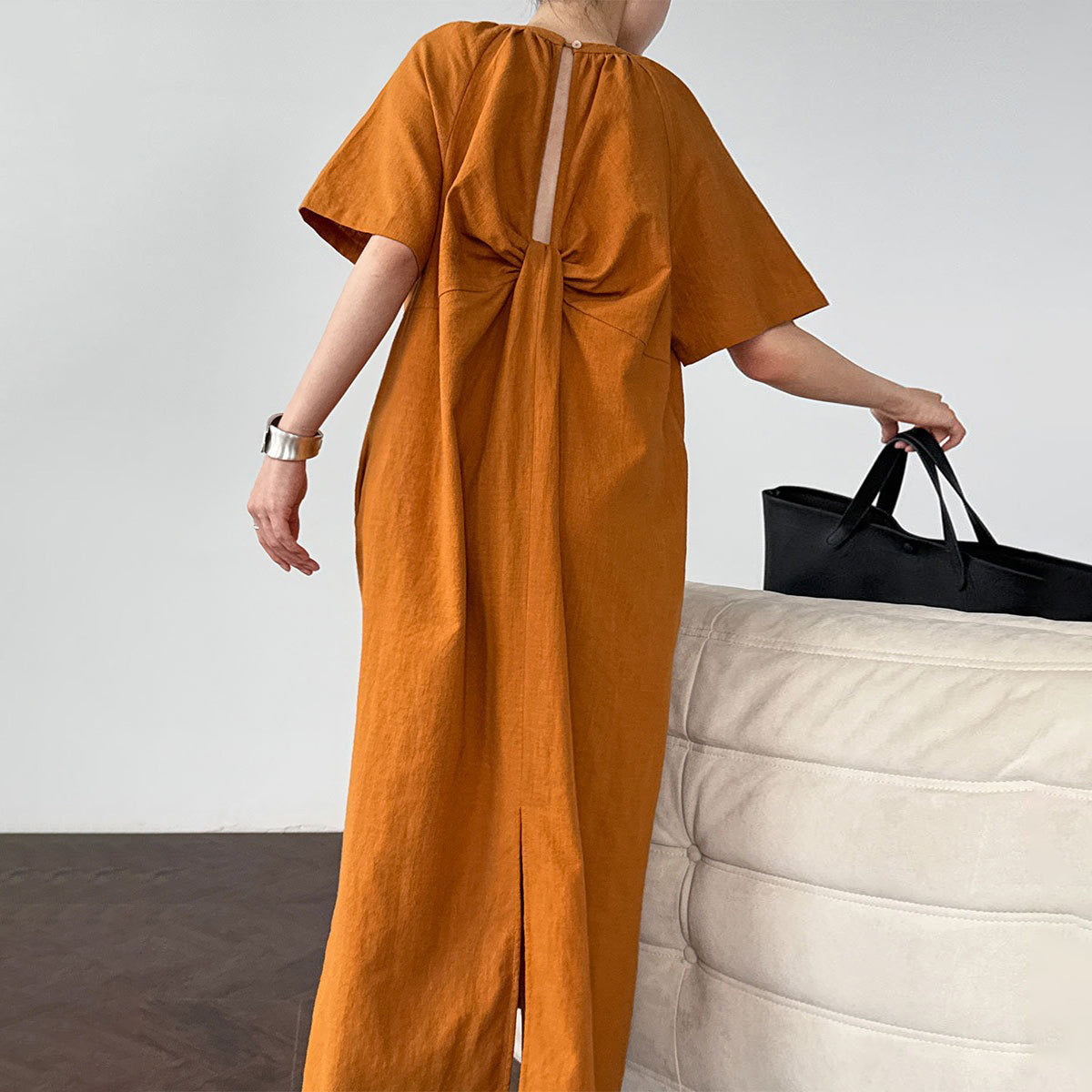 【ワンピース】韓国風ミニマル 後ろねじりデザイン 背中開き ゆったりノースリーブワンピース【JZシリーズ】