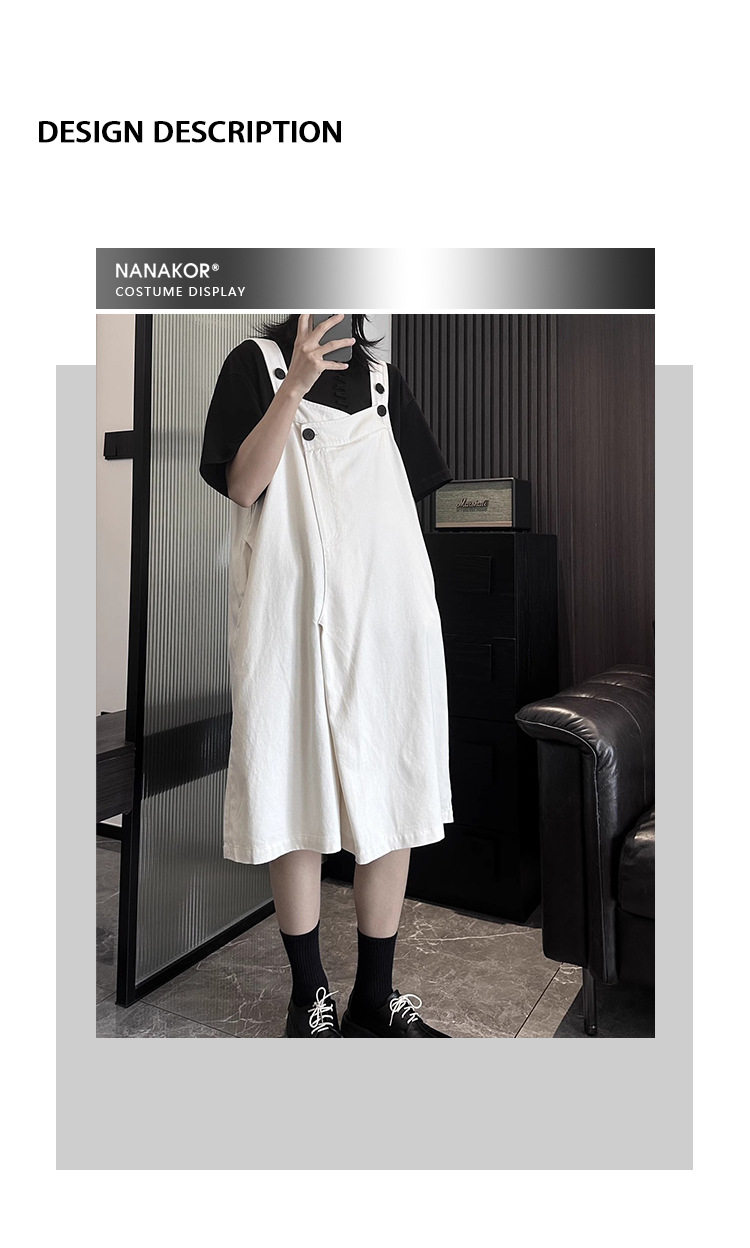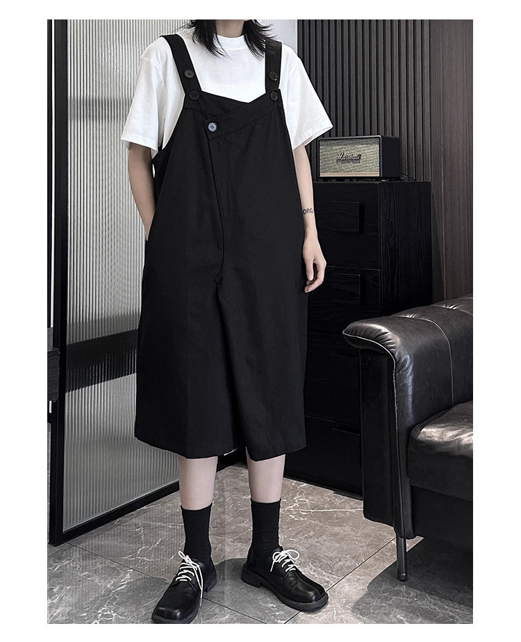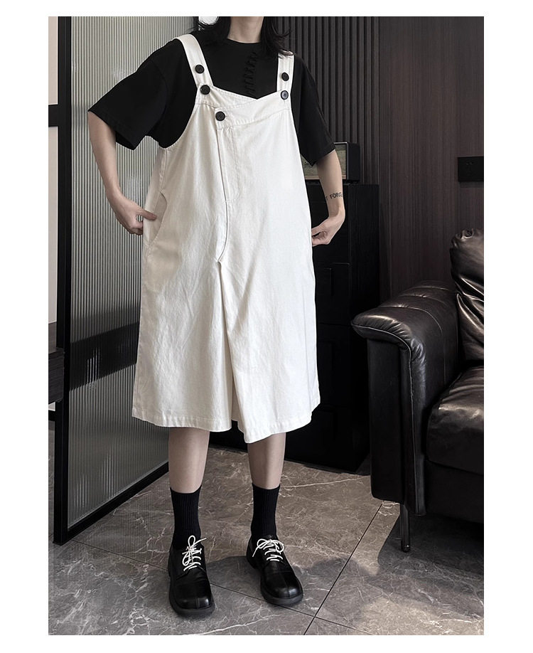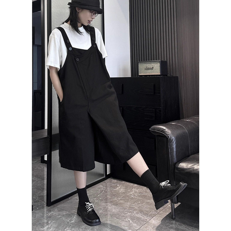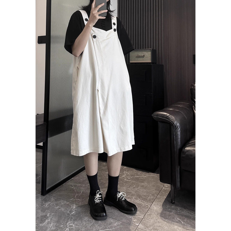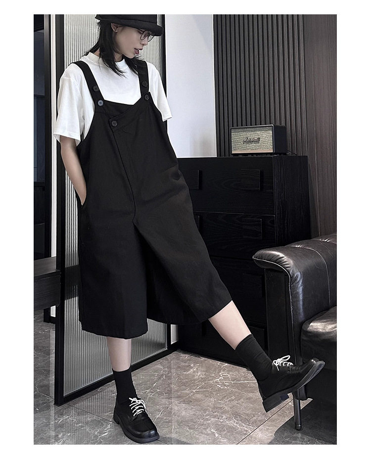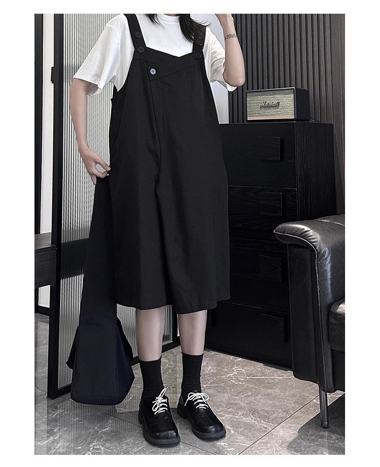 【商品名】【ボトムス】夏 無地 ワイドシルエット サロペット ハーフ丈 パンツ 【AHシリーズ】
