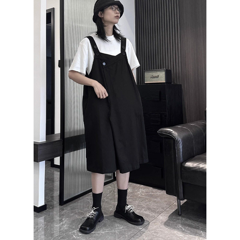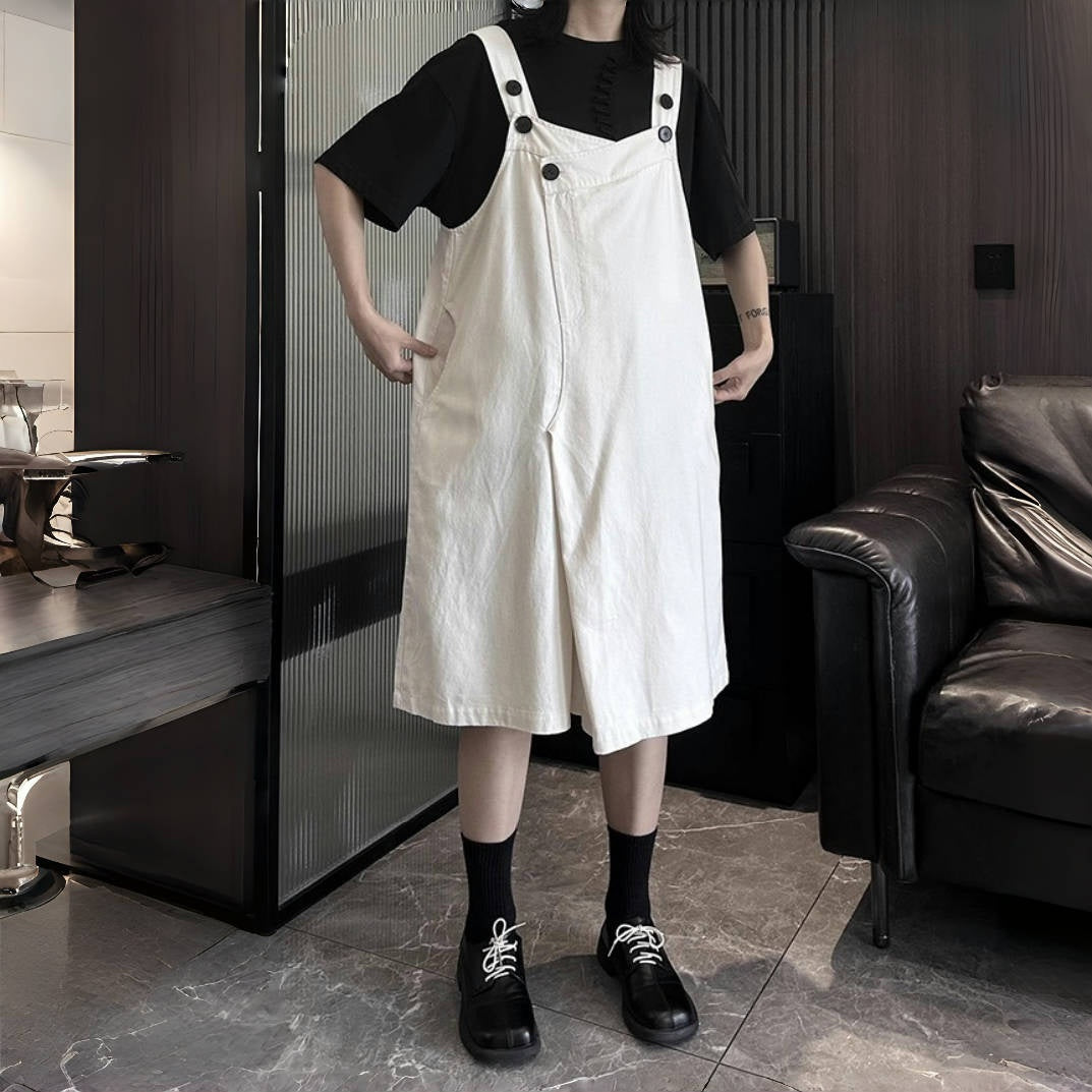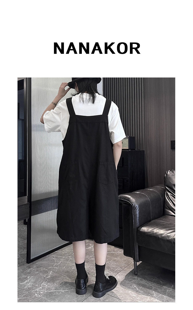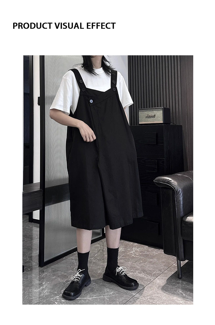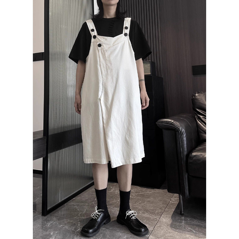 【商品名】【ボトムス】夏 無地 ワイドシルエット サロペット ハーフ丈 パンツ 【AHシリーズ】