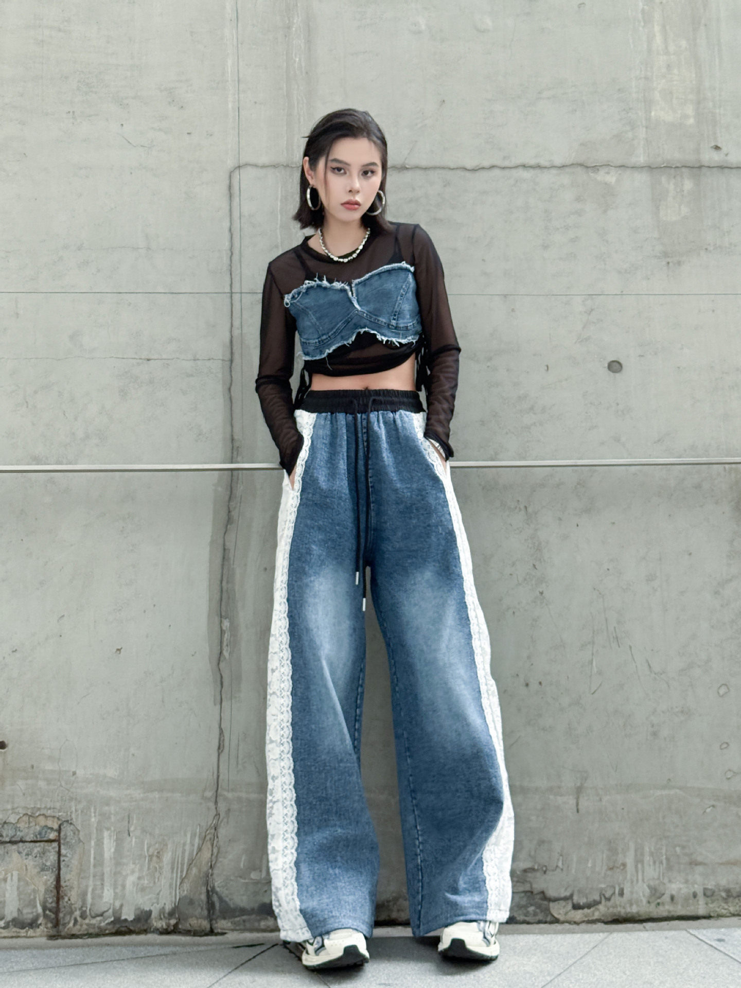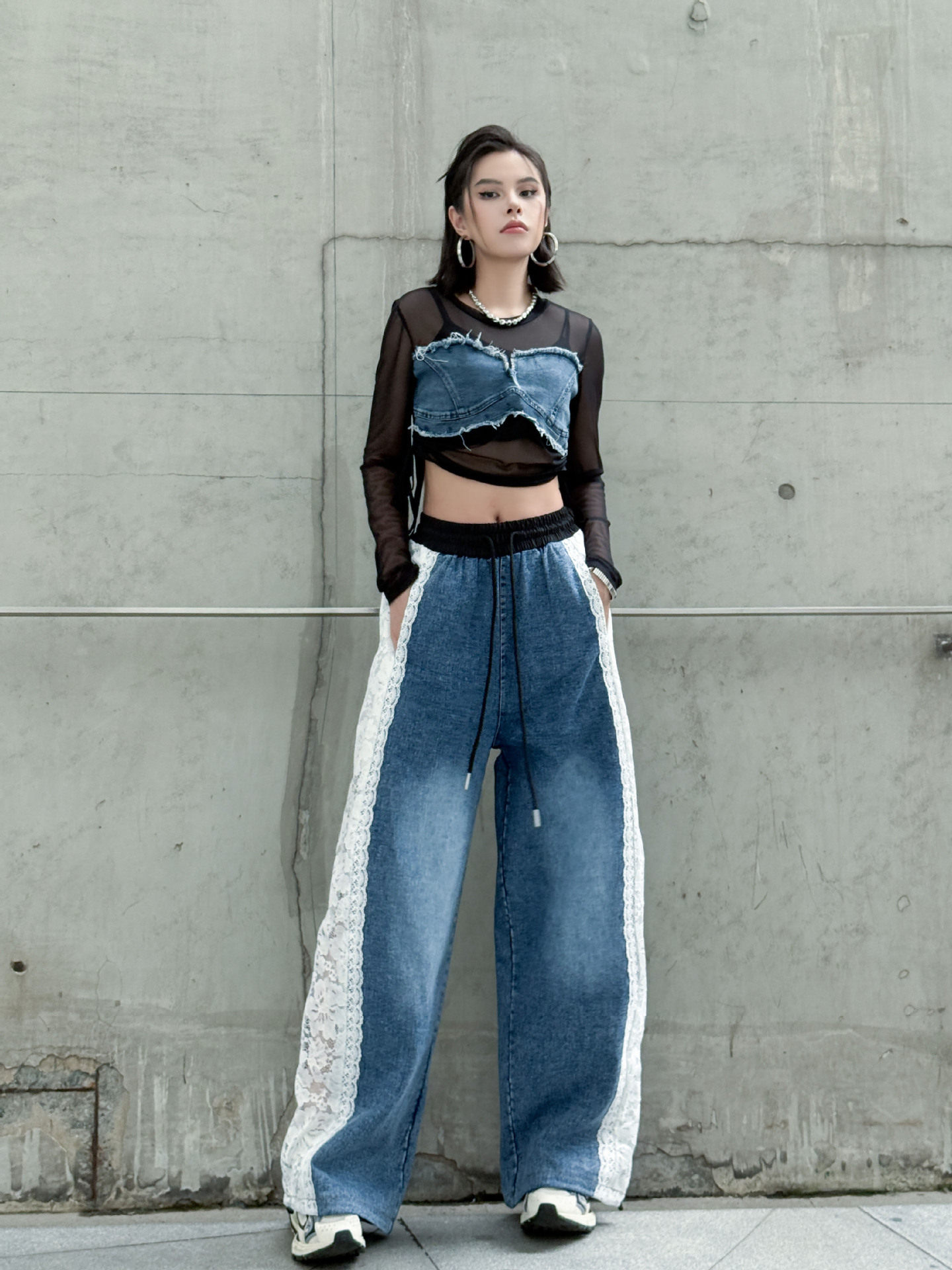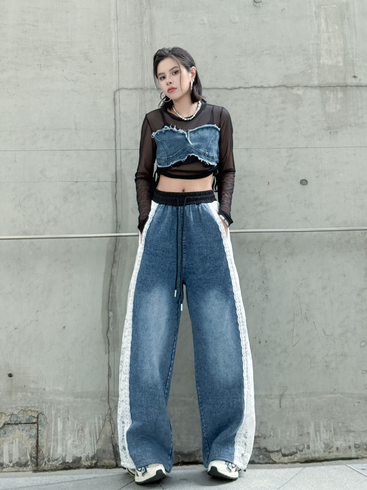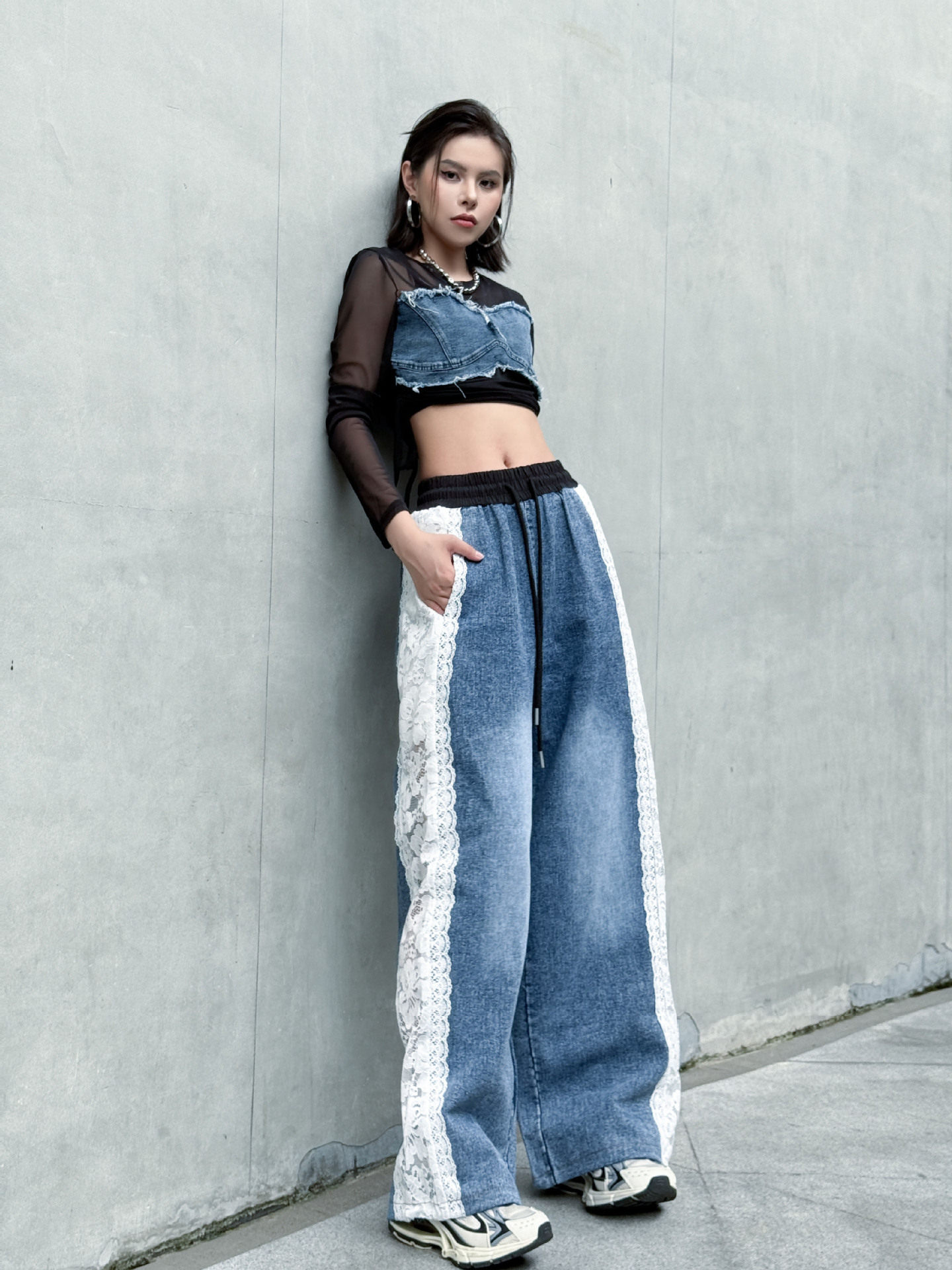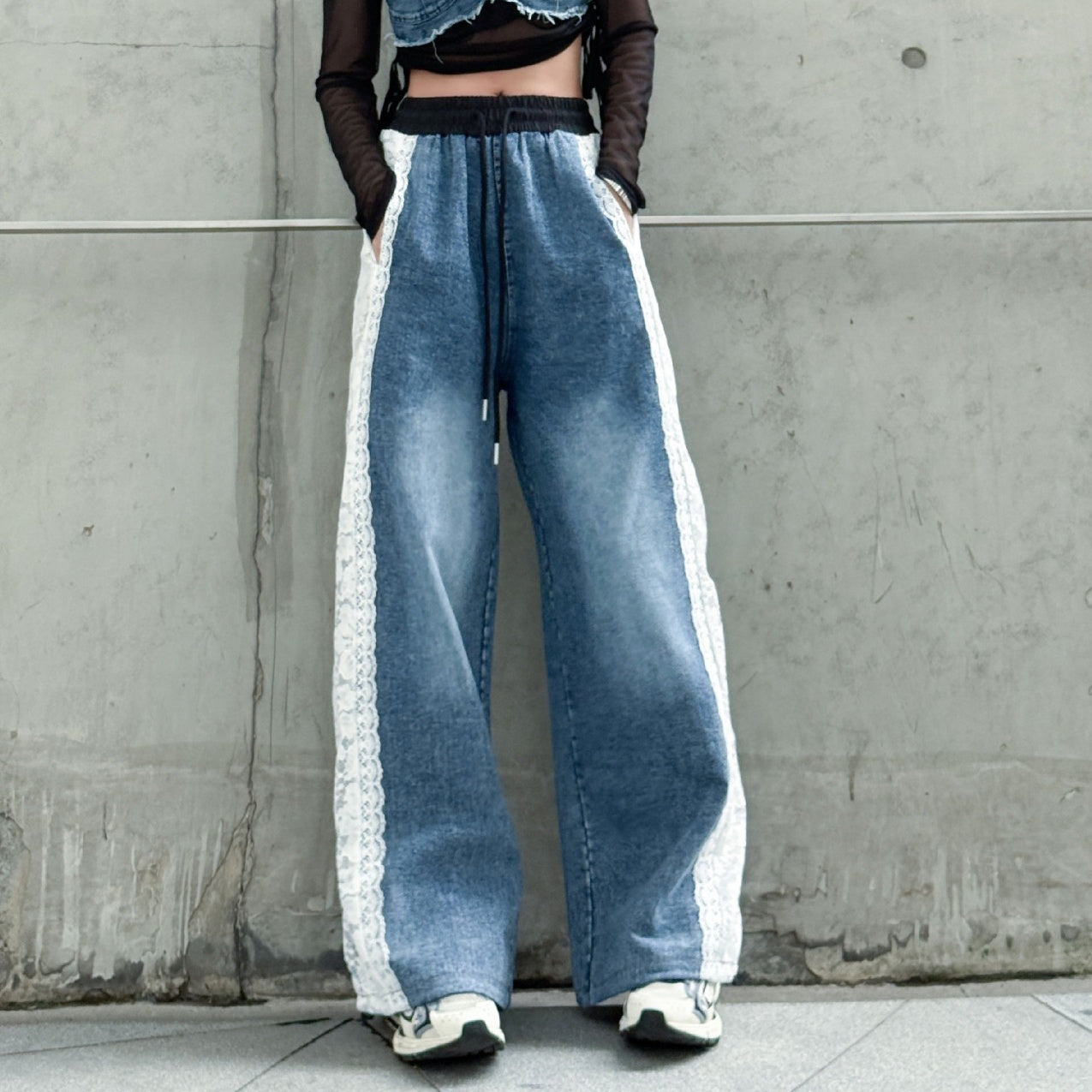 【商品名】【ボトムス】夏 ウォッシュデニム 切り替え カジュアルデニムパンツ 【AHシリーズ】