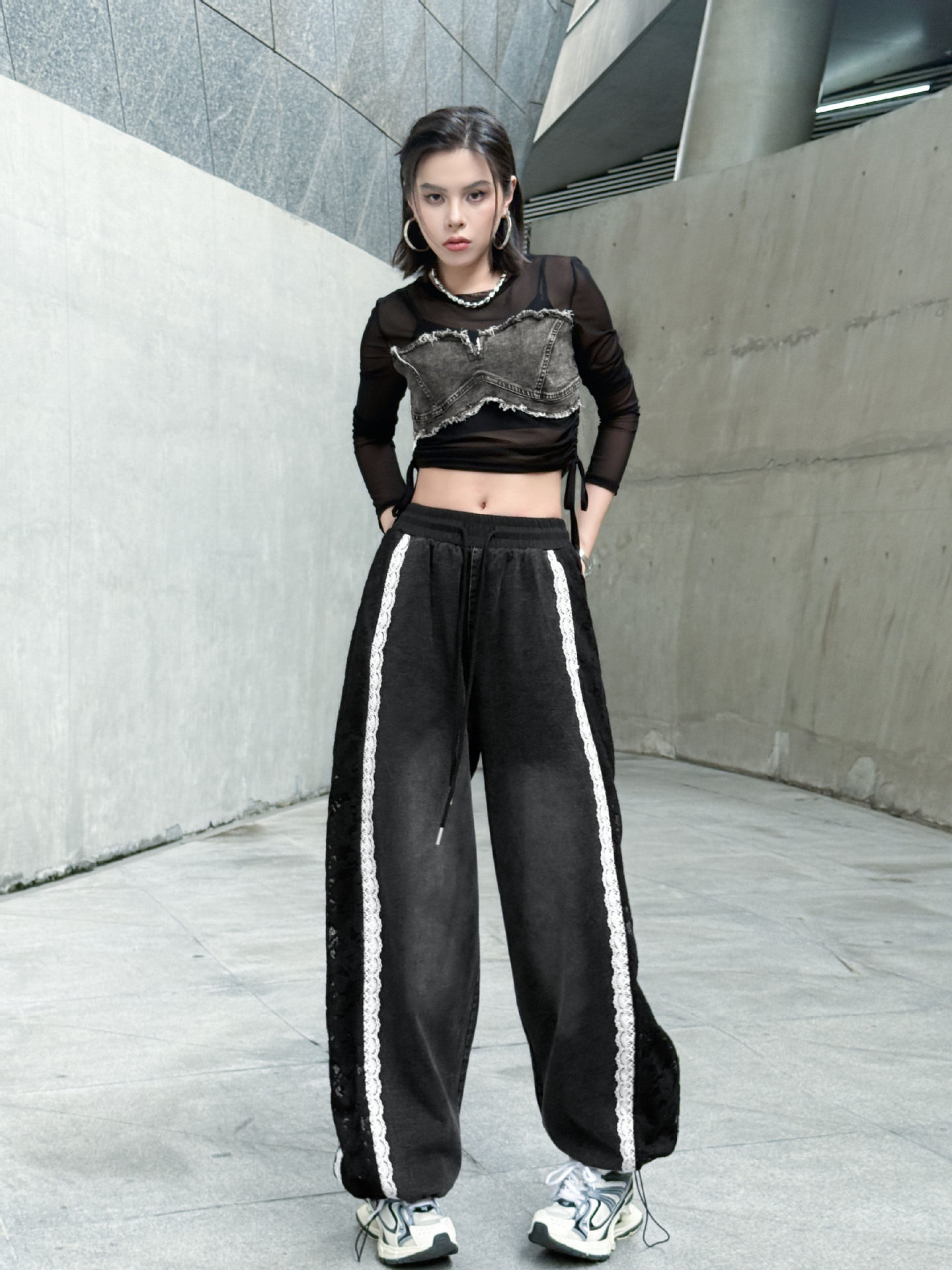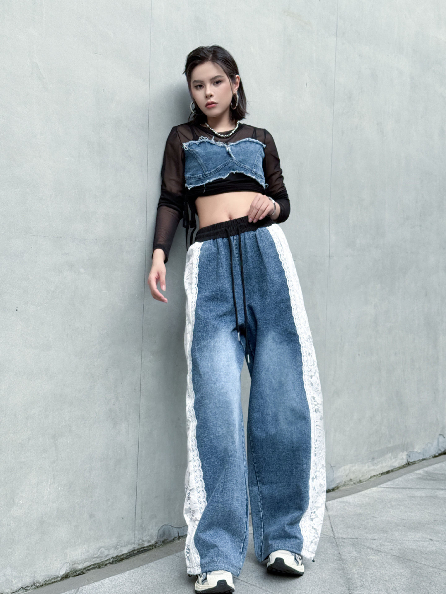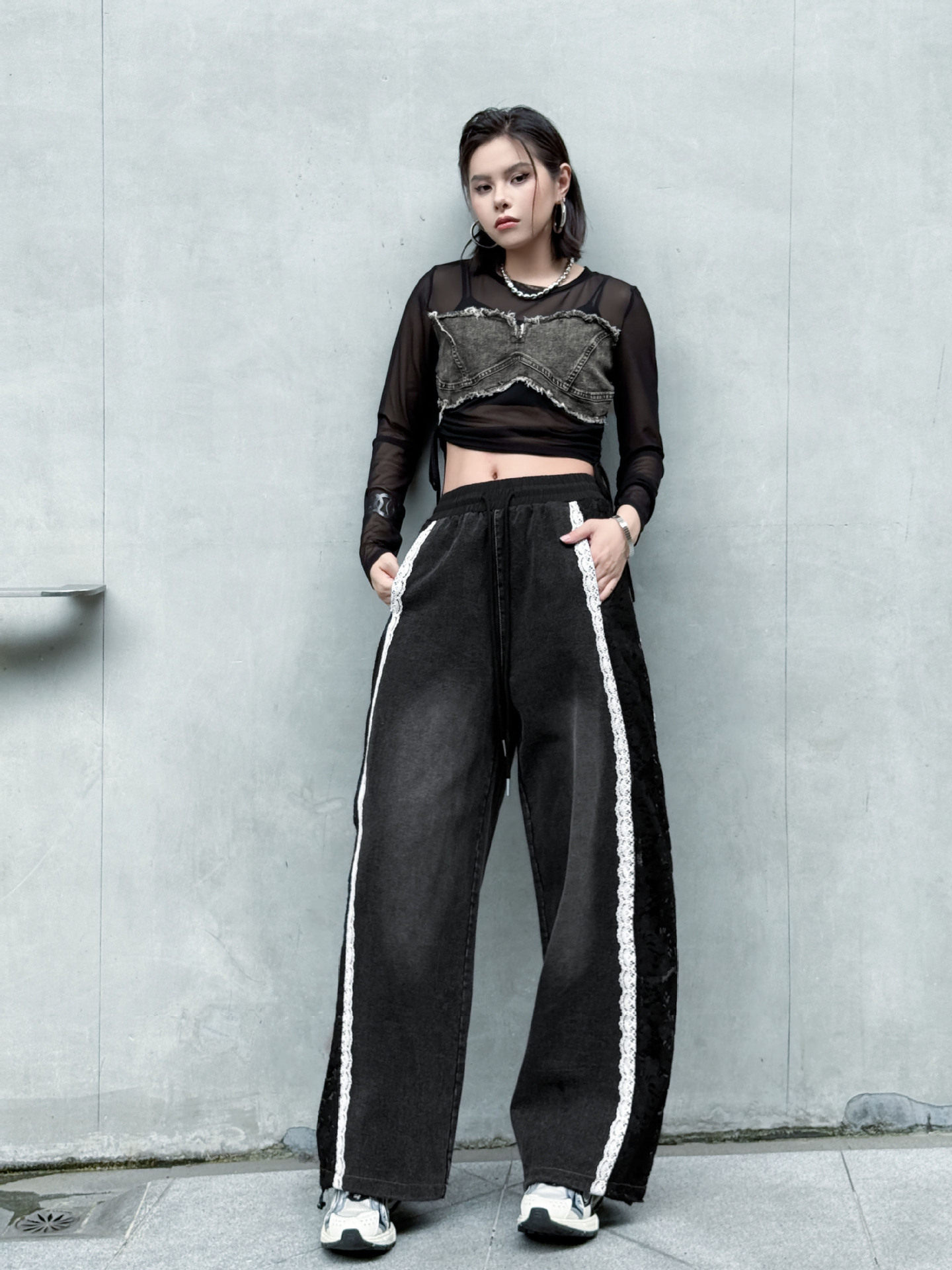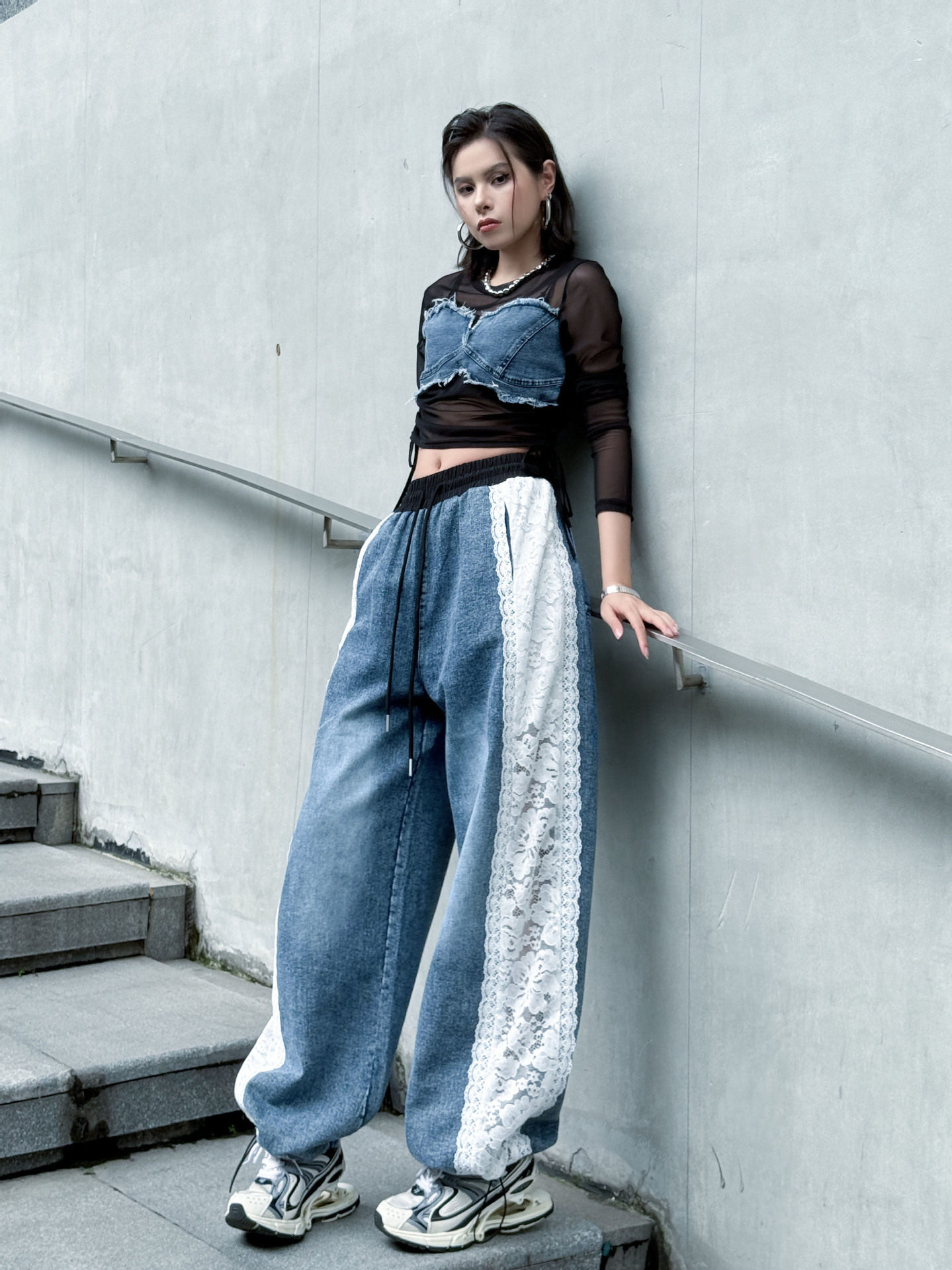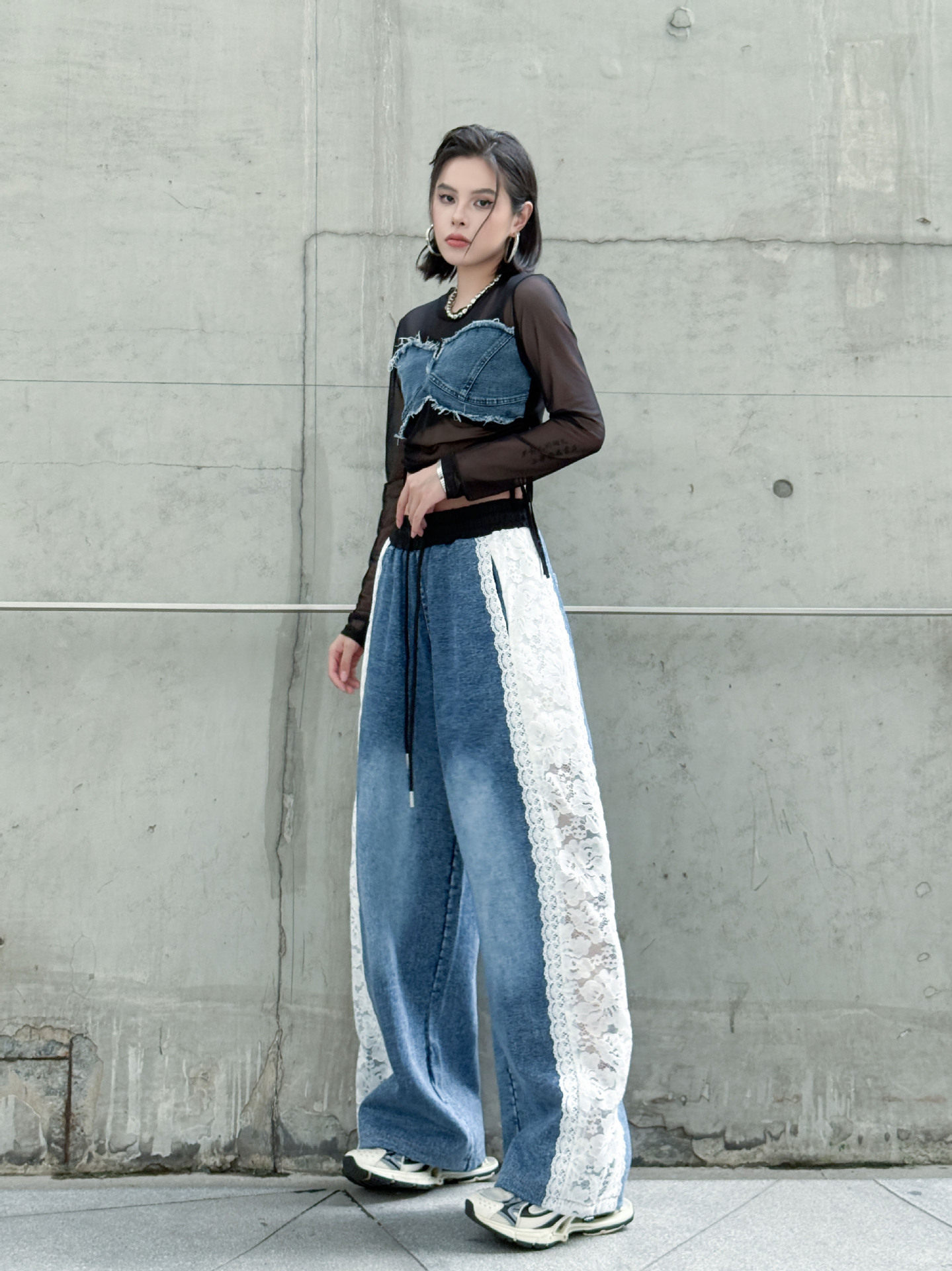 【商品名】【ボトムス】夏 ウォッシュデニム 切り替え カジュアルデニムパンツ 【AHシリーズ】