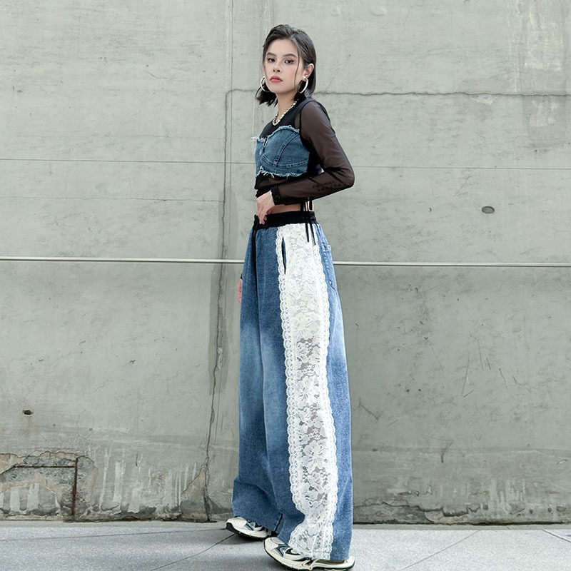 【ボトムス】夏 ウォッシュデニム 切り替え カジュアルデニムパンツ 【AHシリーズ】