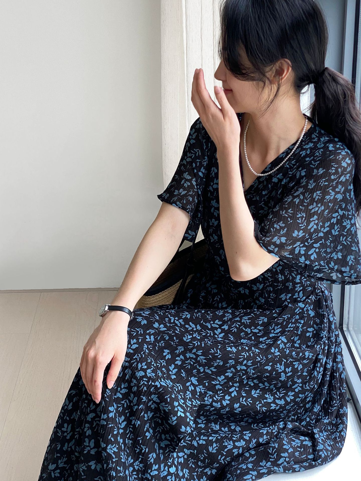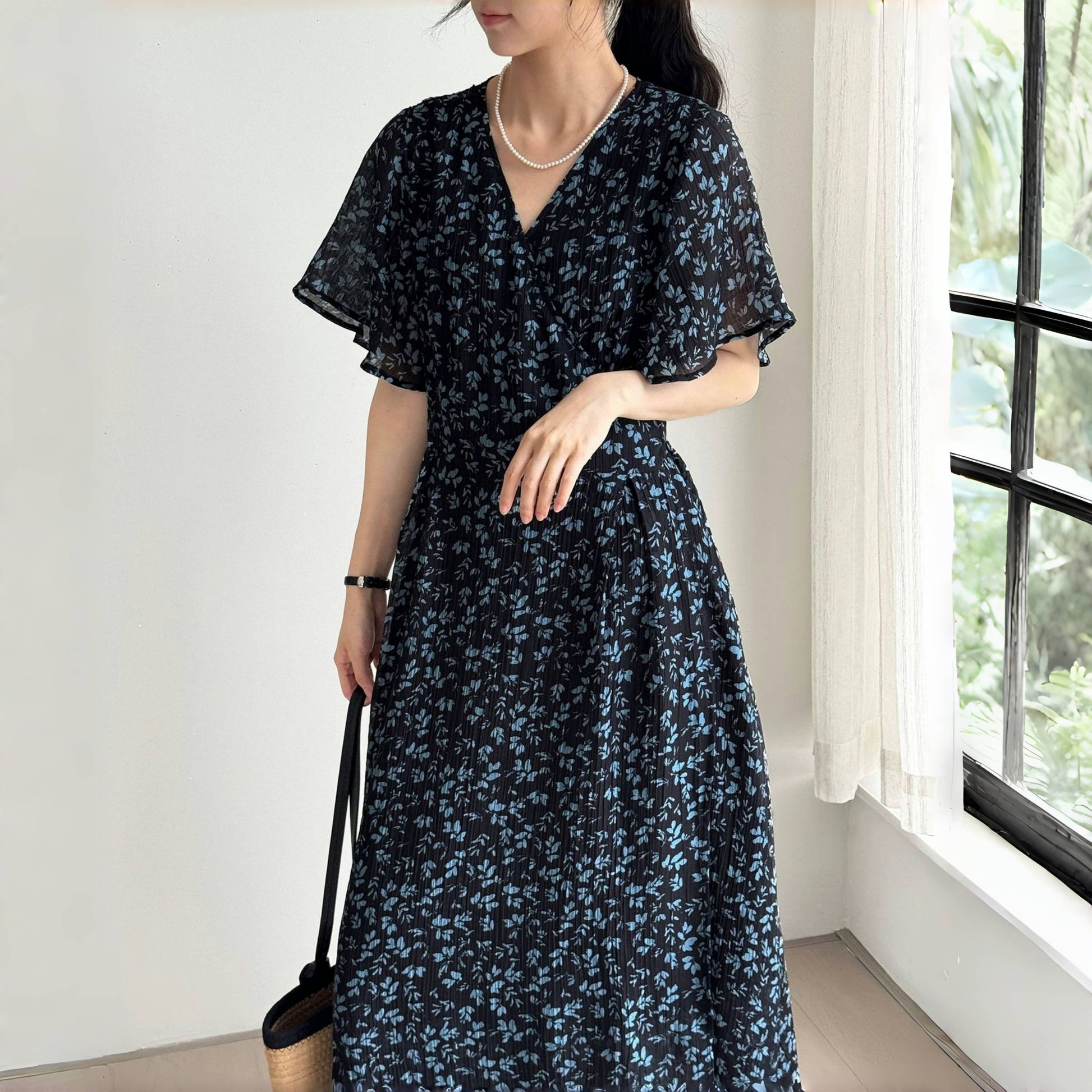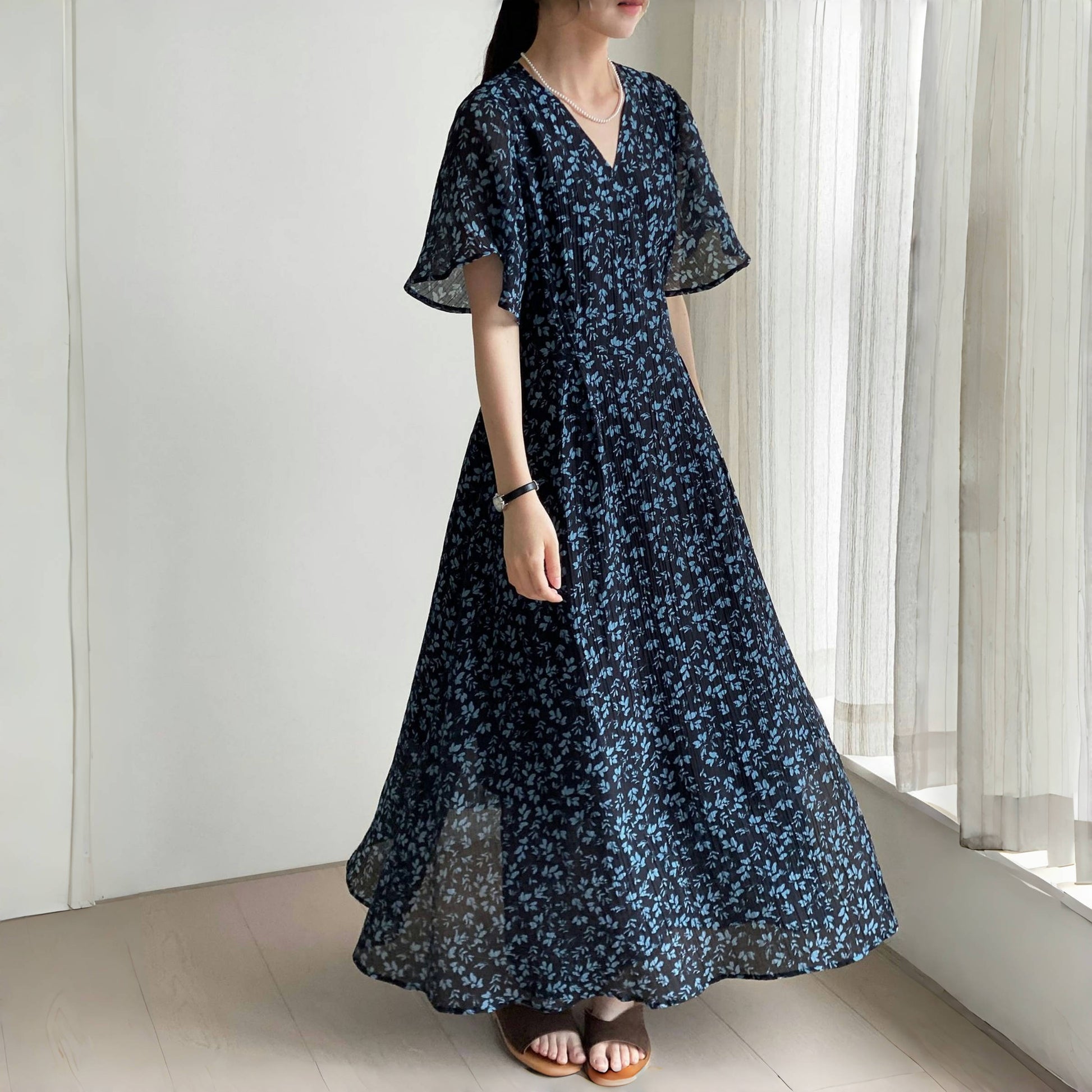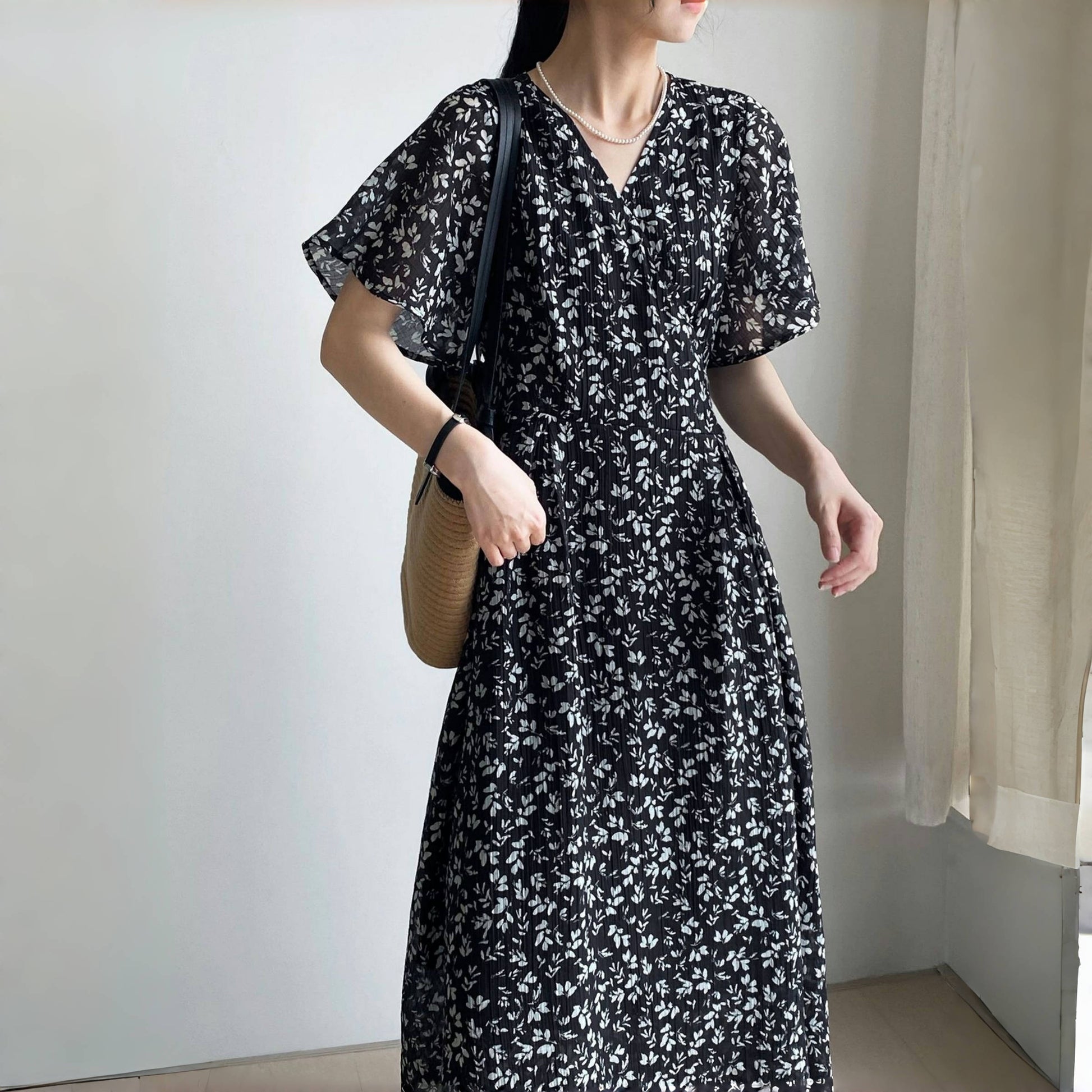 【商品名】【ワンピース】夏 Vネック ウエストリボン 花柄 半袖 ワンピース 【SHシリーズ】