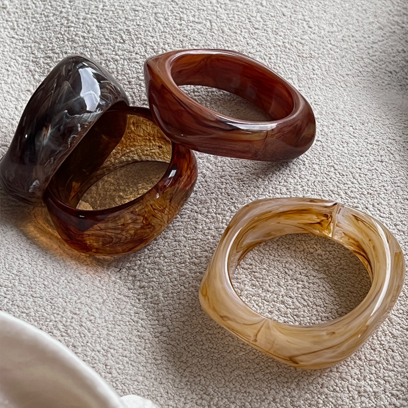 【🎁 B2G1|先行スタート!】【グッズ】アクリル 幅広 ジャパニーズ&コリアン レトロ ミニマル ファッション 樹脂 バングル