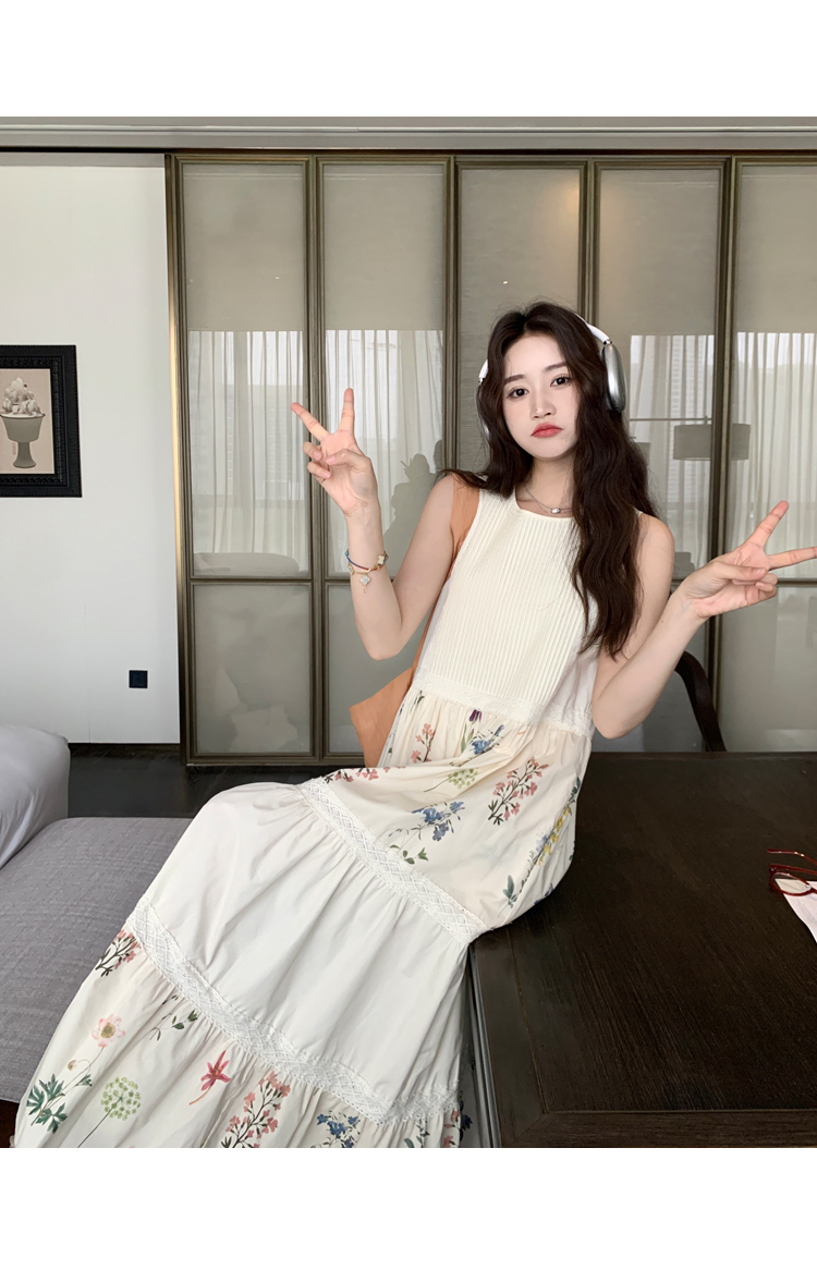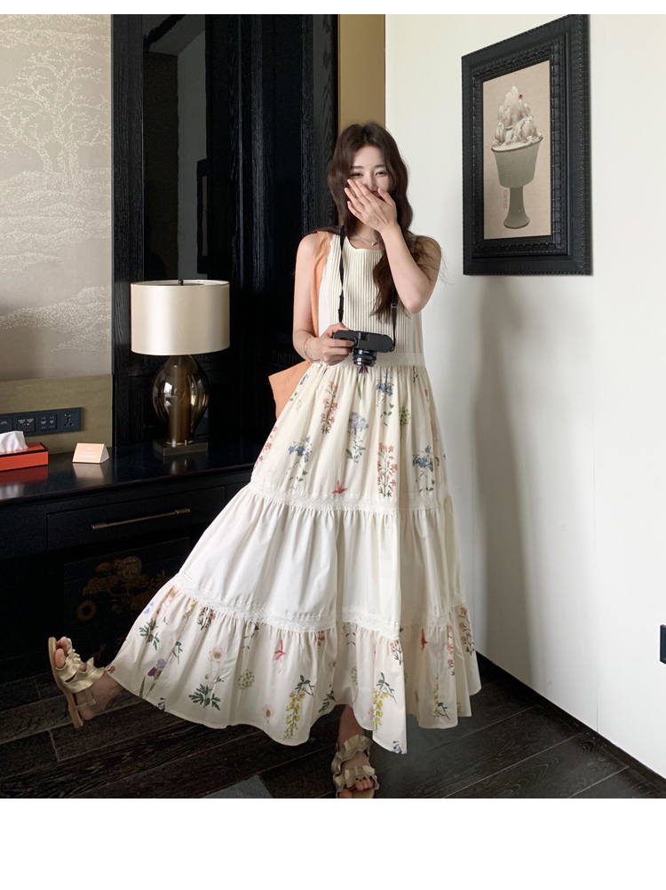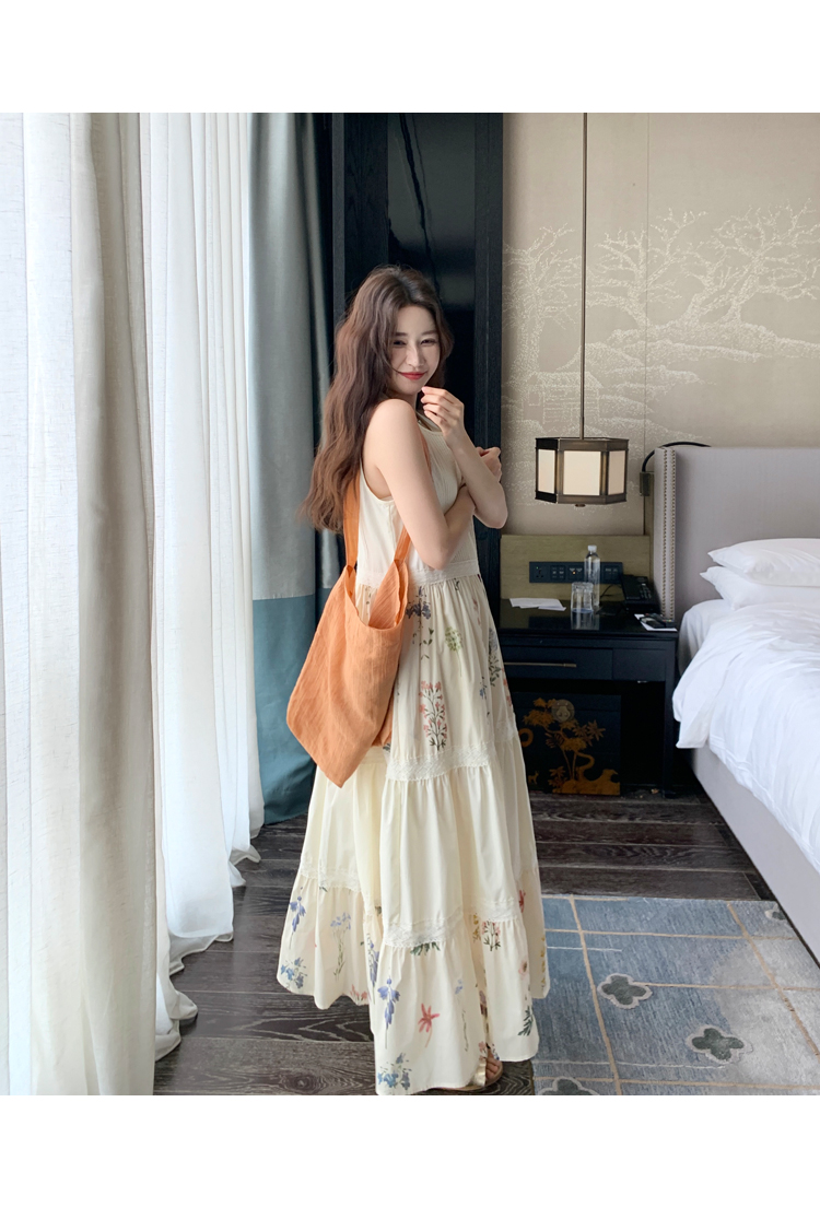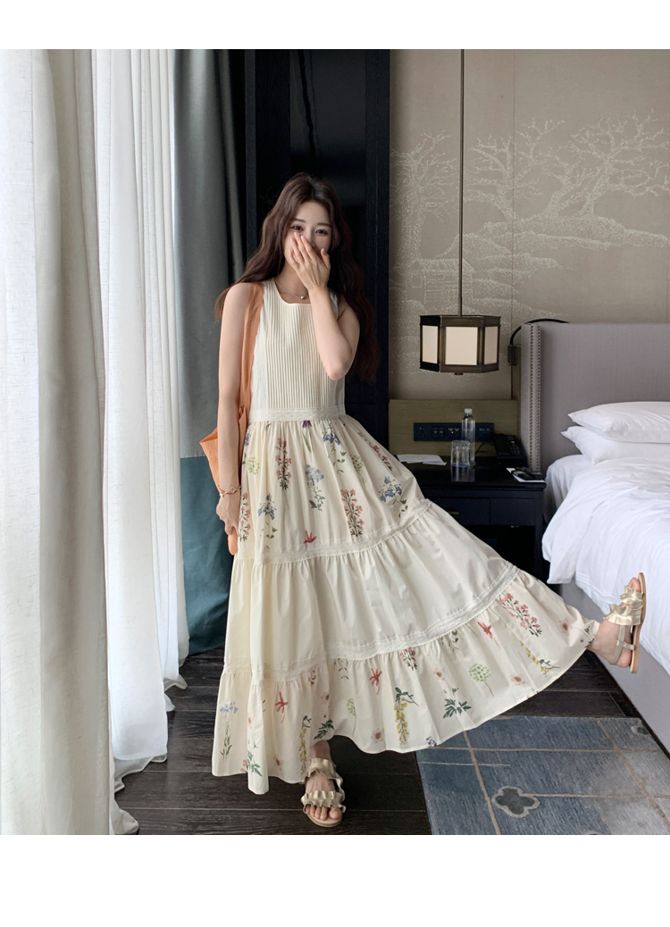 【ワンピース】夏 フレンチ気質 小花柄切替ノースリーブワンピース リゾート感たっぷり【SHシリーズ】