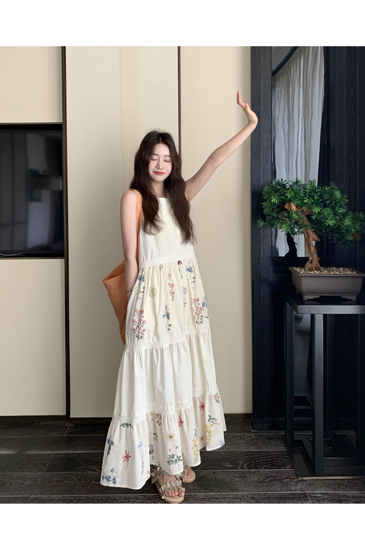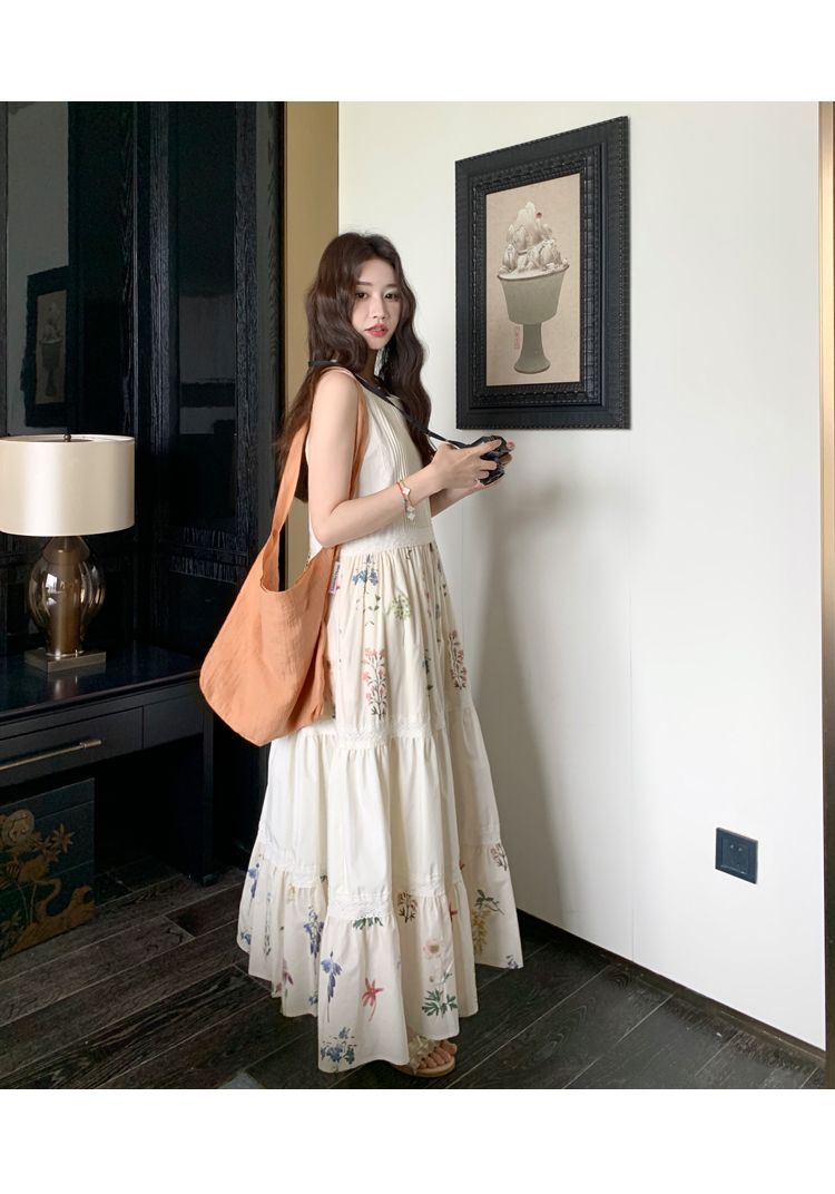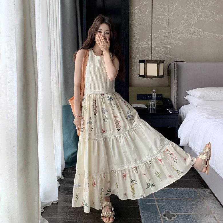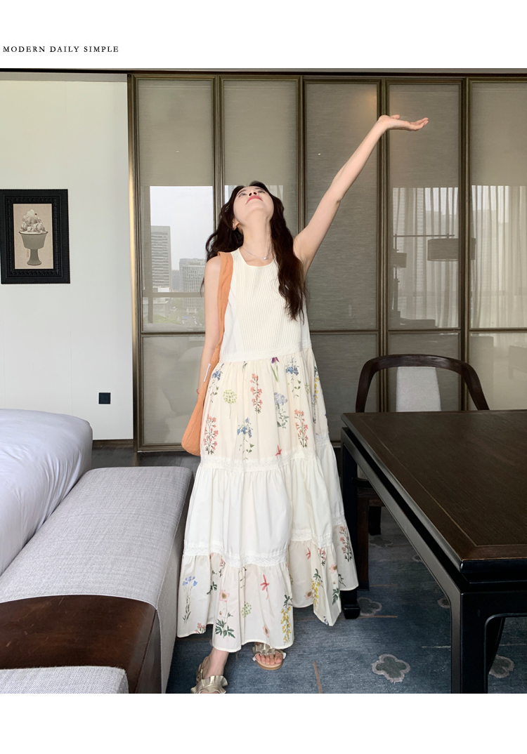 【ワンピース】夏 フレンチ気質 小花柄切替ノースリーブワンピース リゾート感たっぷり【SHシリーズ】