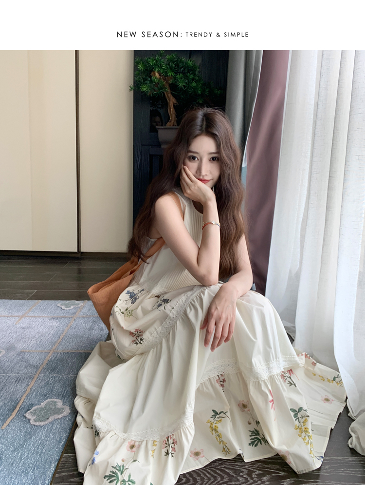 【商品名】【ワンピース】夏 フレンチ気質 小花柄切替ノースリーブワンピース リゾート感たっぷり【SHシリーズ】