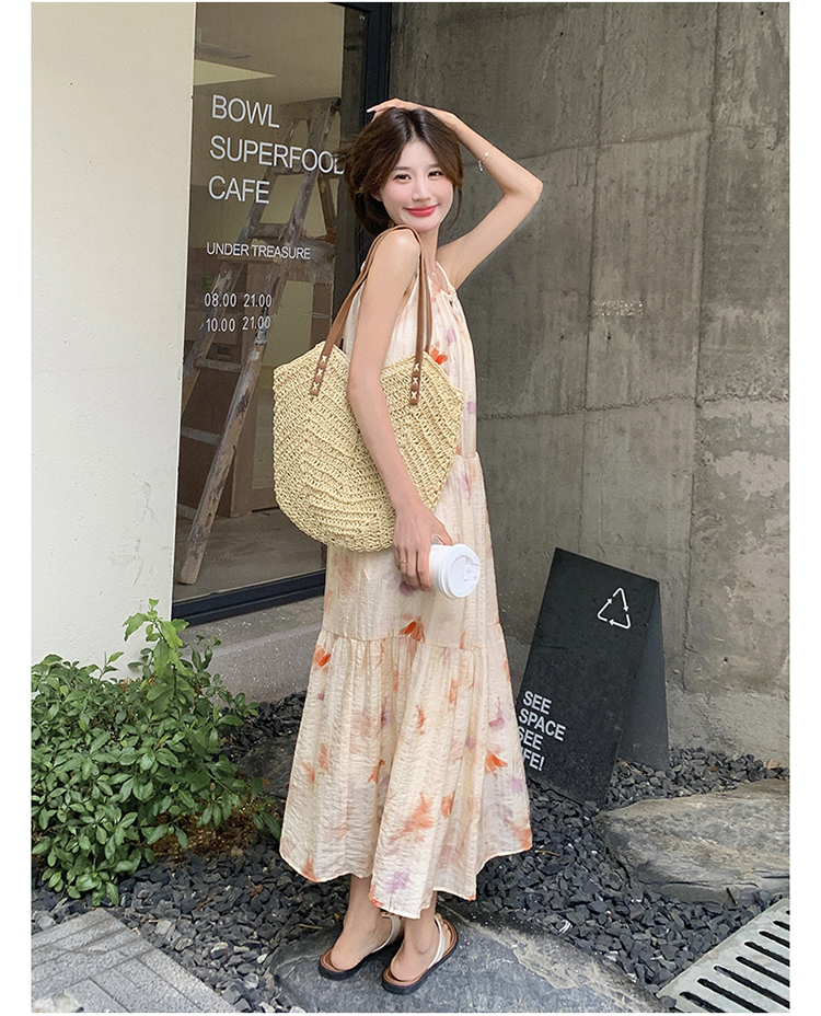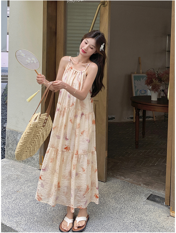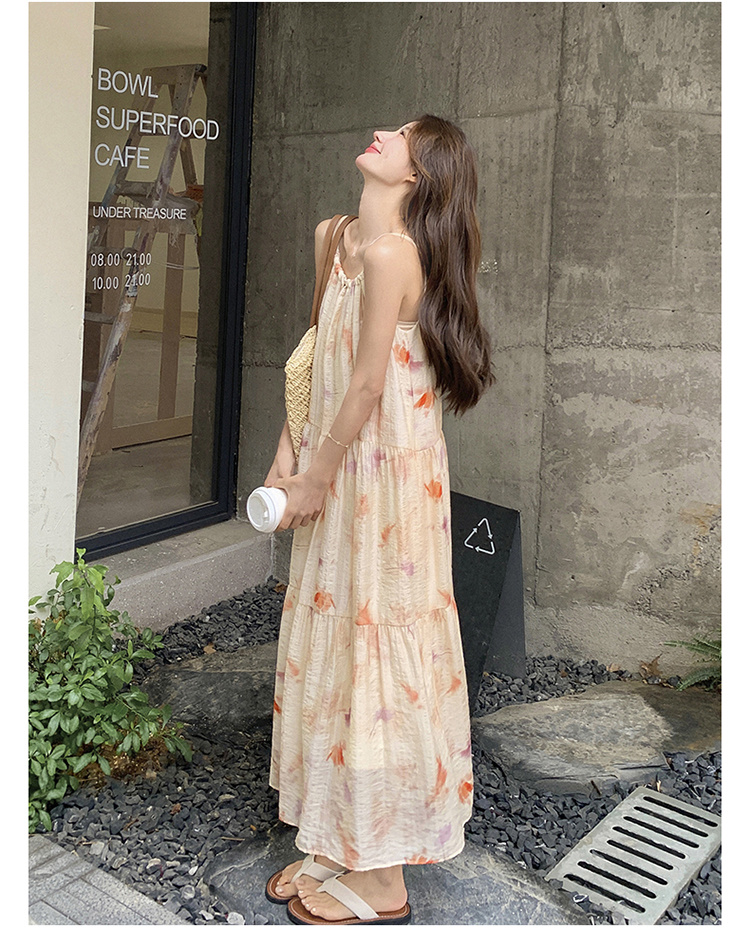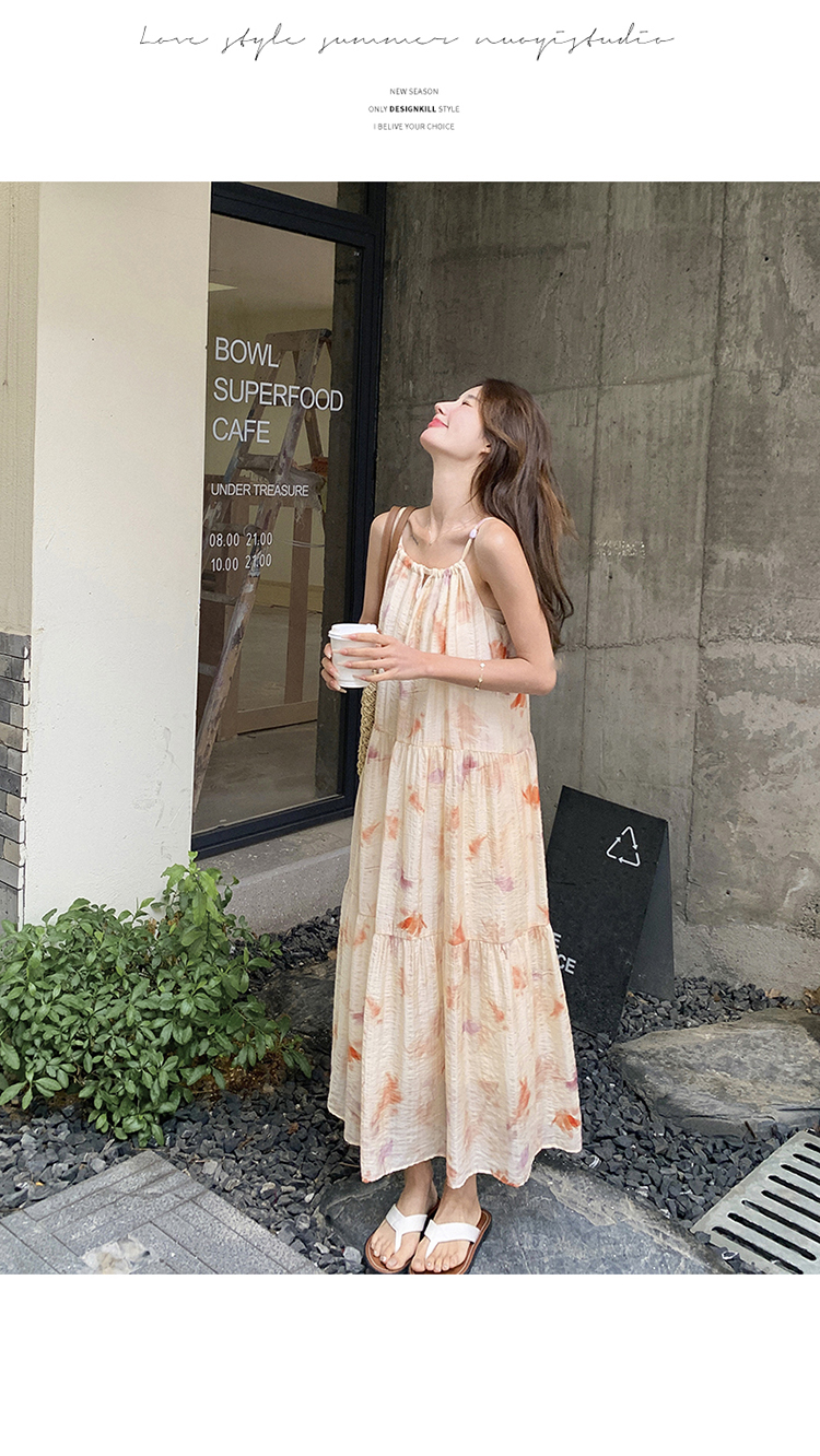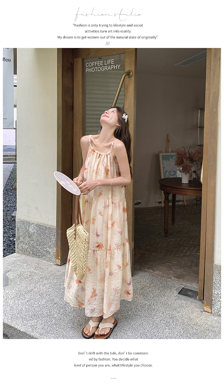 【ワンピース】フレンチ風プリント 夏らしい優美な雰囲気 ノースリーブキャミワンピース リゾート感たっぷり【SHシリーズ】