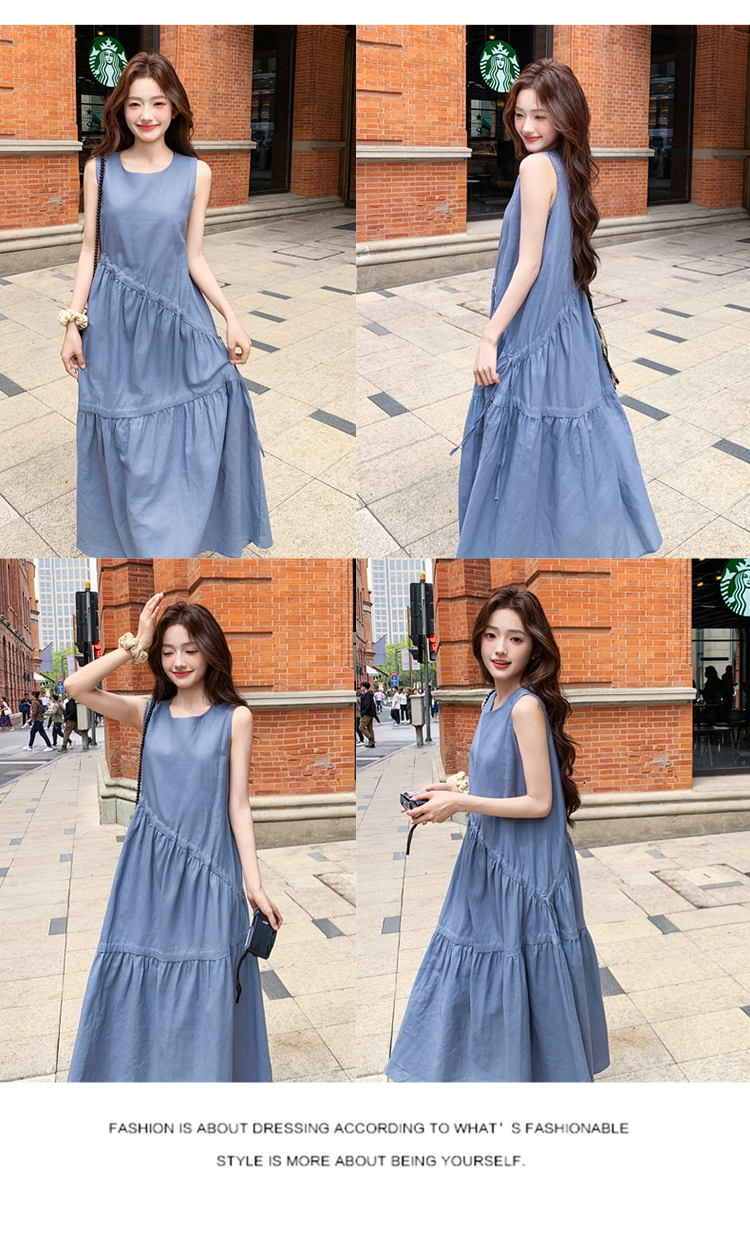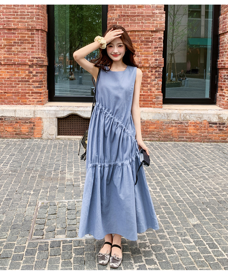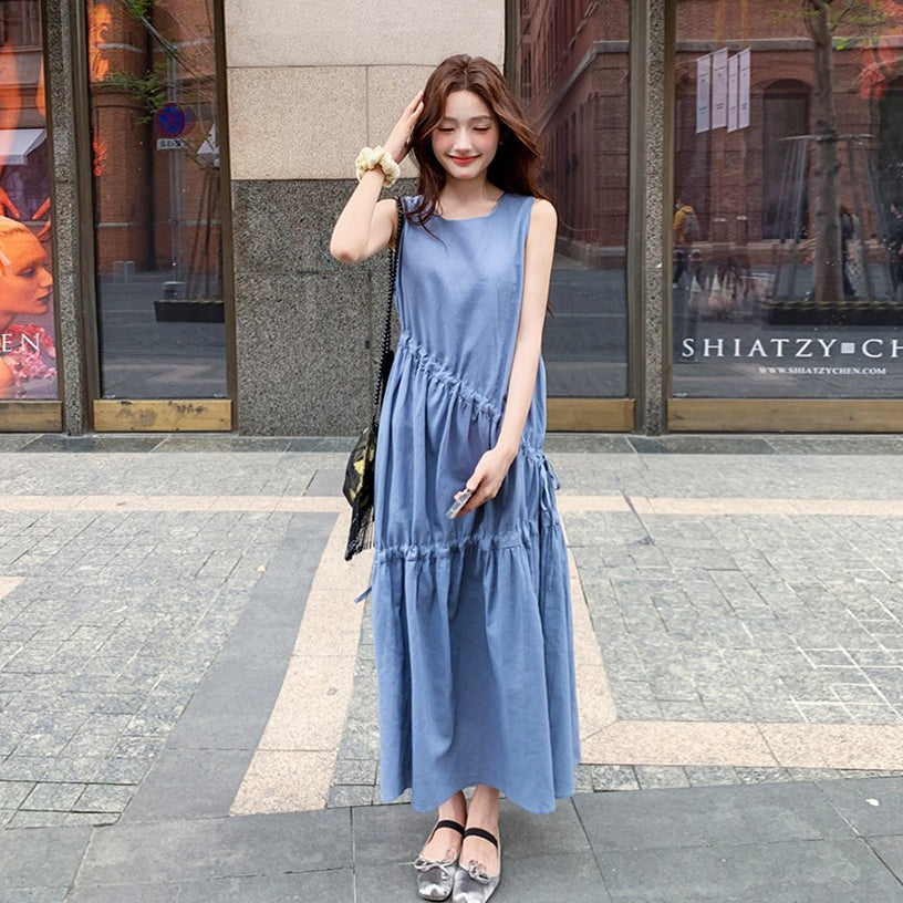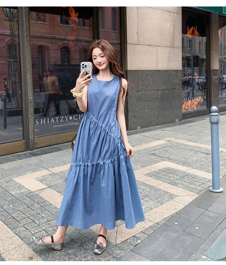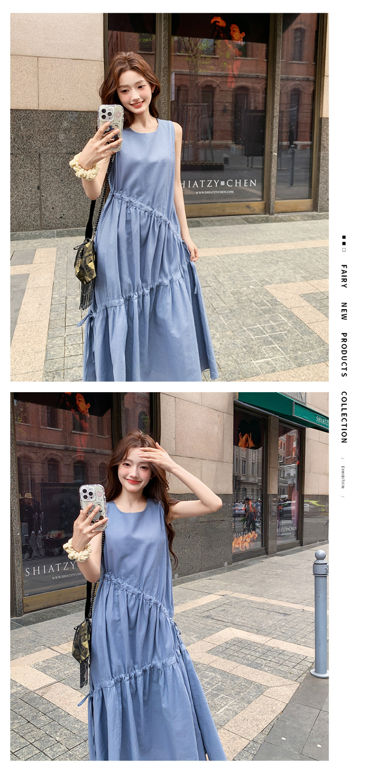 【ワンピース】夏新作 フレンチ気質 ギャザー&リボンデザイン ノースリーブワンピース【SHシリーズ】