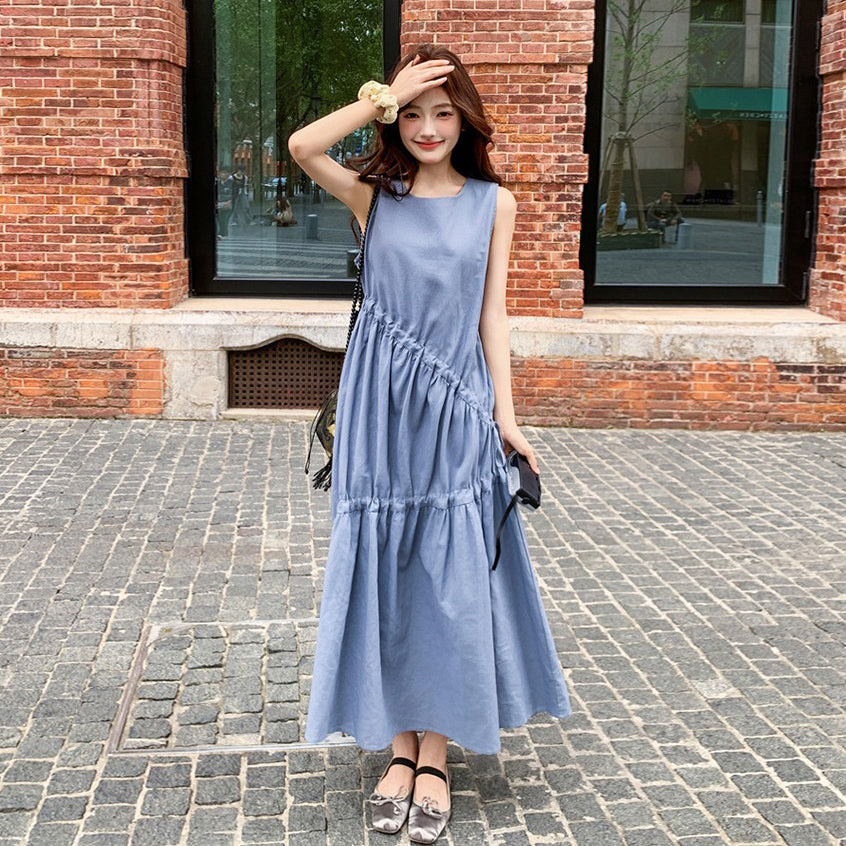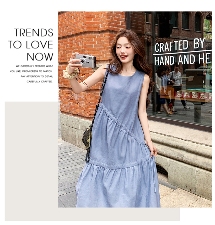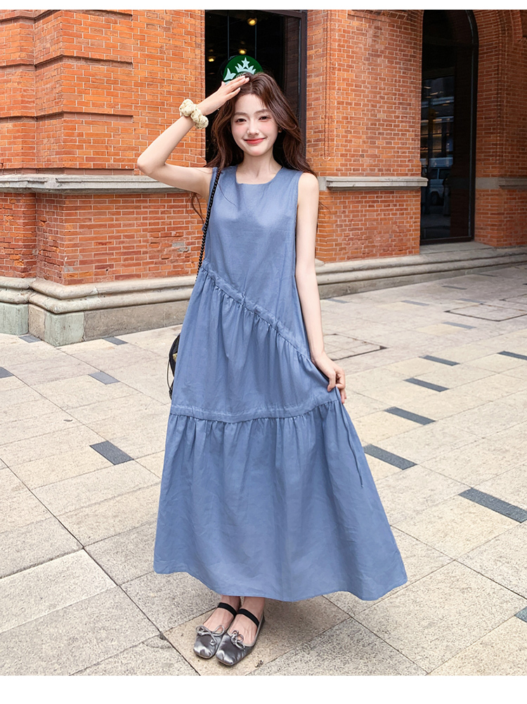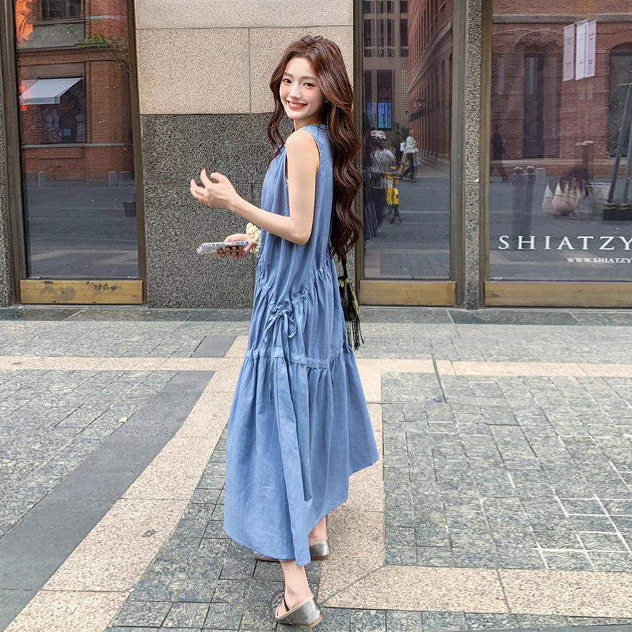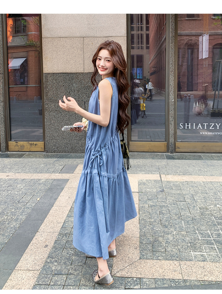 【ワンピース】夏新作 フレンチ気質 ギャザー&リボンデザイン ノースリーブワンピース【SHシリーズ】