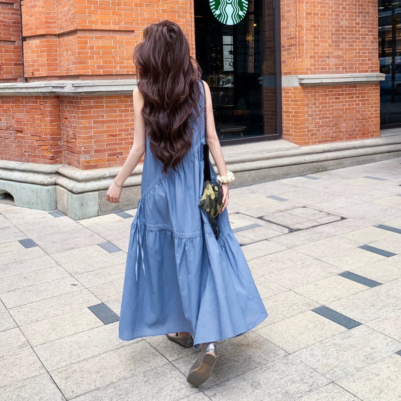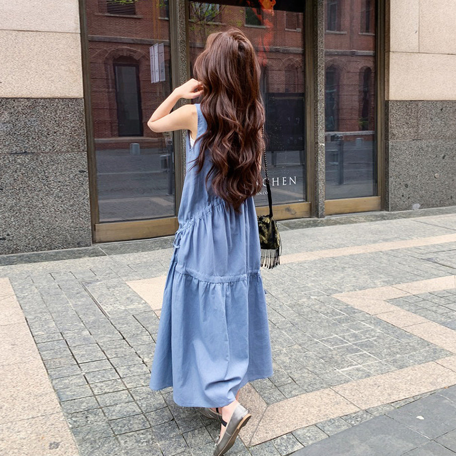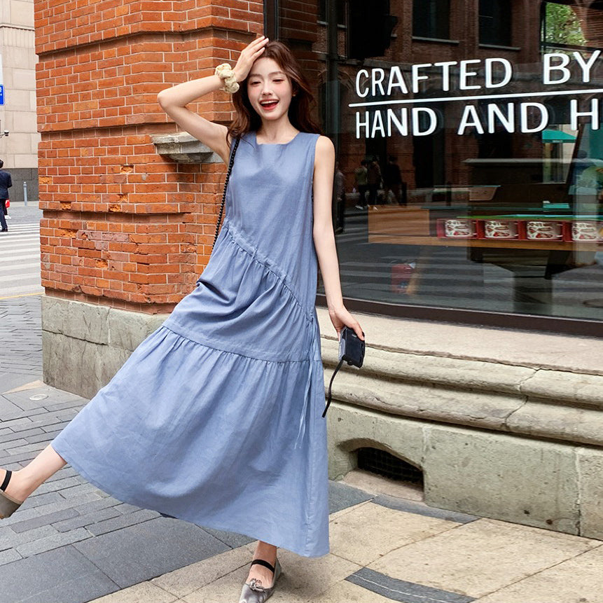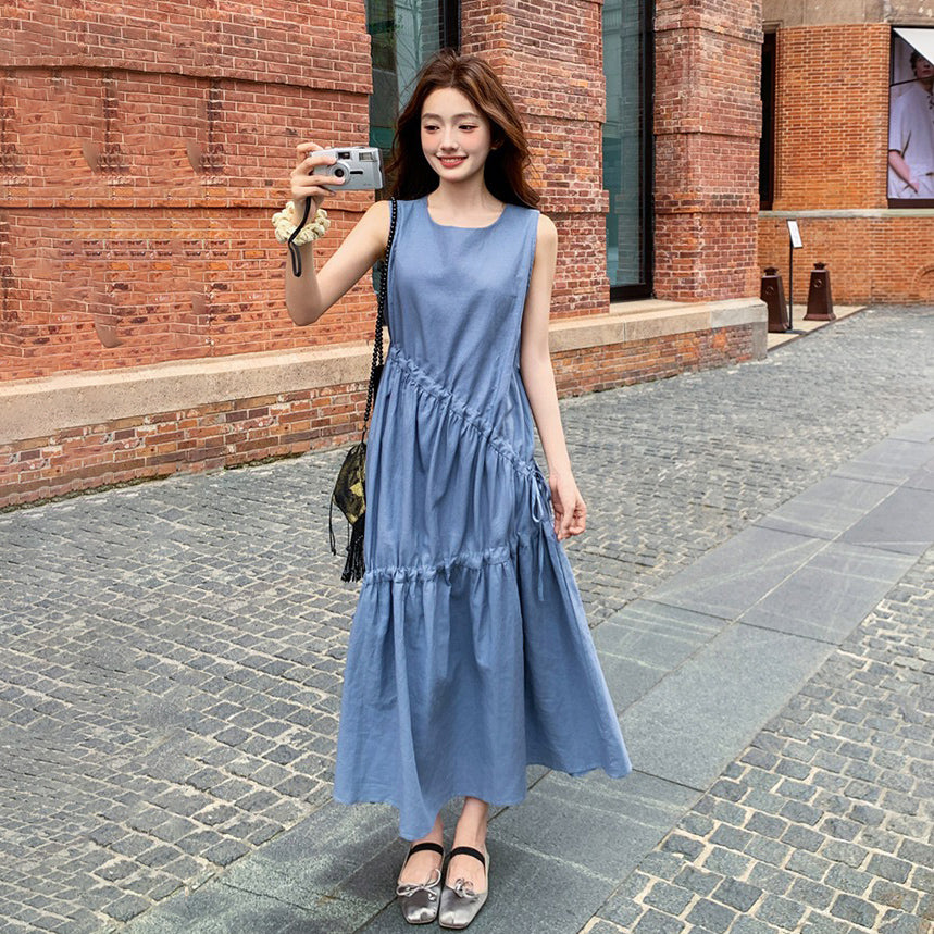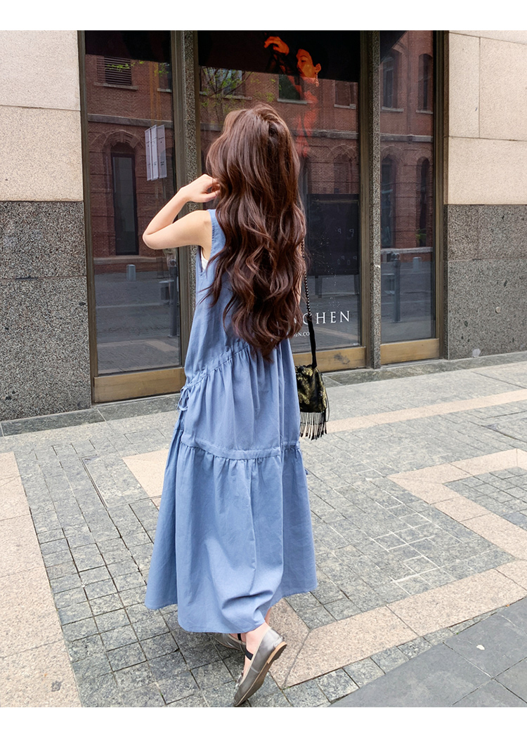 【商品名】【ワンピース】夏新作 フレンチ気質 ギャザー&リボンデザイン ノースリーブワンピース【SHシリーズ】
