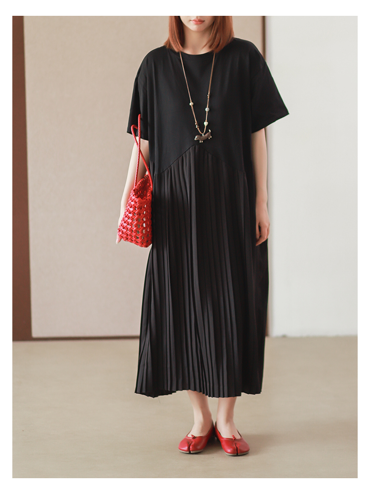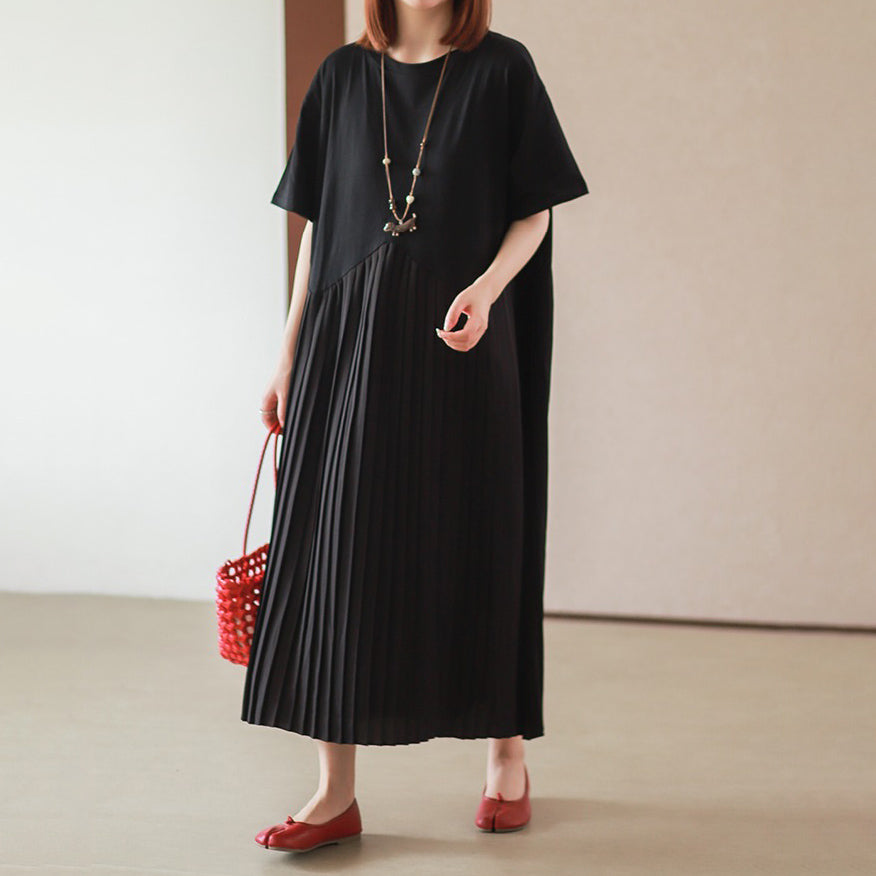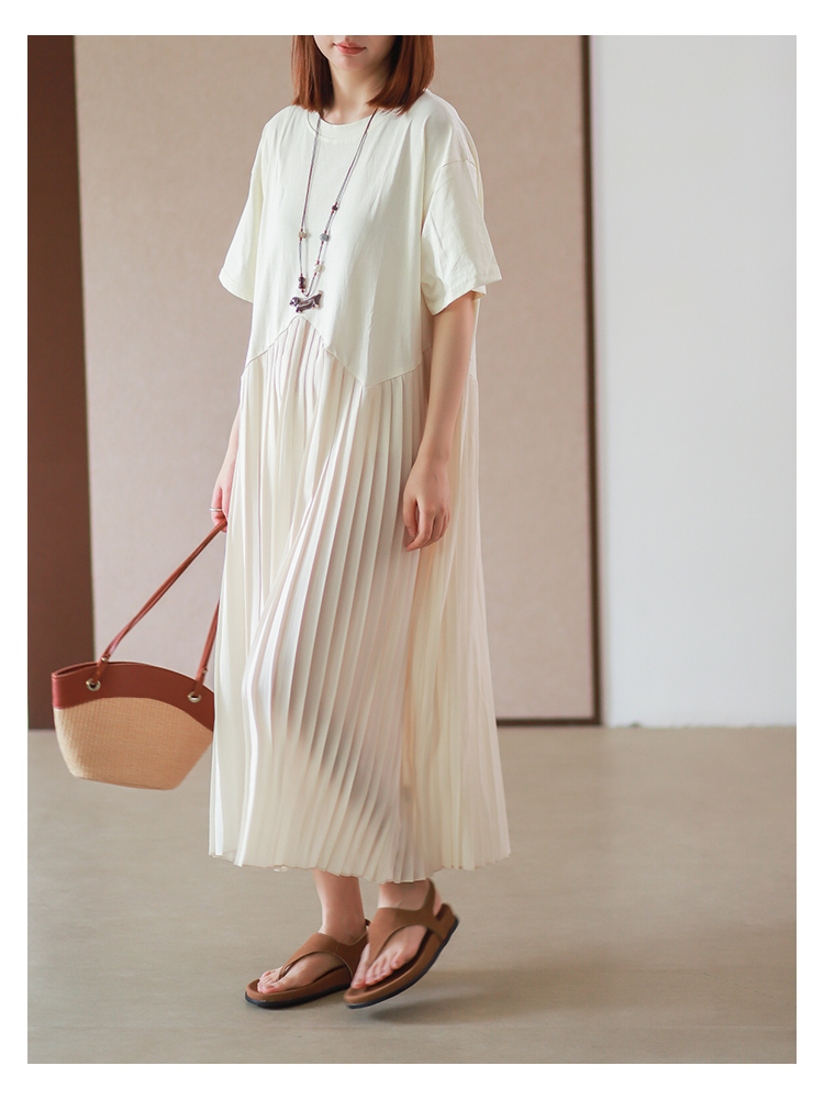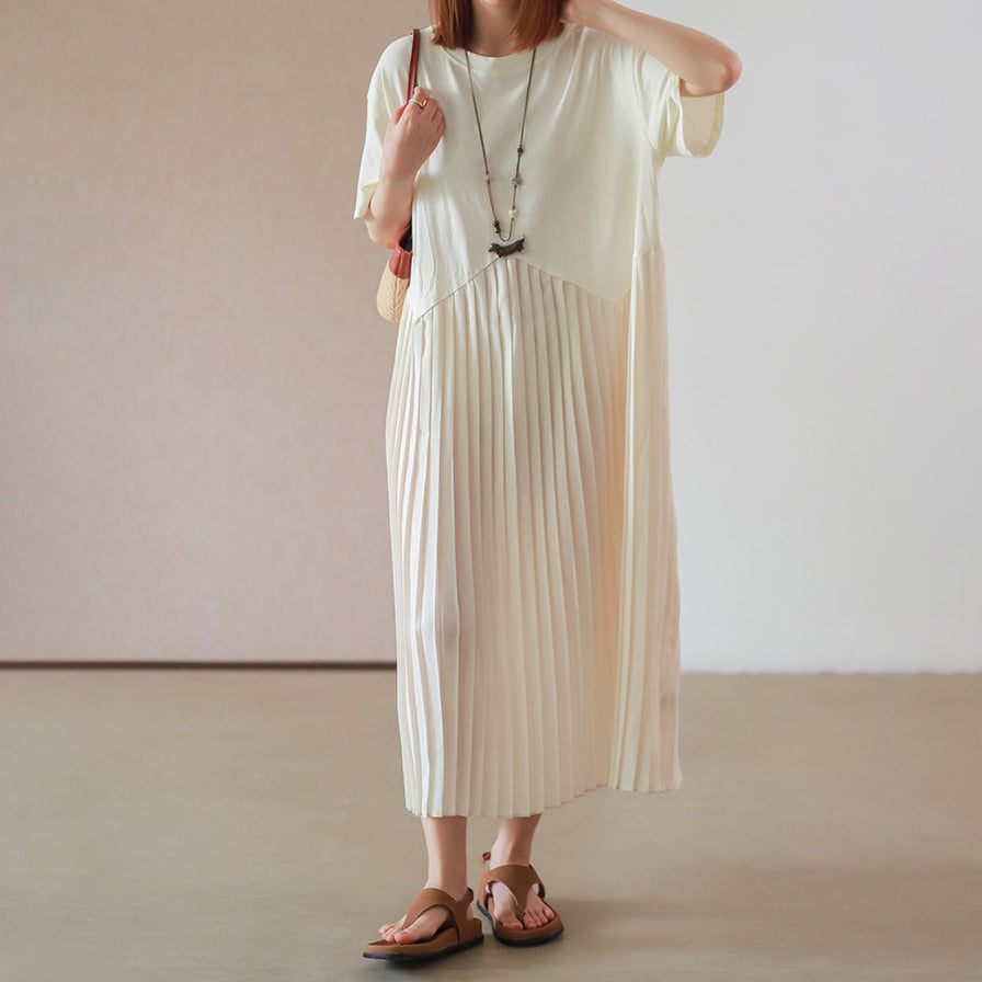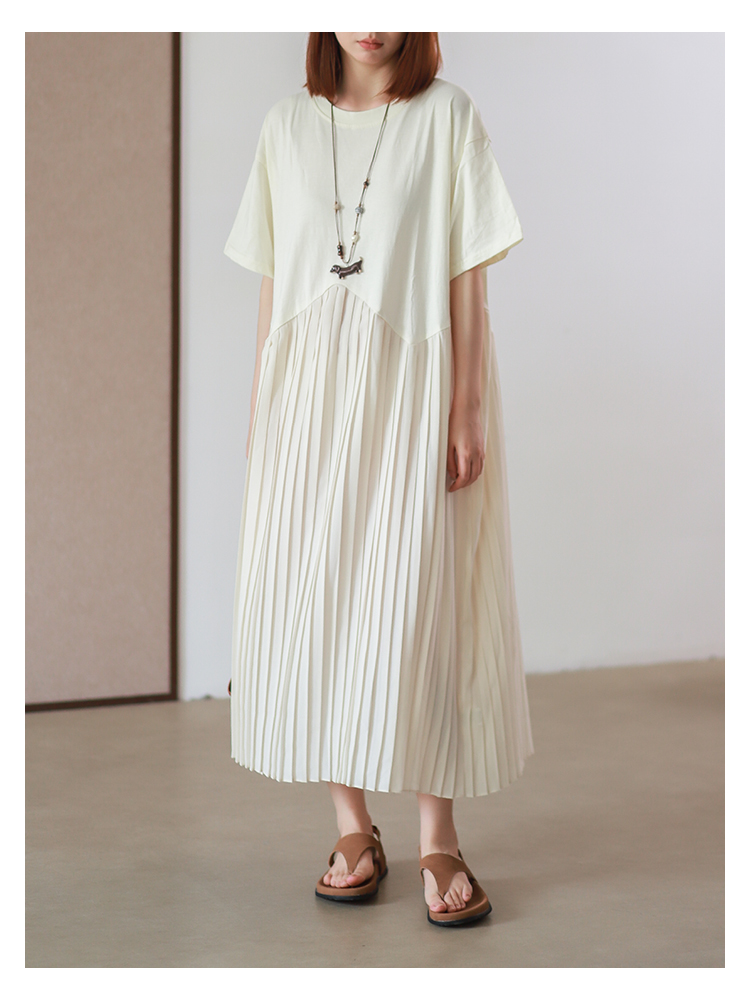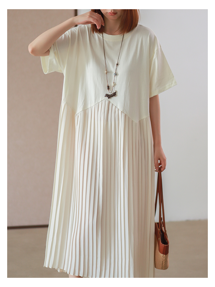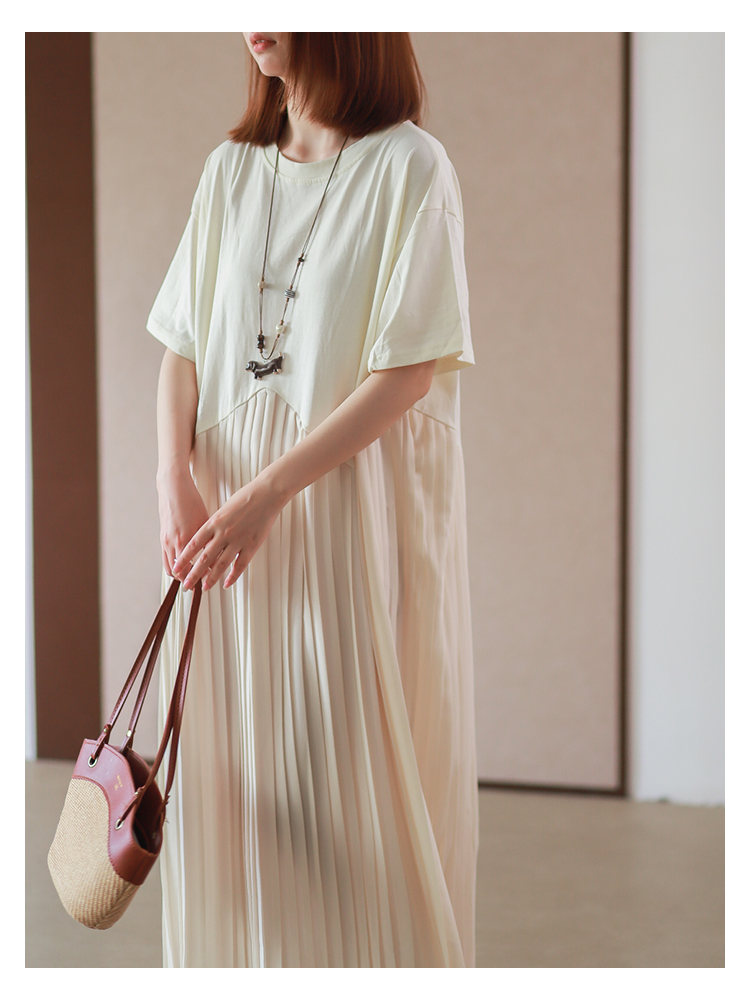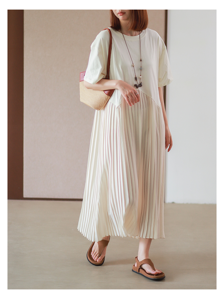 【ワンピース】シンプル ゆったりカジュアル プリーツ 半袖ワンピース【JZシリーズ】
