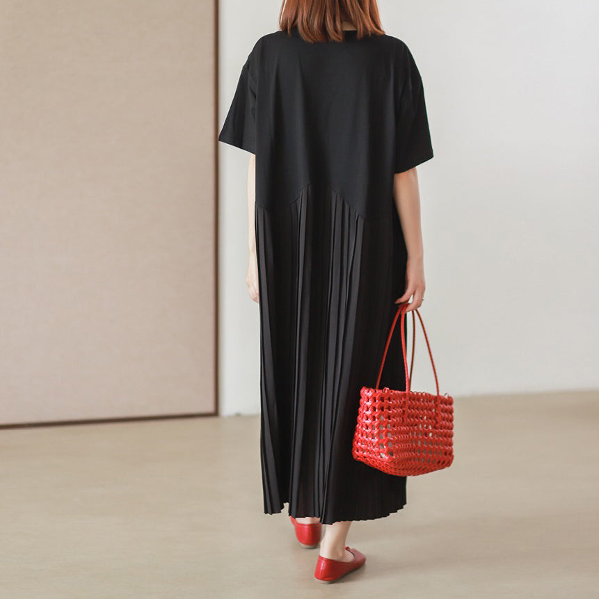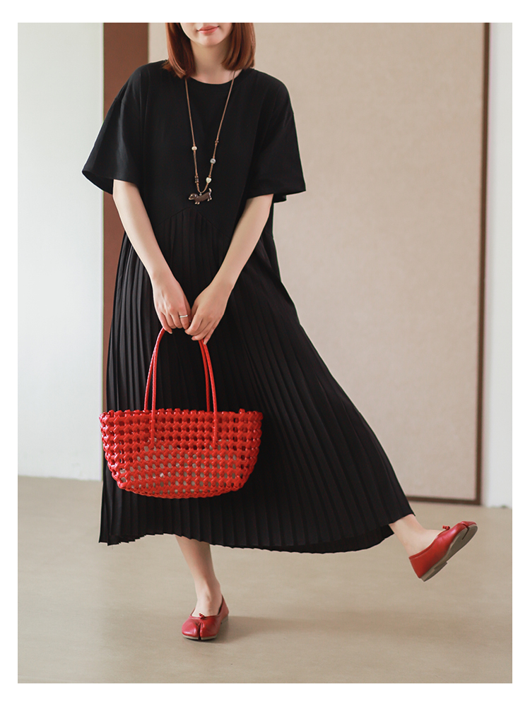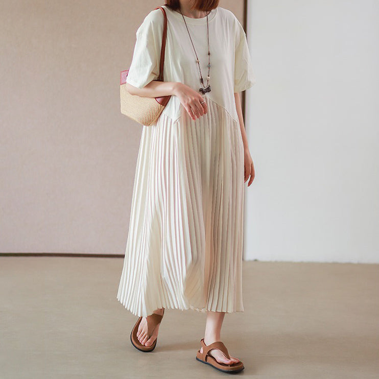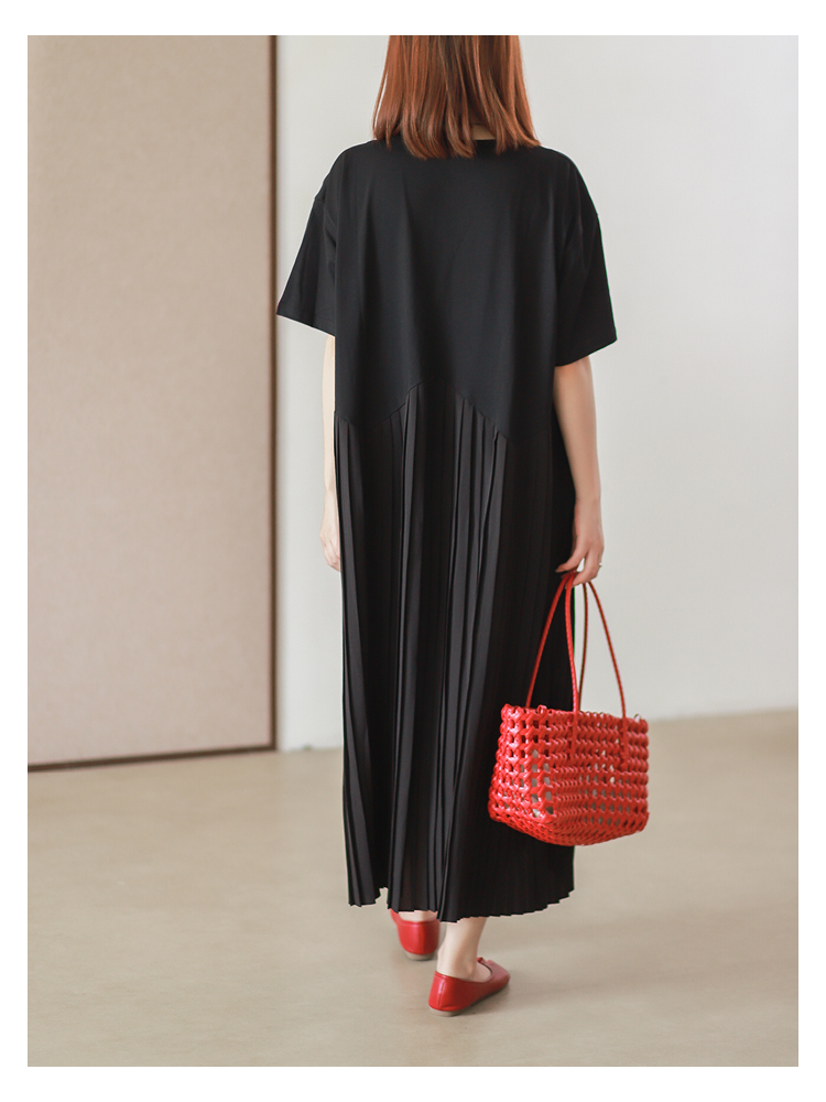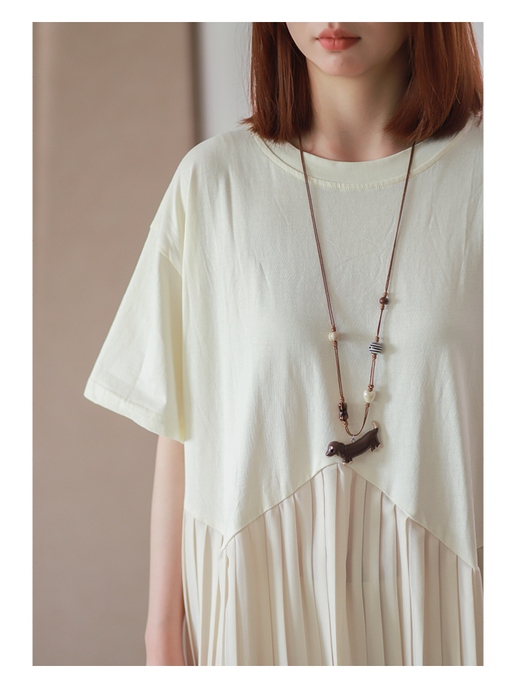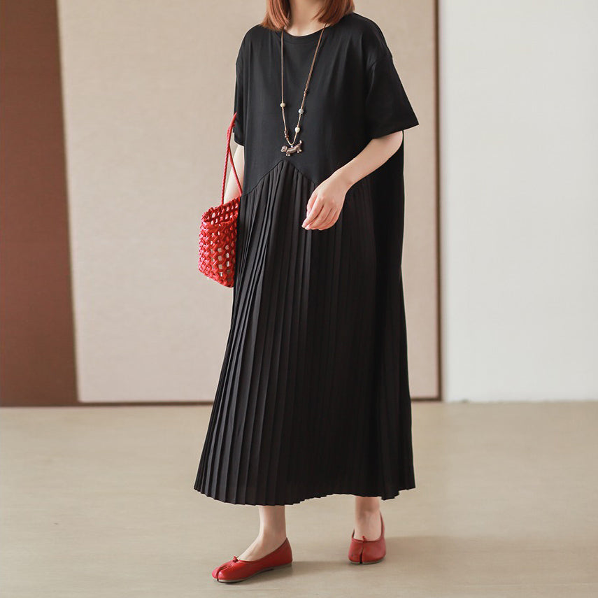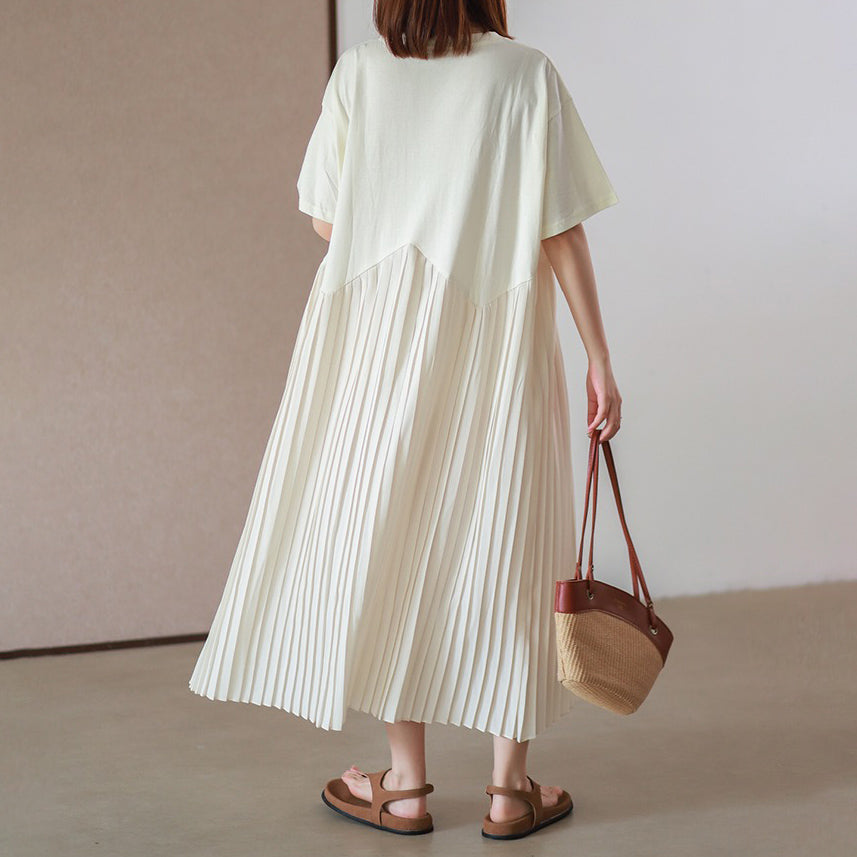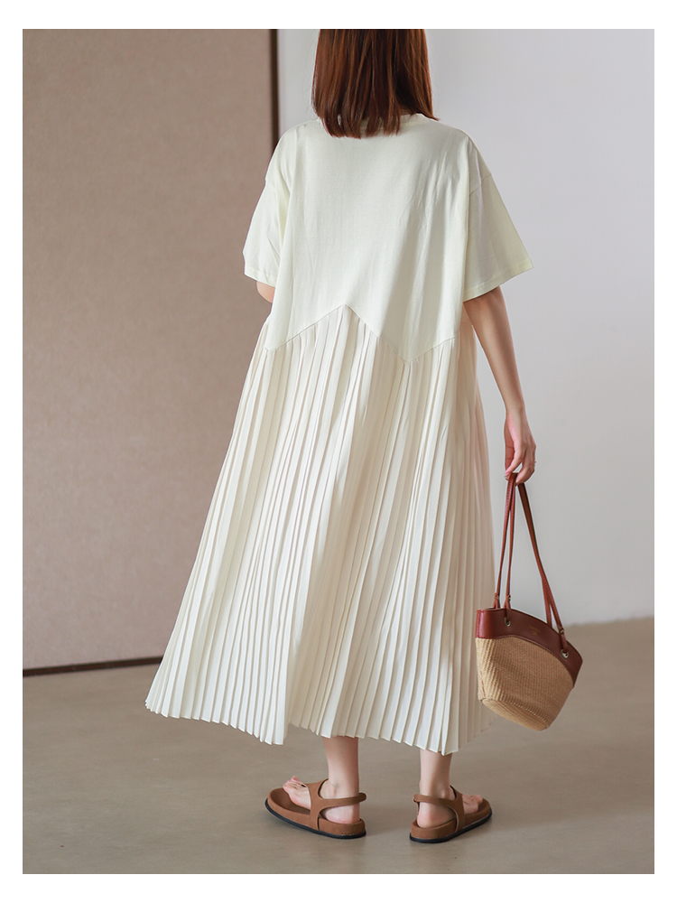 【ワンピース】シンプル ゆったりカジュアル プリーツ 半袖ワンピース【JZシリーズ】