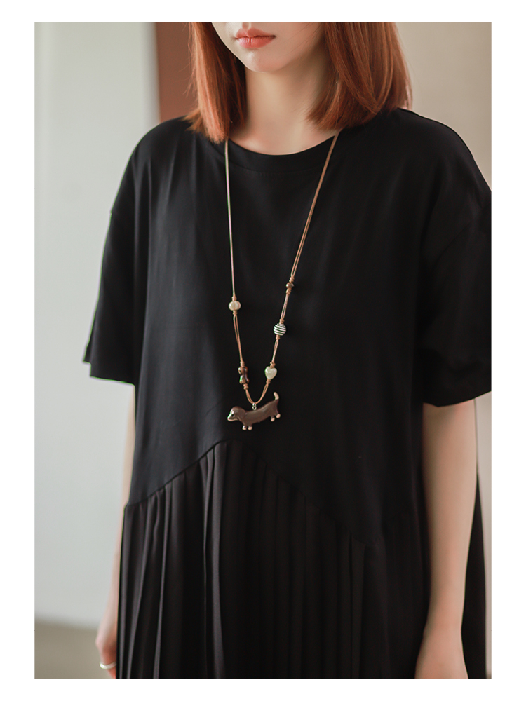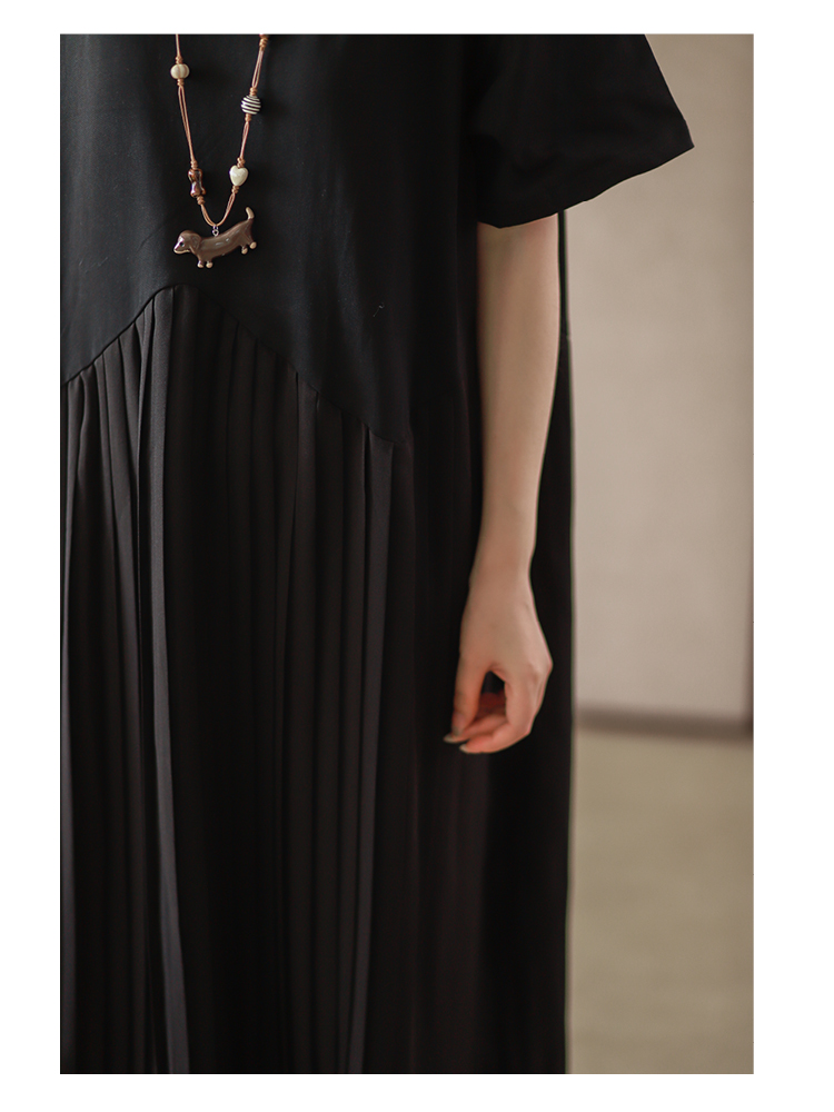 【商品名】【ワンピース】シンプル ゆったりカジュアル プリーツ 半袖ワンピース【JZシリーズ】