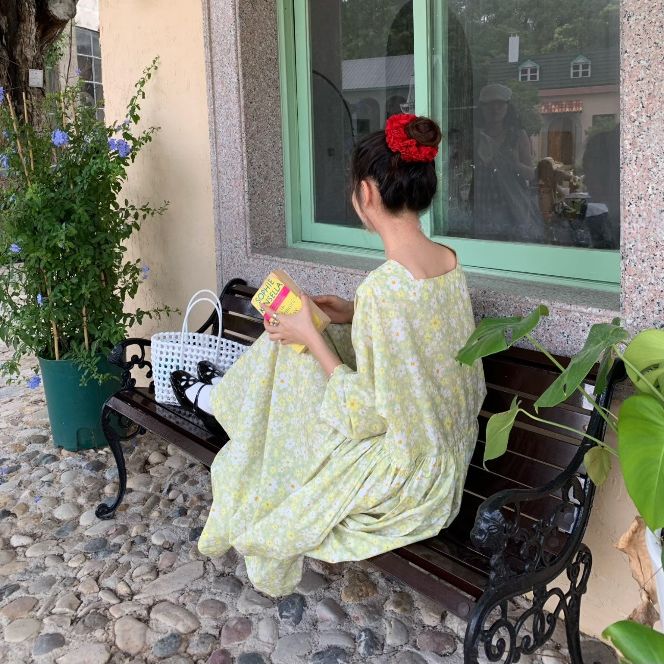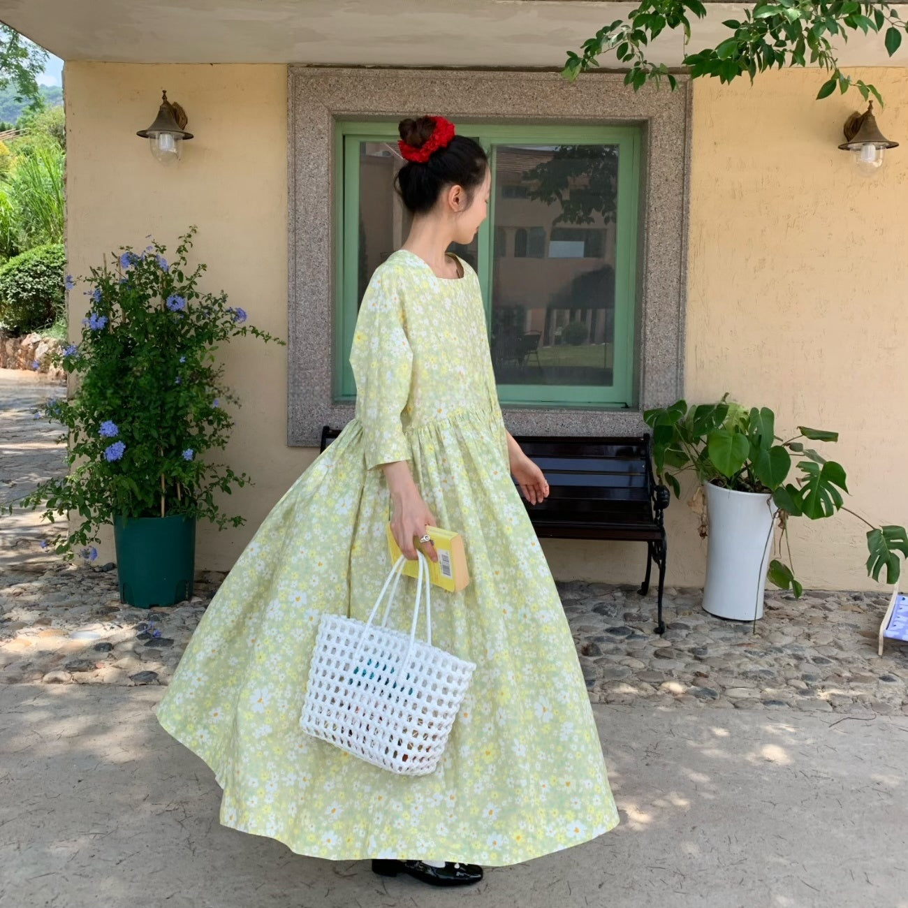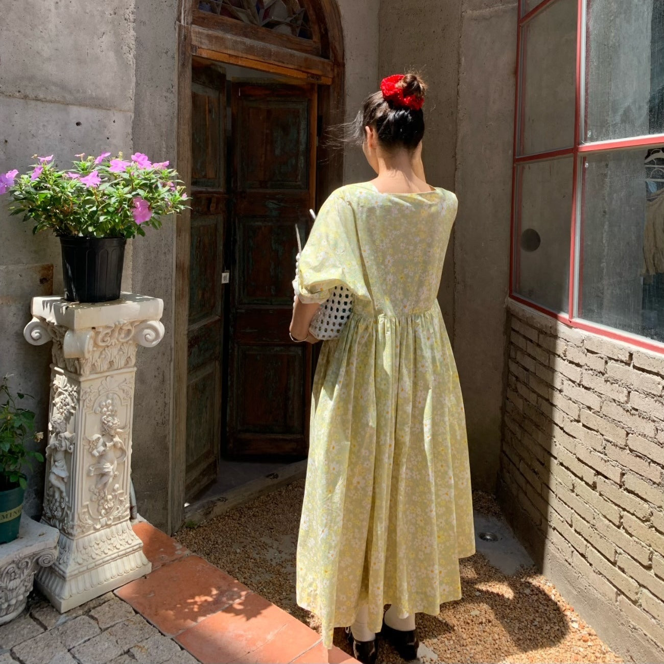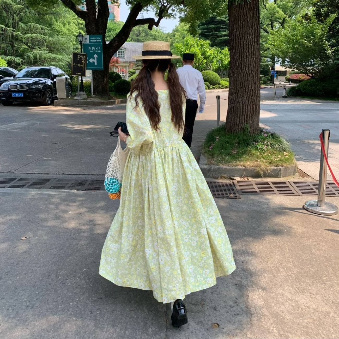 【商品名】【ワンピース】夏 スクエアネック レトロ 花柄 大振裾 半袖 ワンピース【SHシリーズ】
