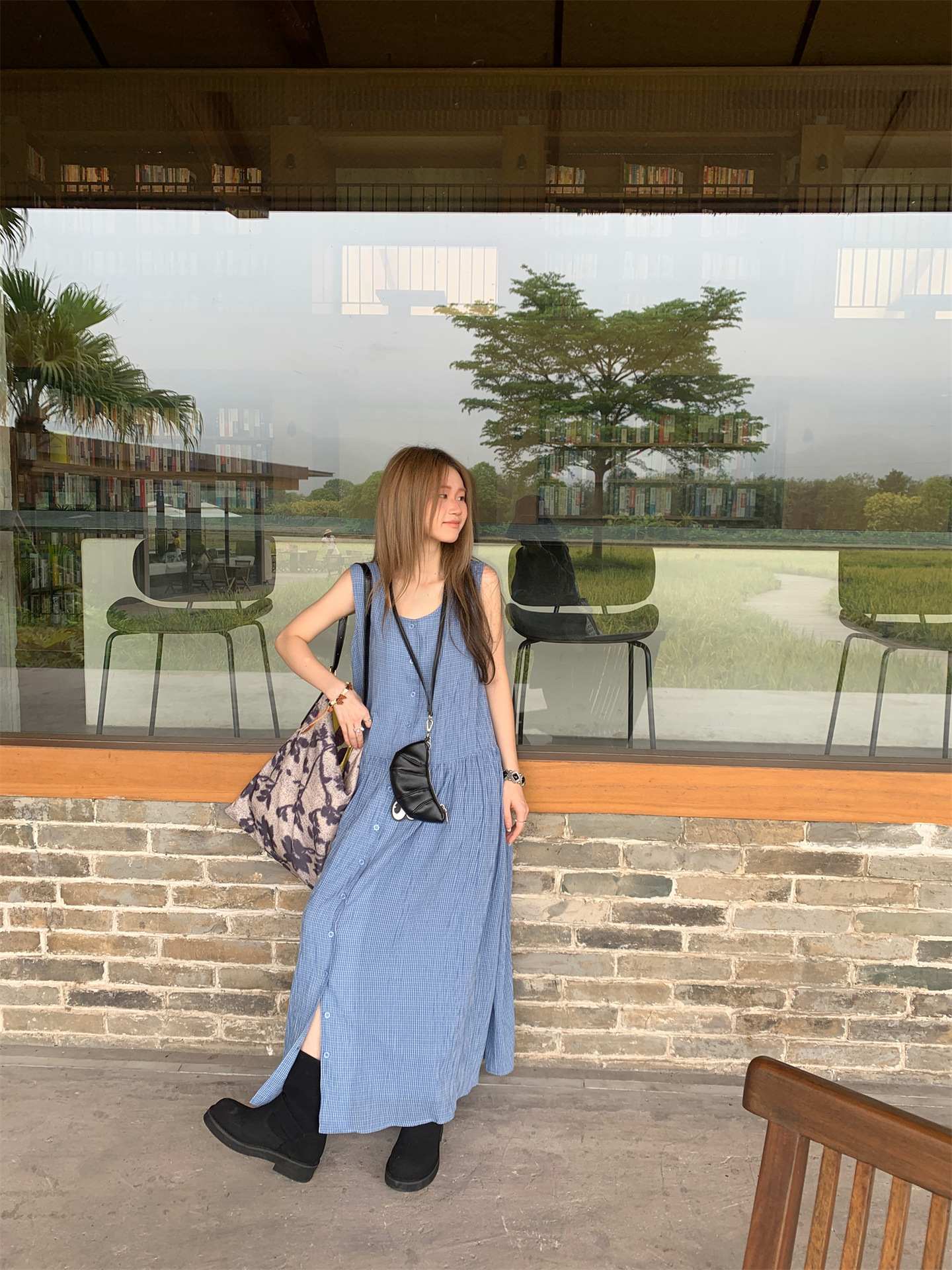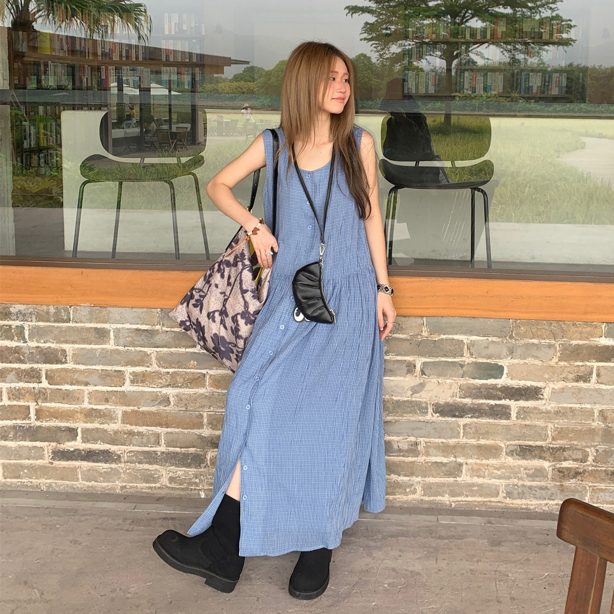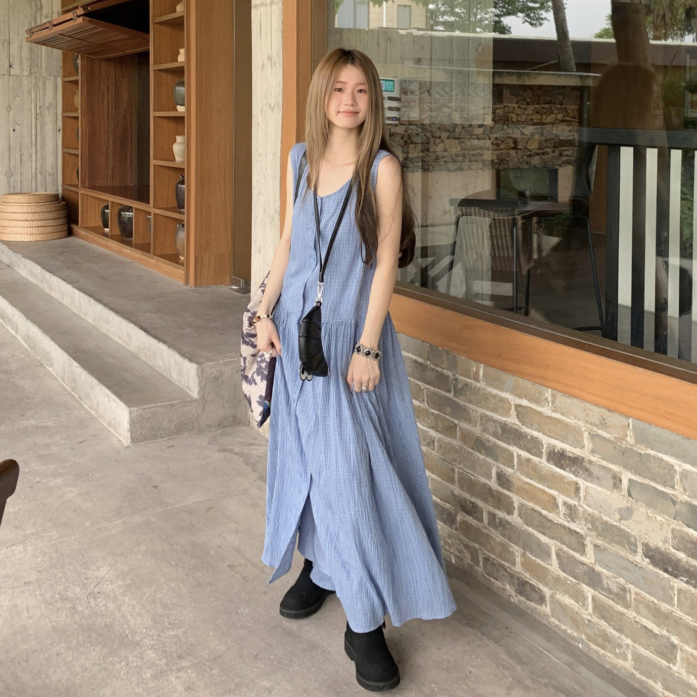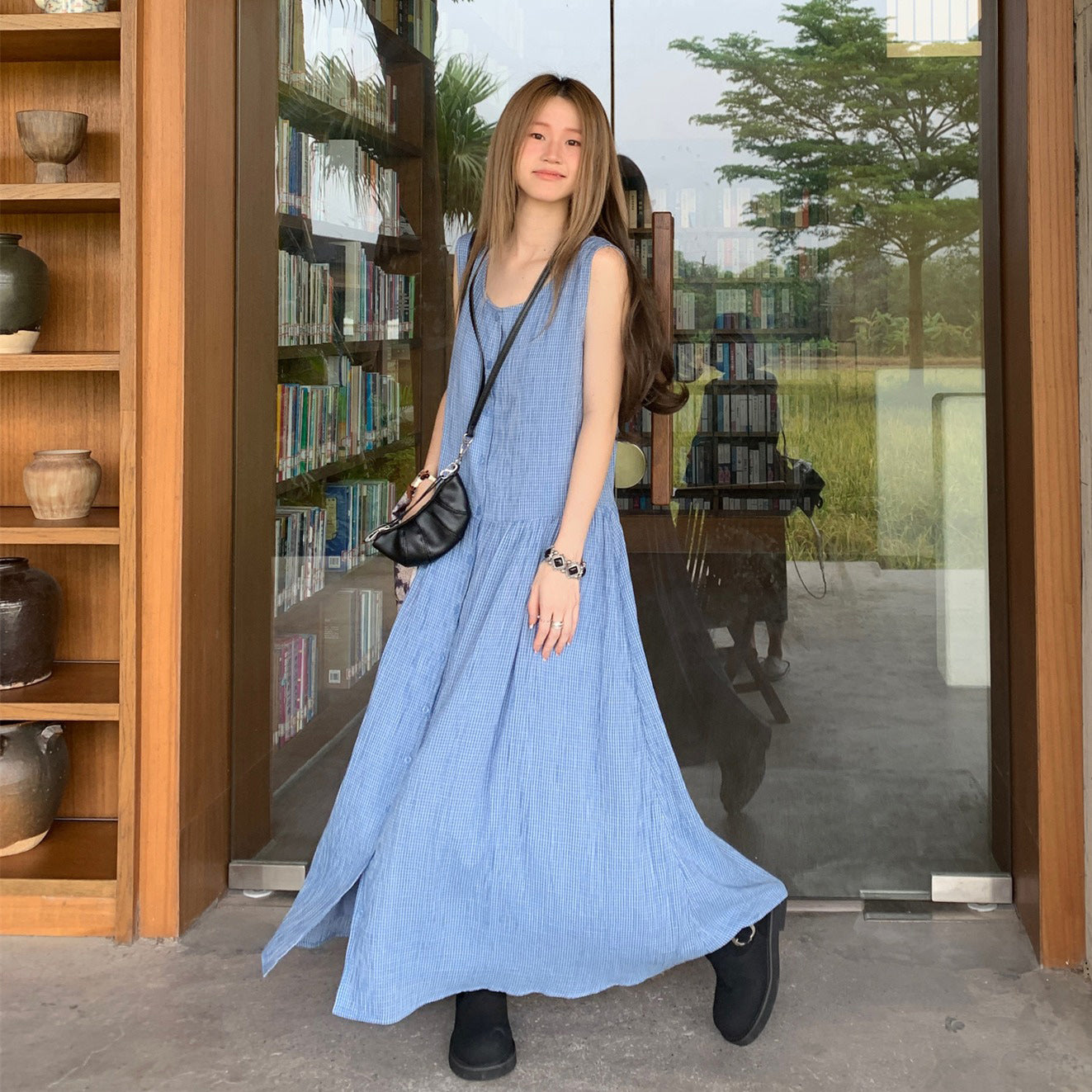 【ワンピース】韓国風チェック柄 夏の甘くて爽やかなノースリーブワンピース【SHシリーズ】