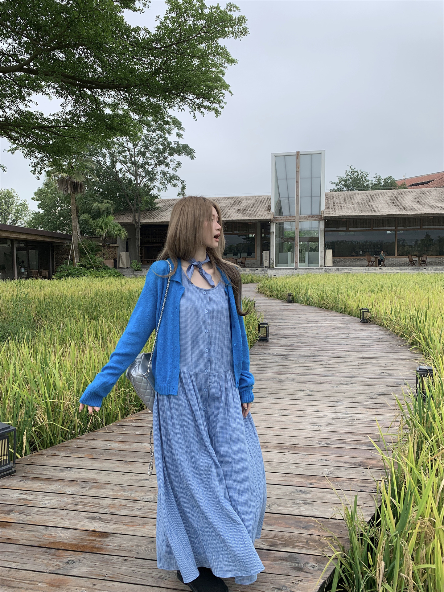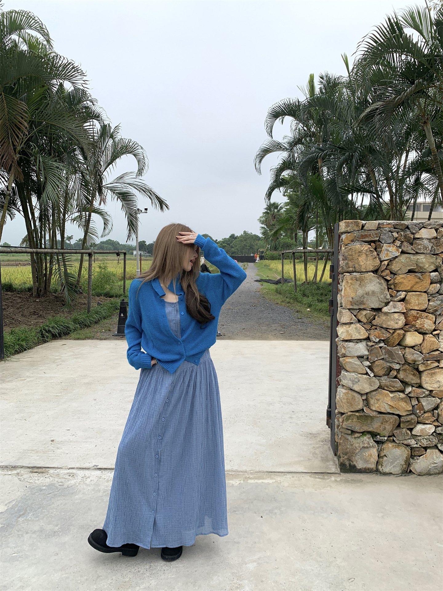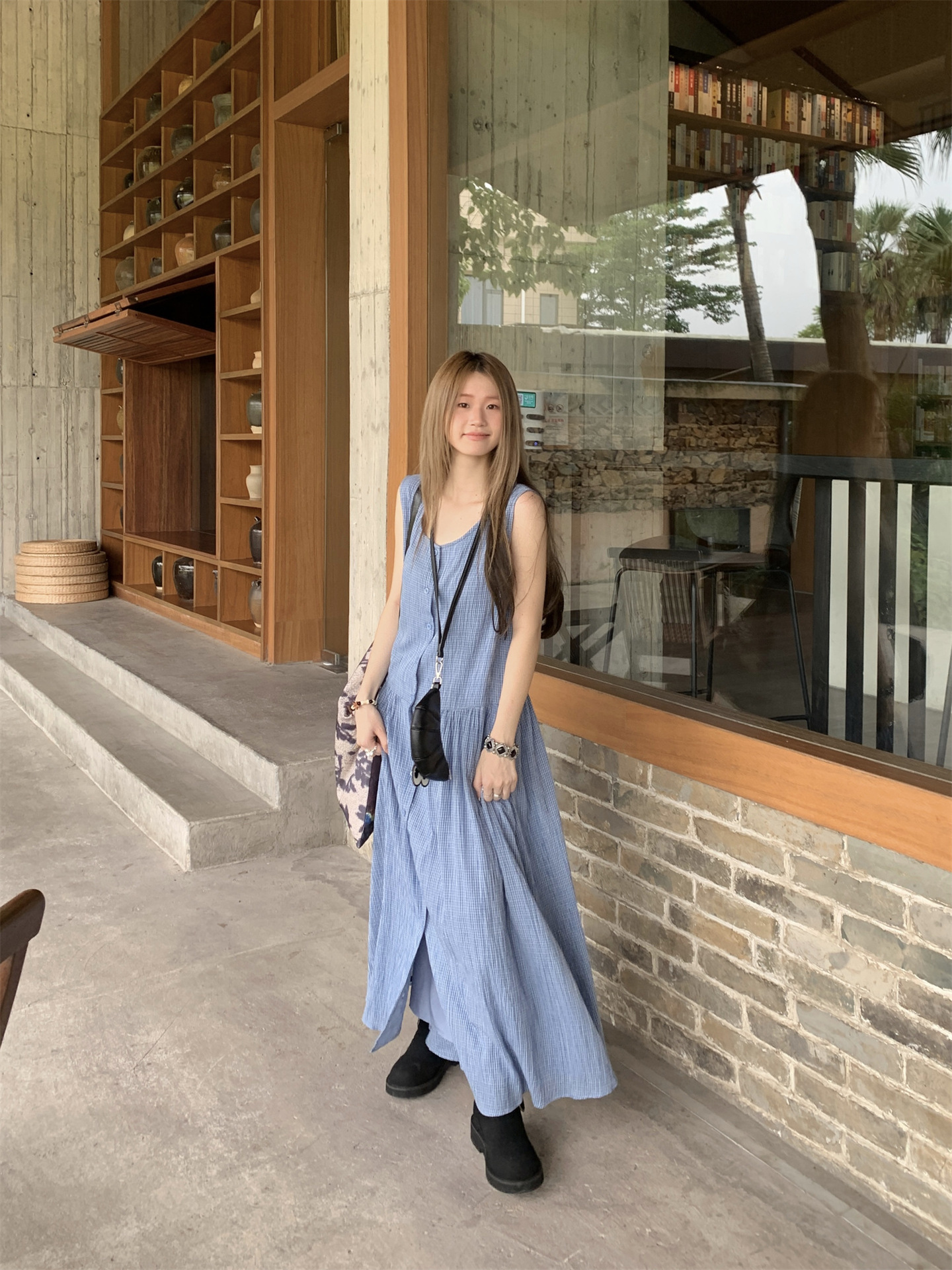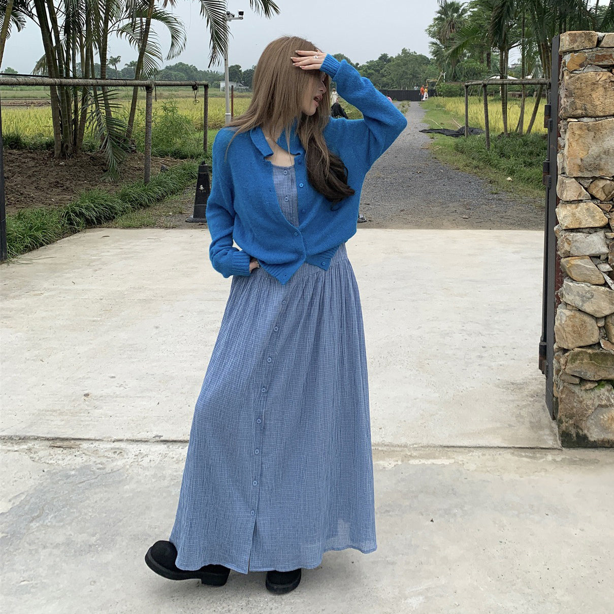 【ワンピース】韓国風チェック柄 夏の甘くて爽やかなノースリーブワンピース【SHシリーズ】