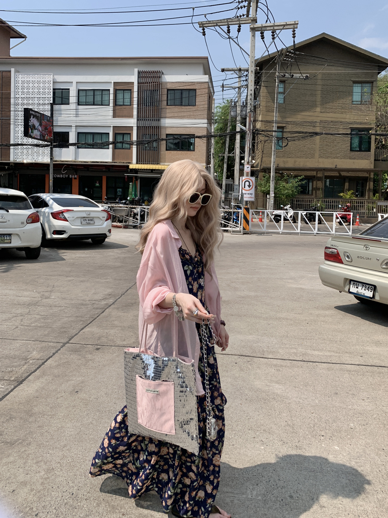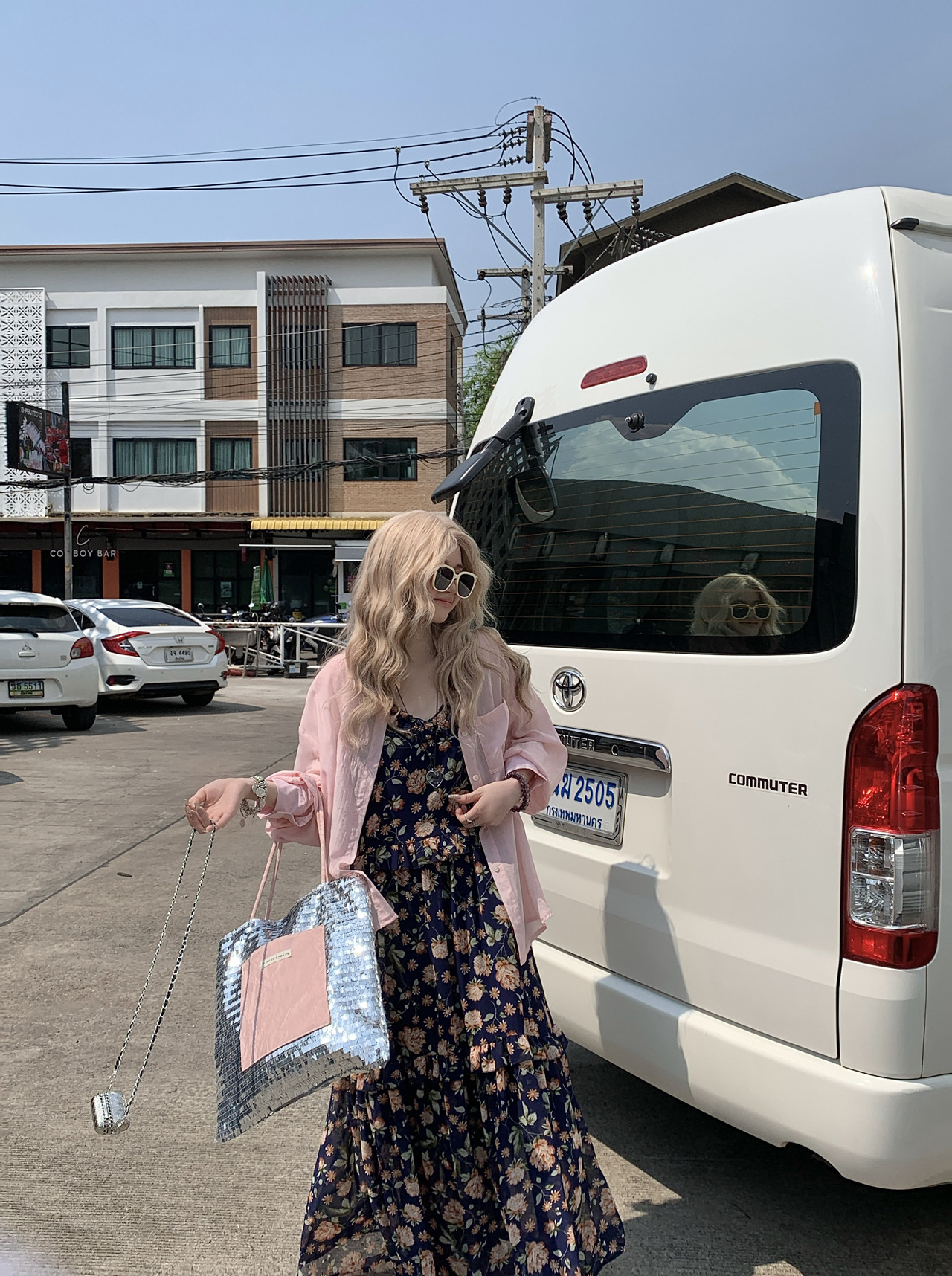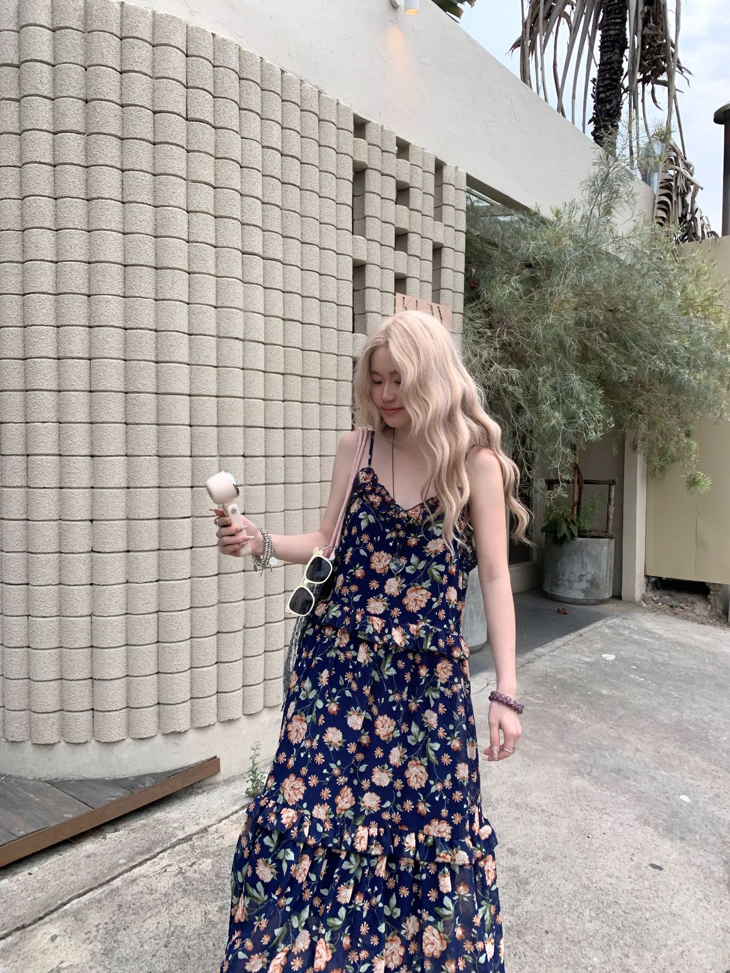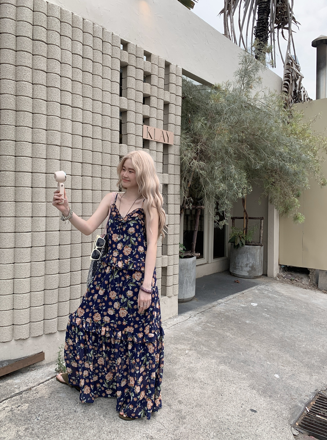 【ワンピース】韓国風 春秋新作 ゆったり大きめサイズ 体型カバー 花柄長袖ミディアムワンピース【SHシリーズ】