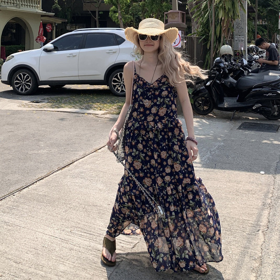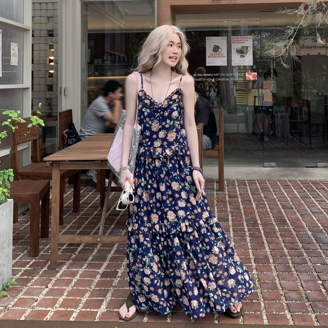【ワンピース】フレンチ 夏 気質感 ゆったりシルエット 体型カバー ノースリーブワンピース【SHシリーズ】