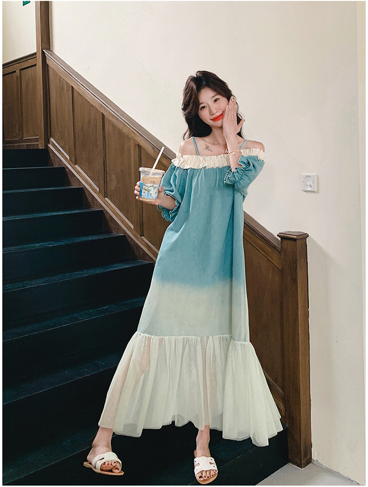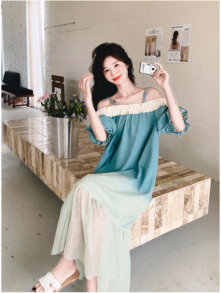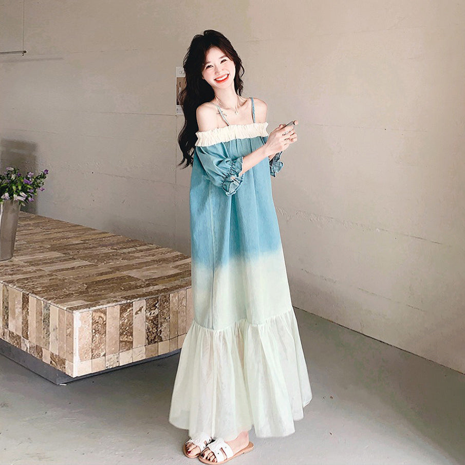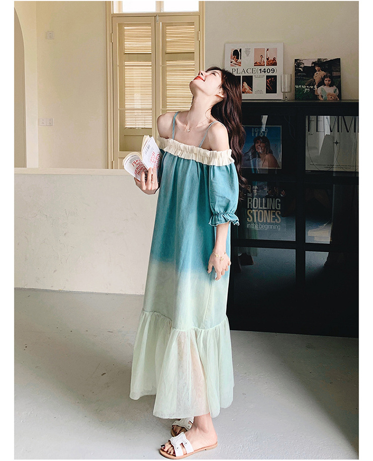 【ワンピース】夏 フレンチ温柔風 スウィート オフショルダーグラデーション 半袖ワンピース【SHシリーズ】