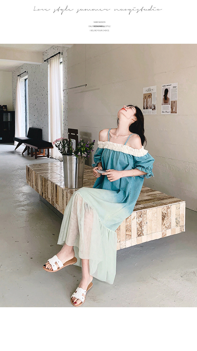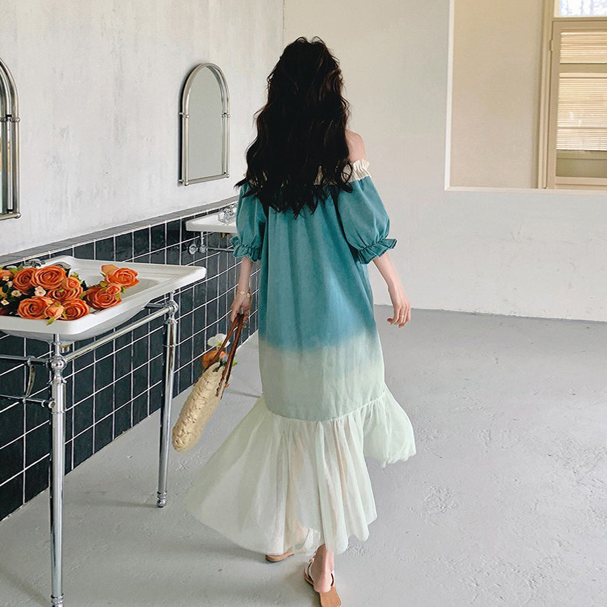 【商品名】【ワンピース】夏 フレンチ温柔風 スウィート オフショルダーグラデーション 半袖ワンピース【SHシリーズ】