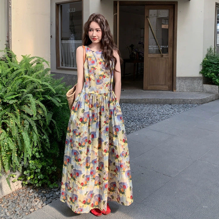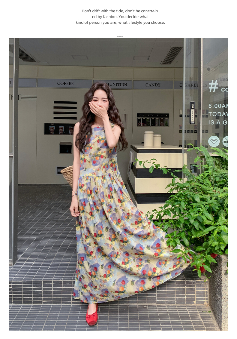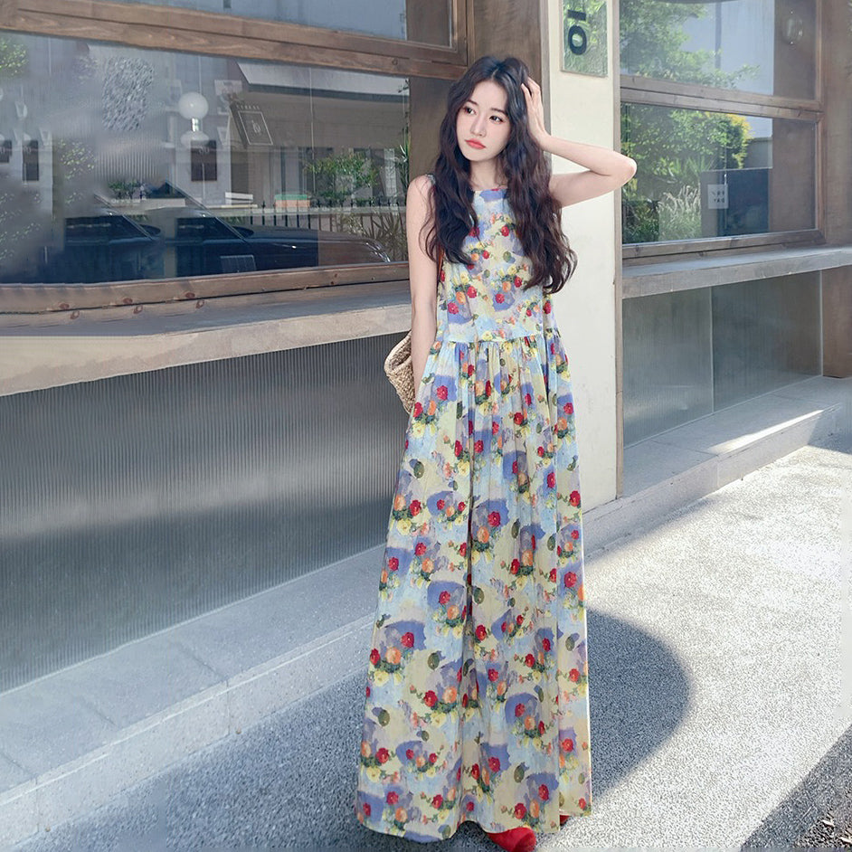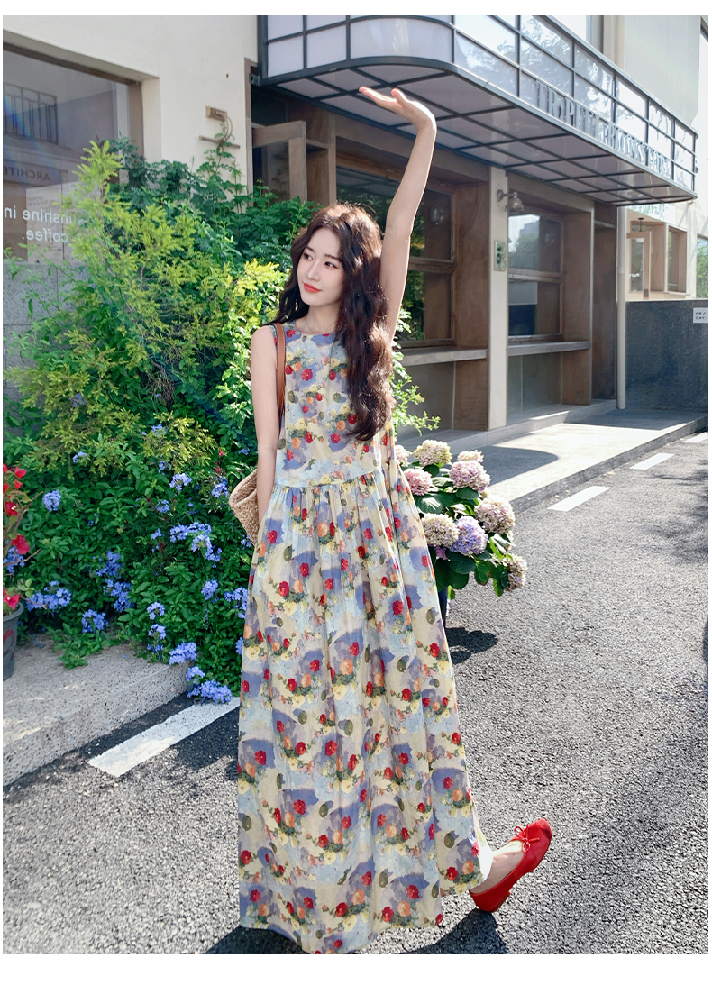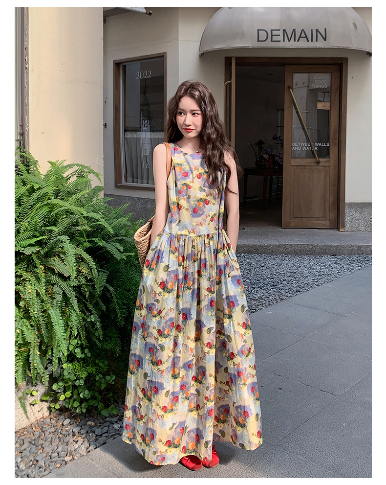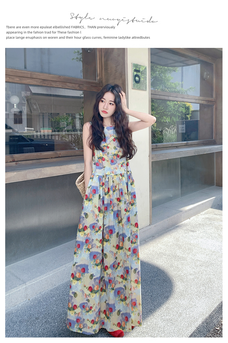 【商品名】【ワンピース】夏 バカンス風 ロマンティック ドーパミン フラワープリント ノースリーブワンピース【SHシリーズ】
