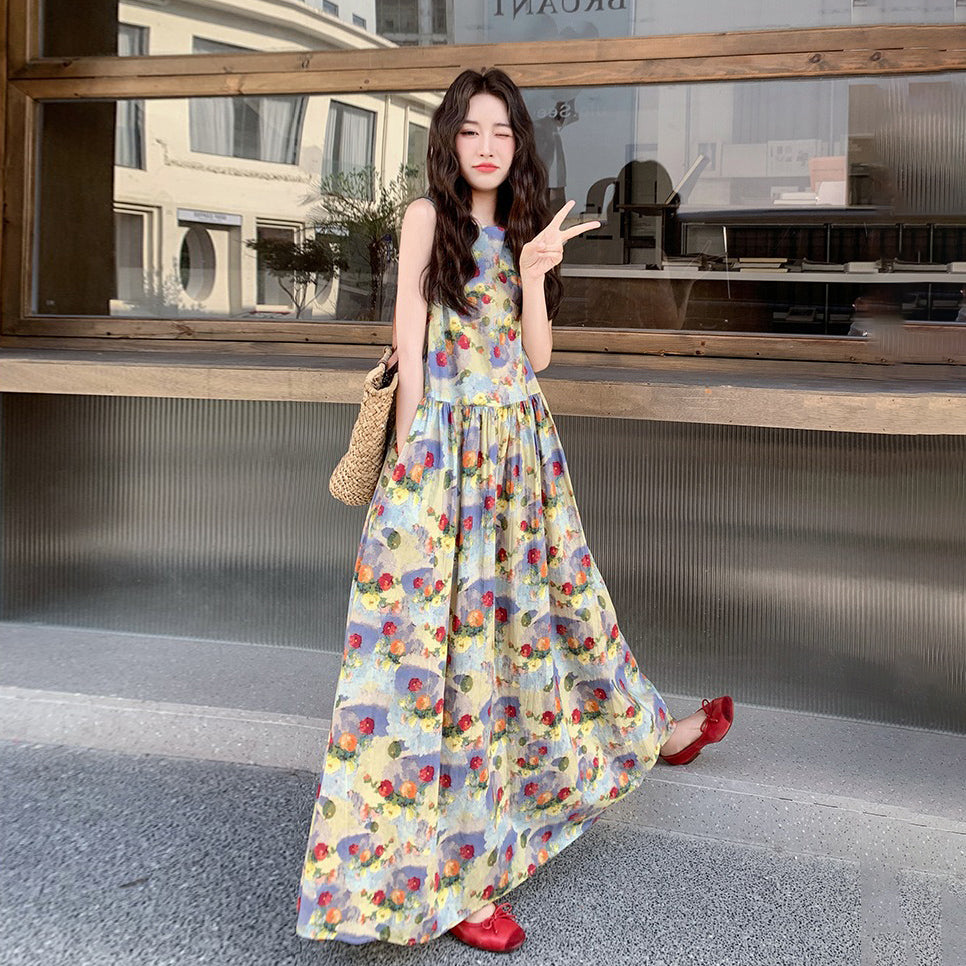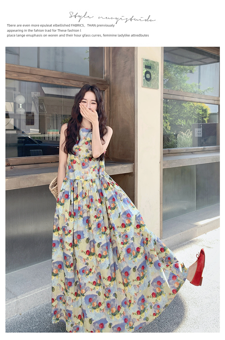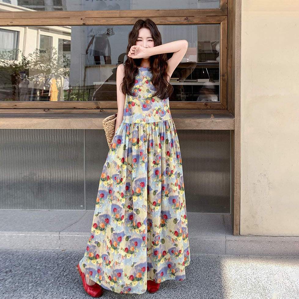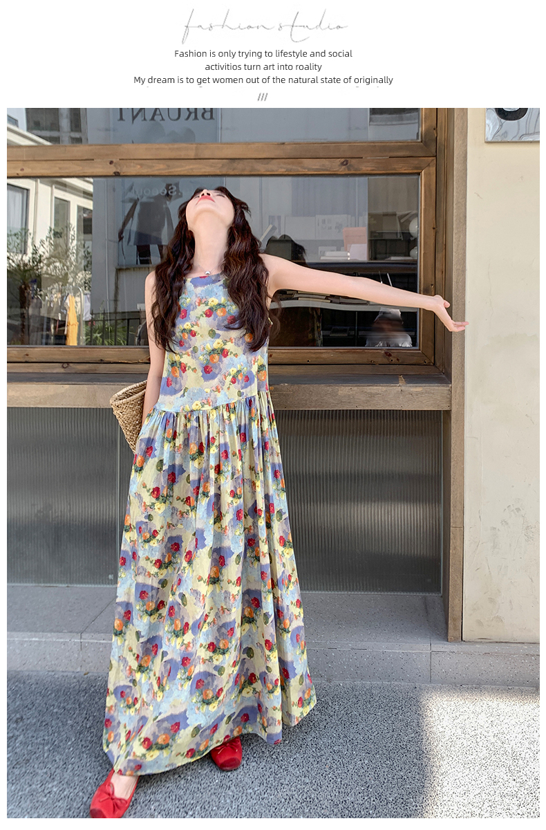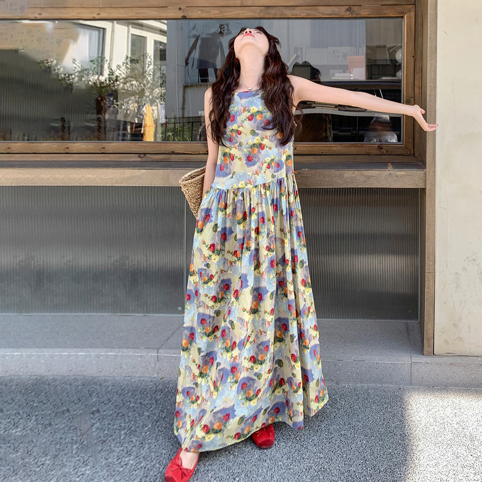 【商品名】【ワンピース】夏 バカンス風 ロマンティック ドーパミン フラワープリント ノースリーブワンピース【SHシリーズ】