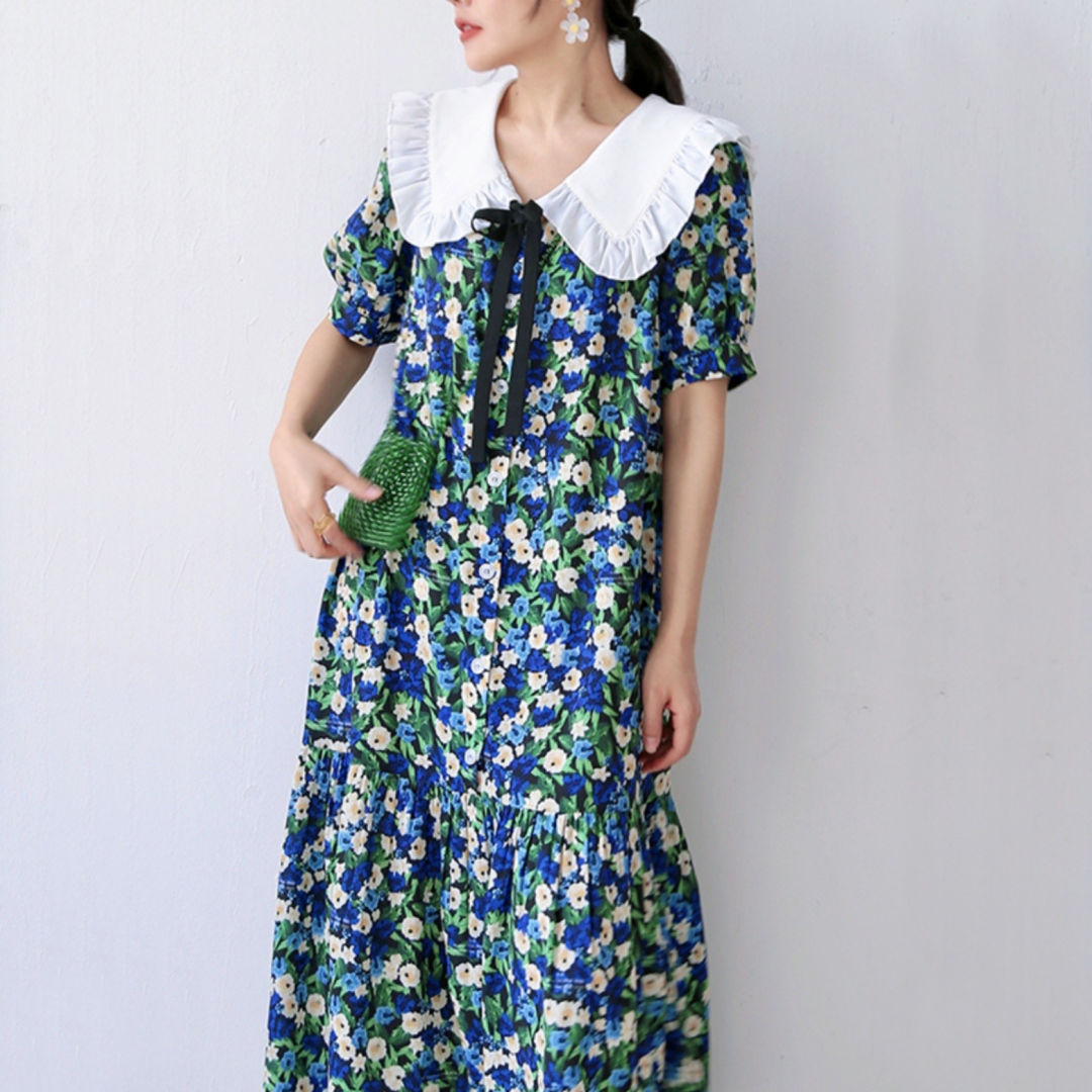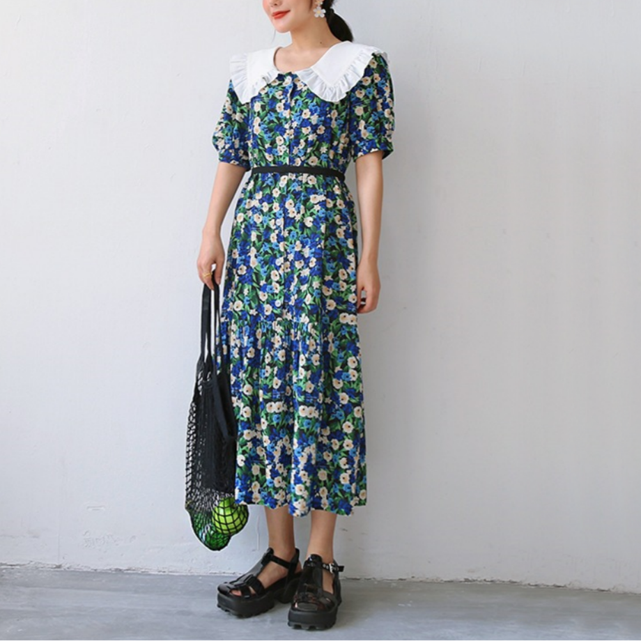 【商品名】【ワンピース】夏 襟付き ウエストマーク フェミニンコーデ 半袖 ワンピース 【SHシリーズ】