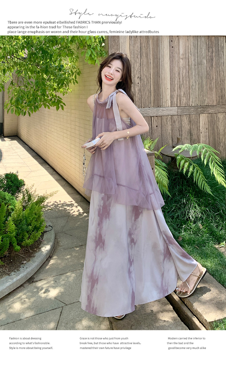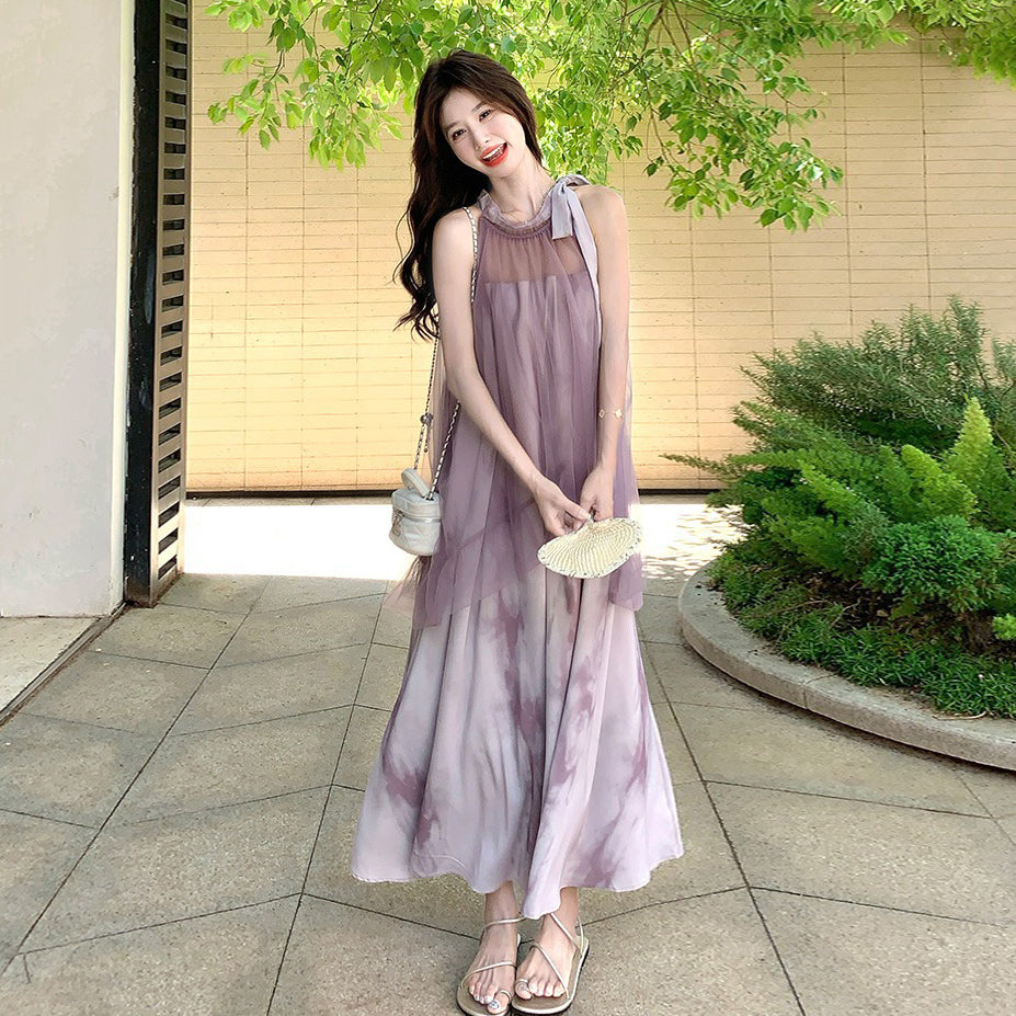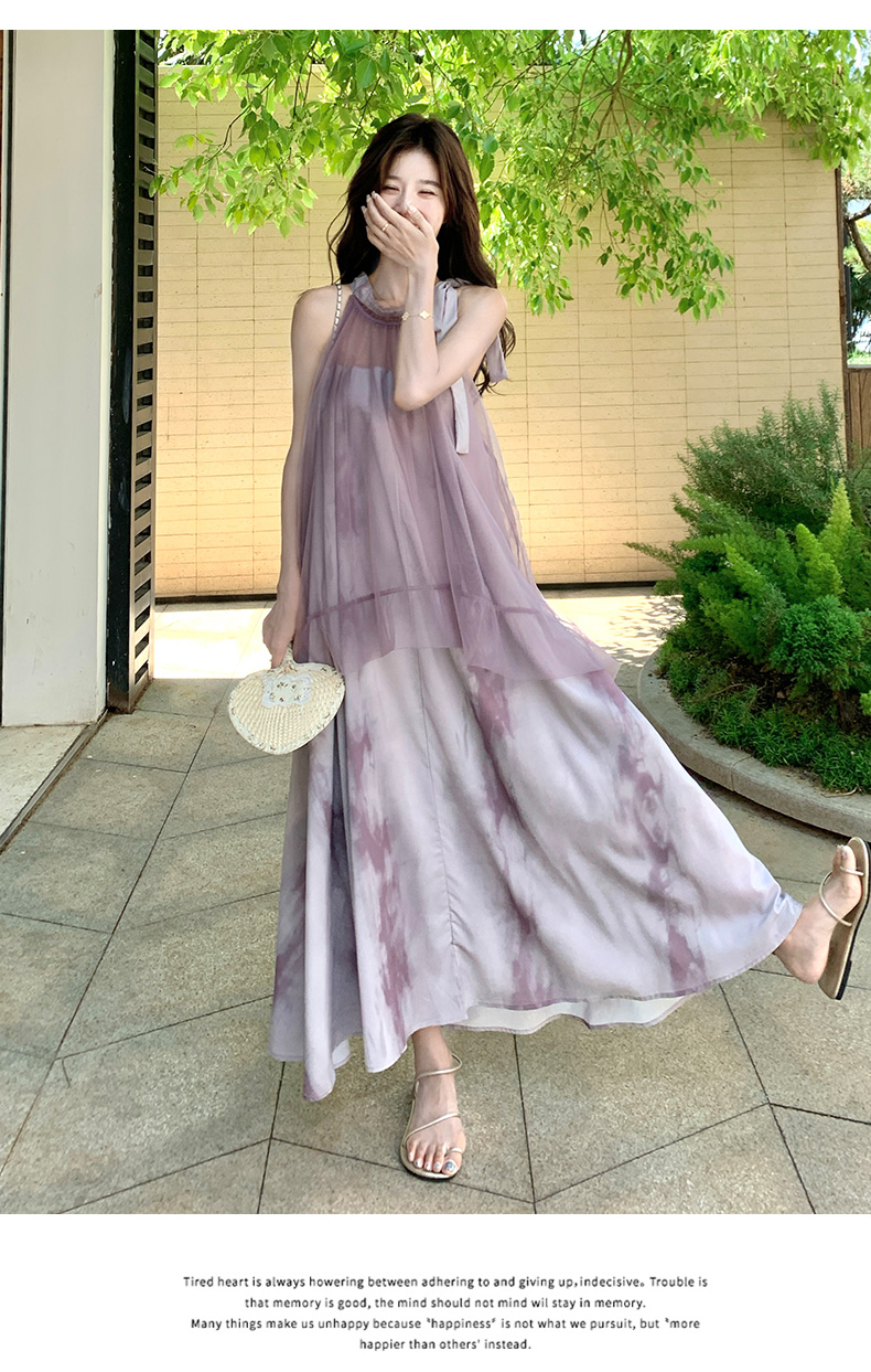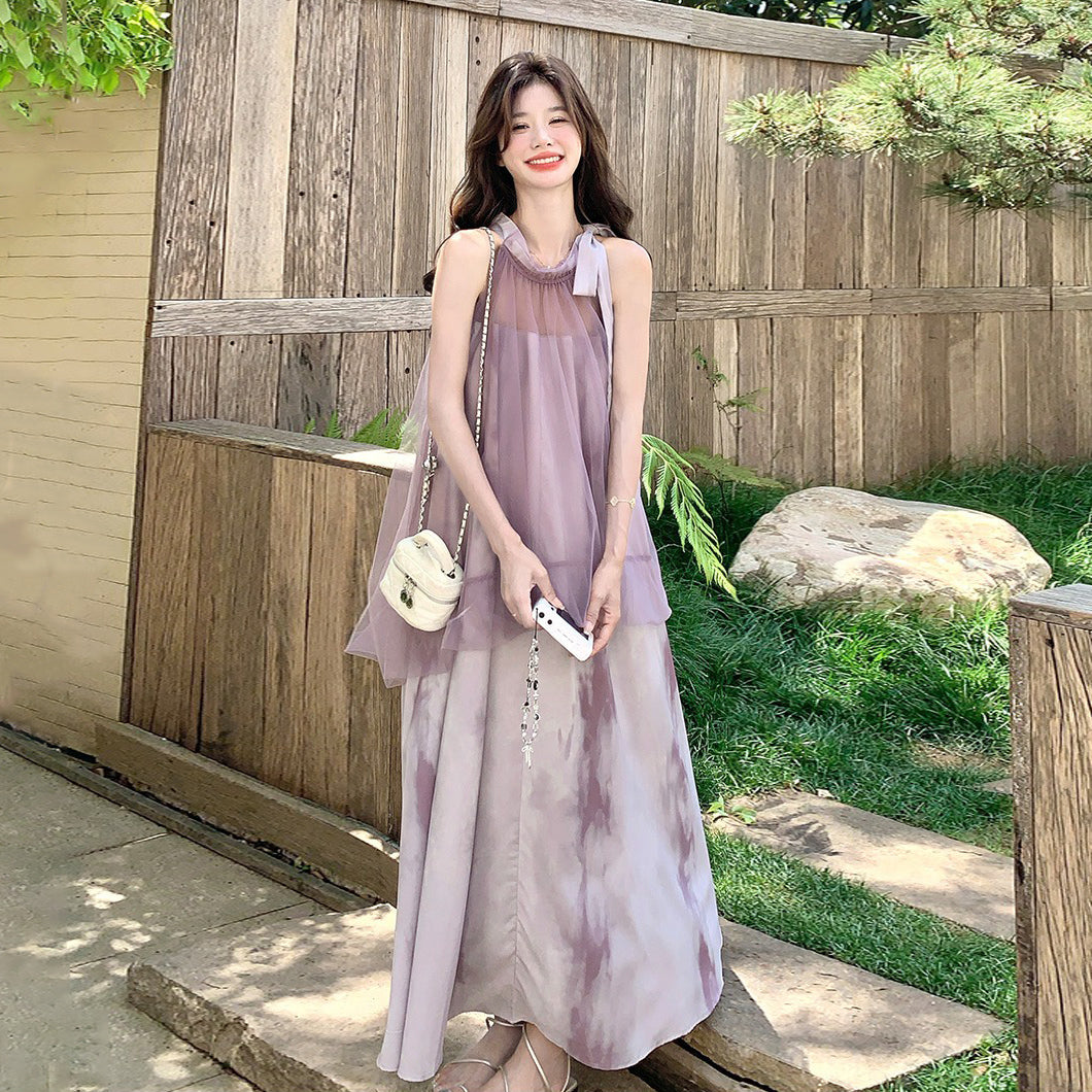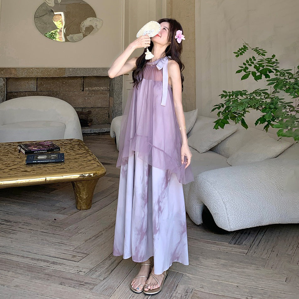 【ワンピース】フレンチ温柔感 フェイクツーインワンピース ノースリーブドレス【SHシリーズ】