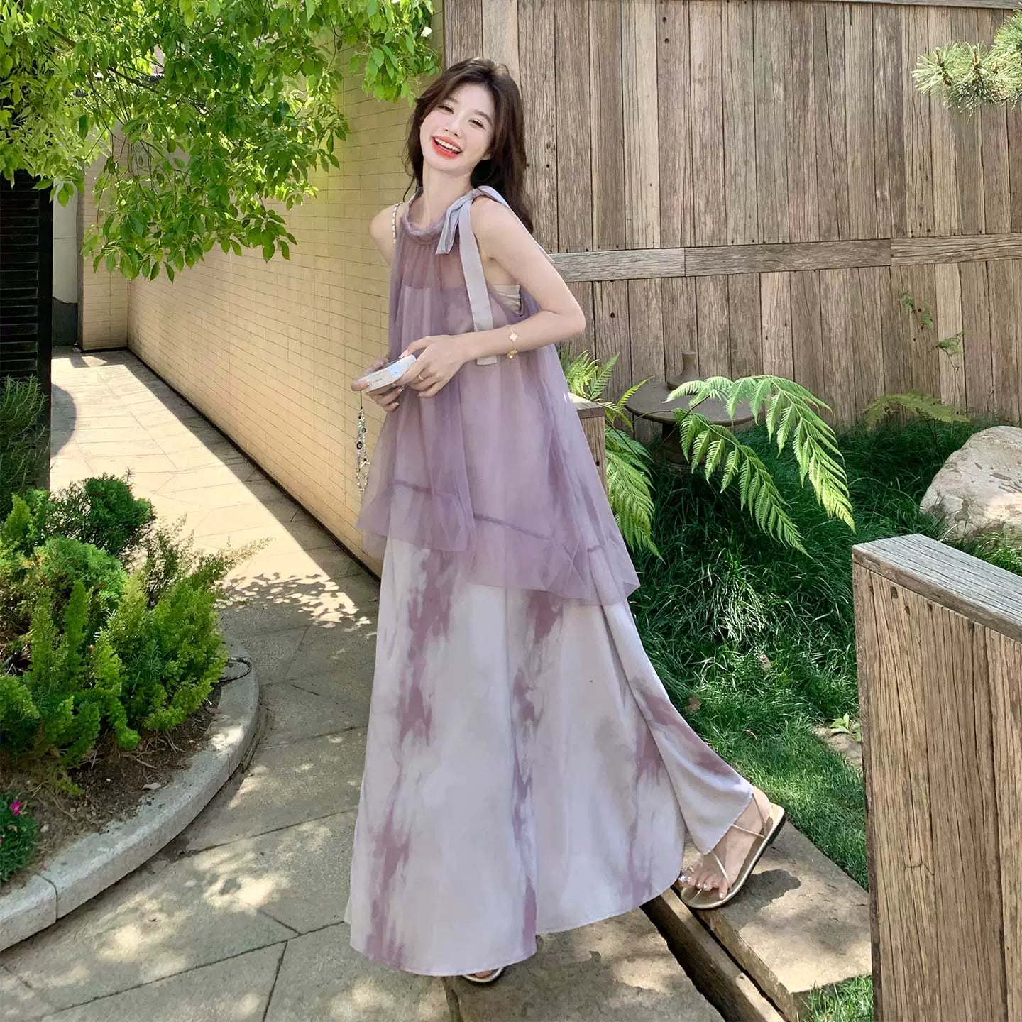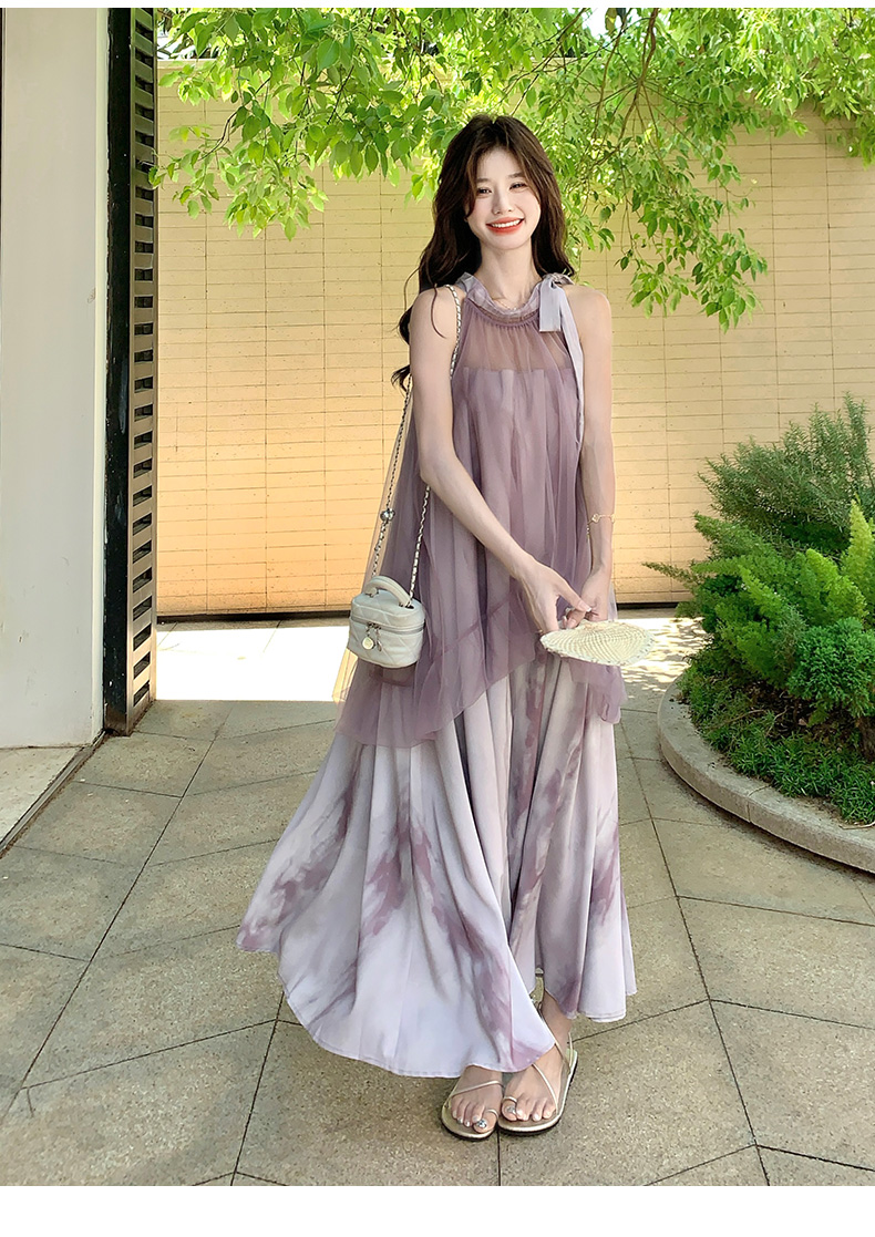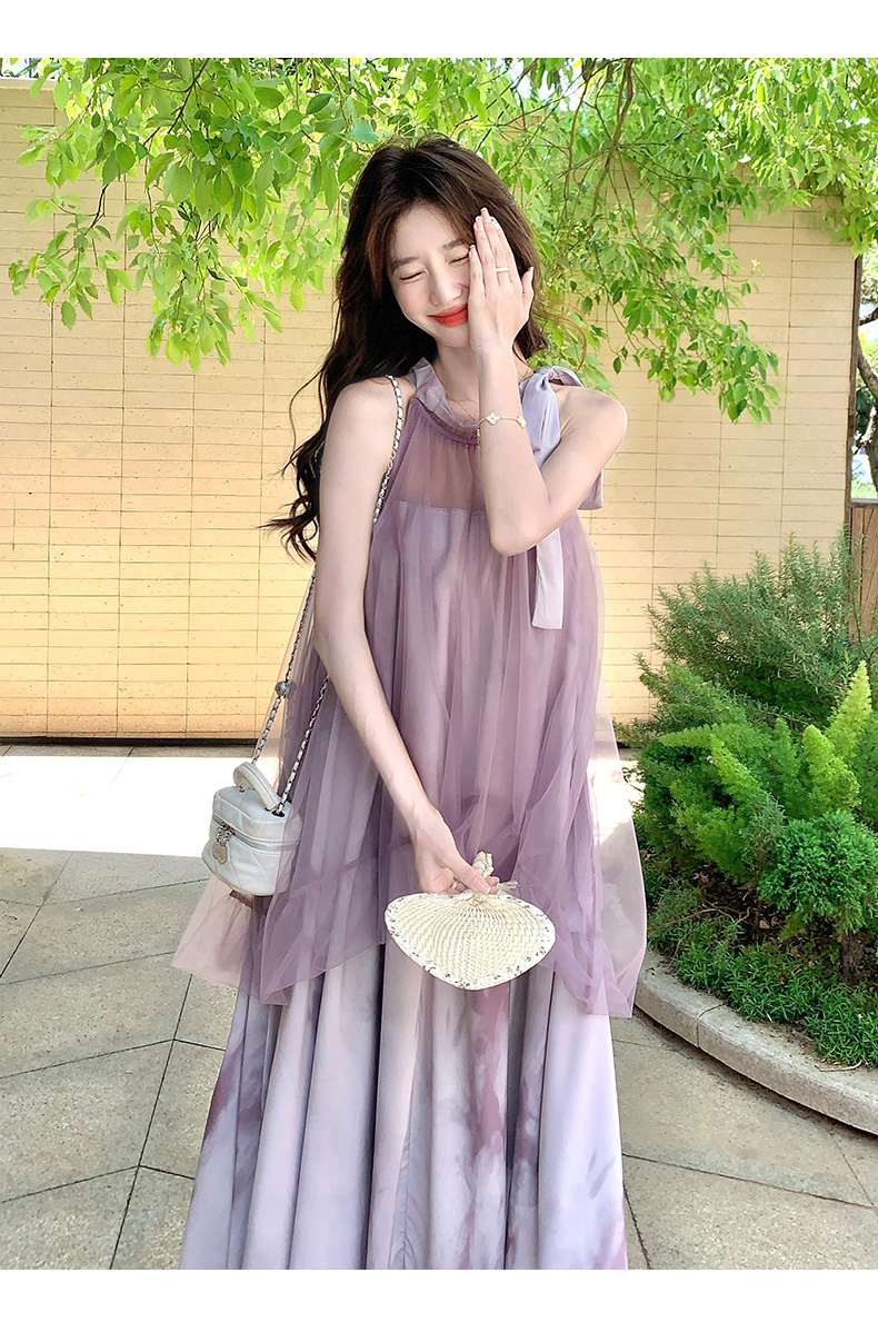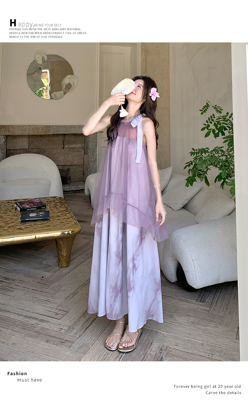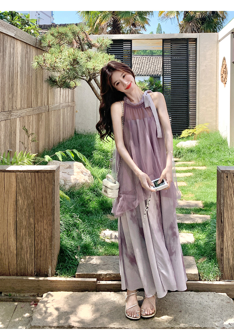 【ワンピース】フレンチ温柔感 フェイクツーインワンピース ノースリーブドレス【SHシリーズ】
