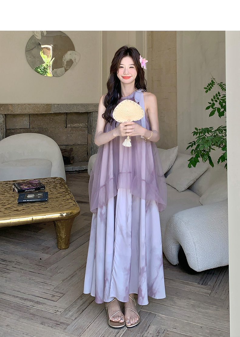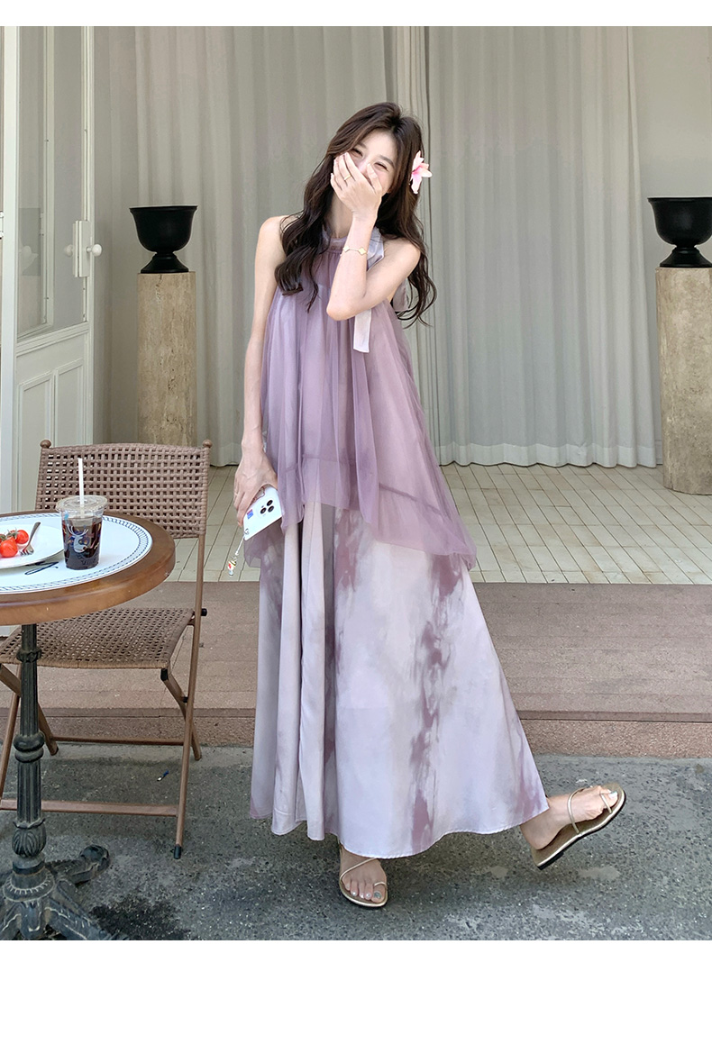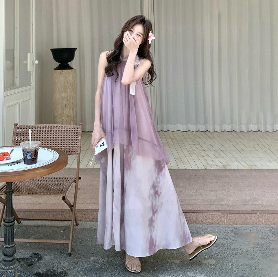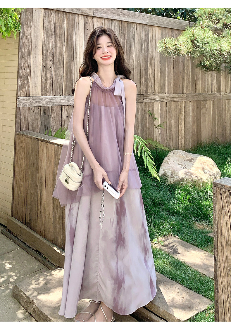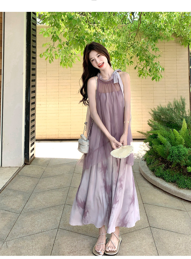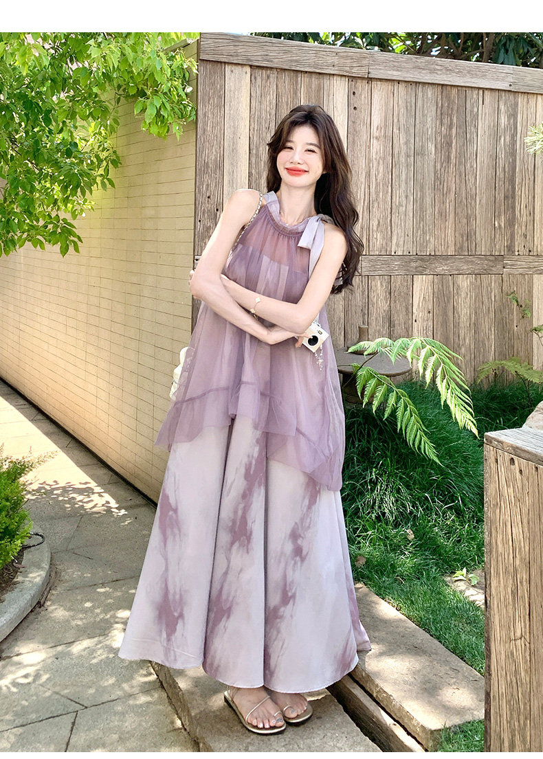【ワンピース】フレンチ温柔感 フェイクツーインワンピース ノースリーブドレス【SHシリーズ】