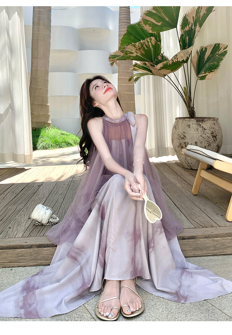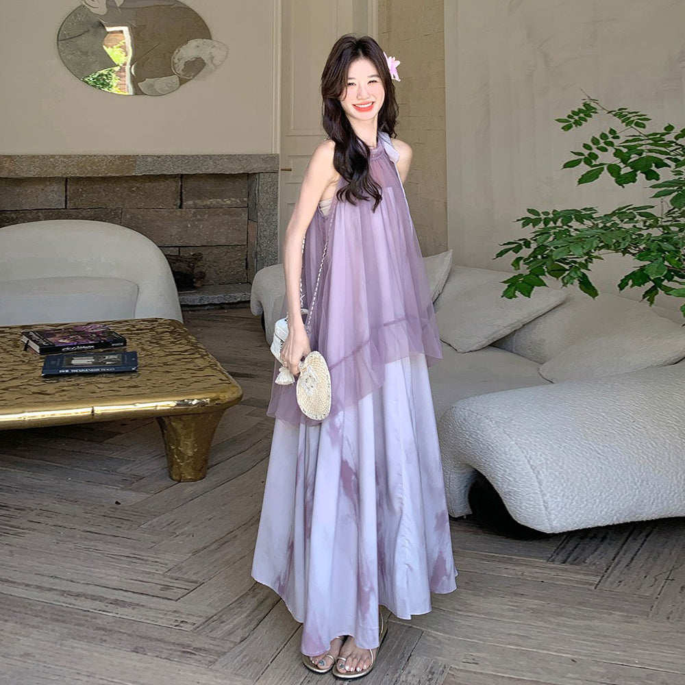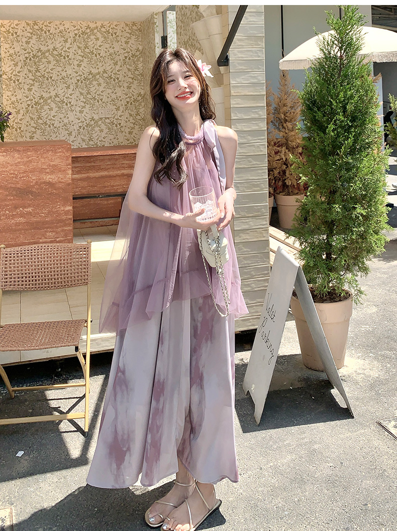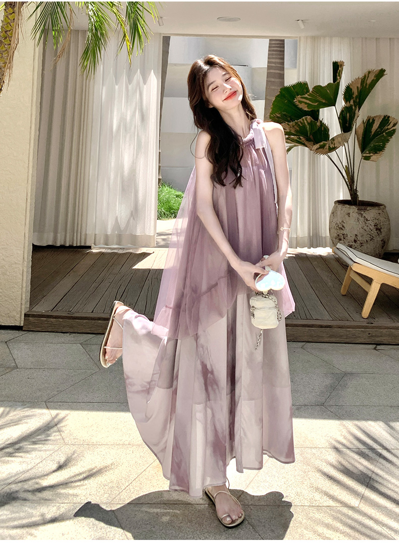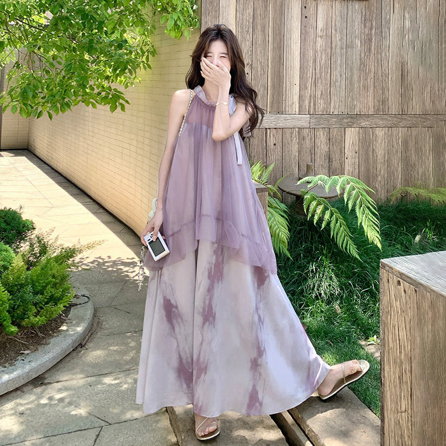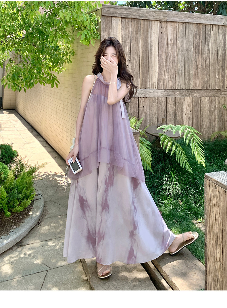 【ワンピース】フレンチ温柔感 フェイクツーインワンピース ノースリーブドレス【SHシリーズ】