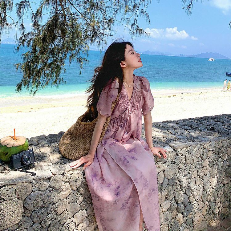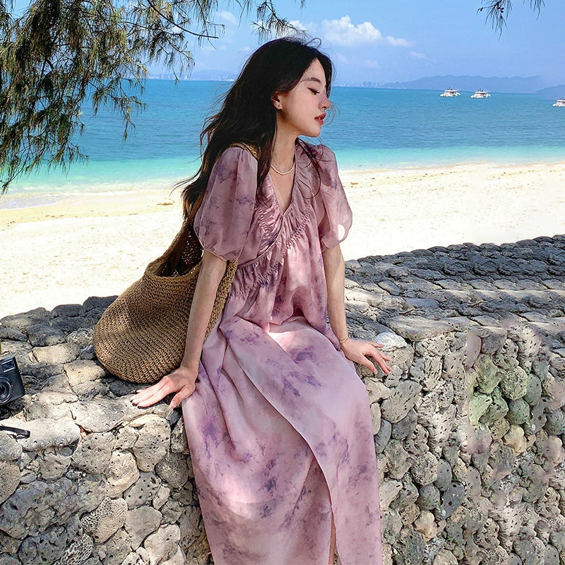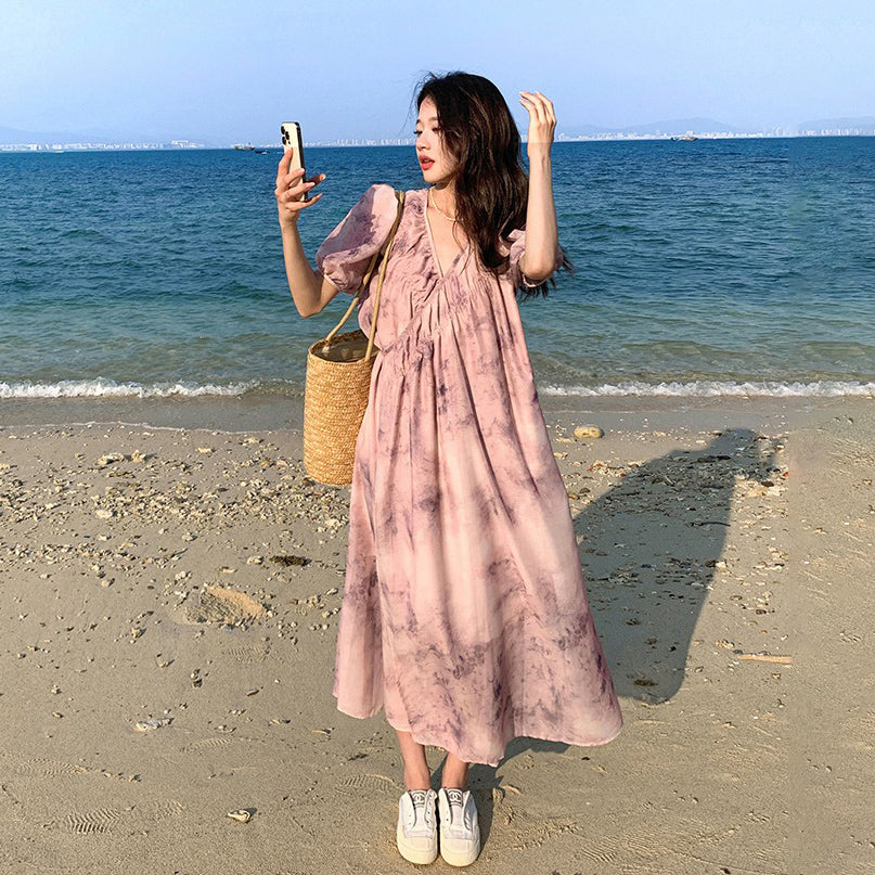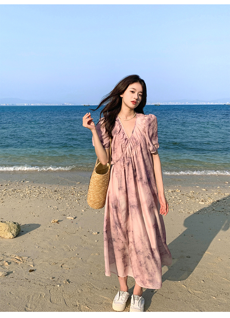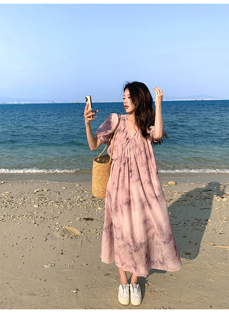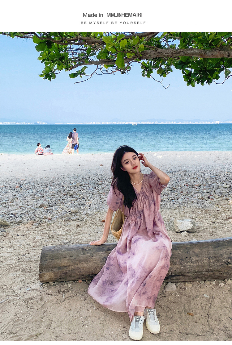 【商品名】【ワンピース】フレンチ風 夏 優しい ラフなリゾート風 半袖ワンピース【SHシリーズ】