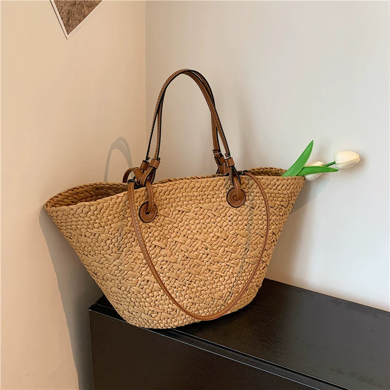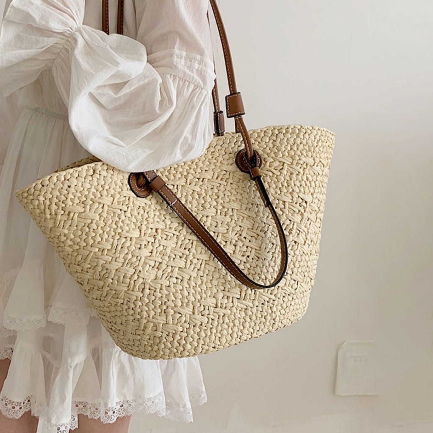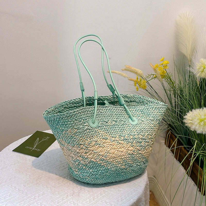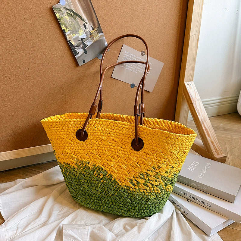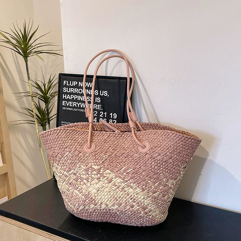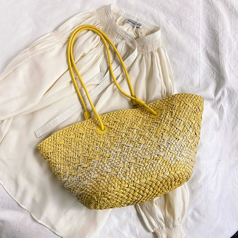 【商品名】10色展開【バッグ】大容量 通勤 トートバッグ 夏新作 ビーチ旅行リゾート 編みバッグ ショルダーバッグ