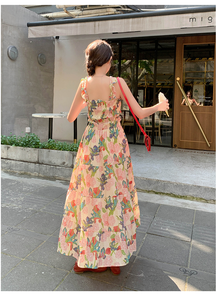 【商品名】【ワンピース】夏 フレンチ風 スリム効果 ドーパミン 油絵プリント ノースリーブワンピース【SHシリーズ】