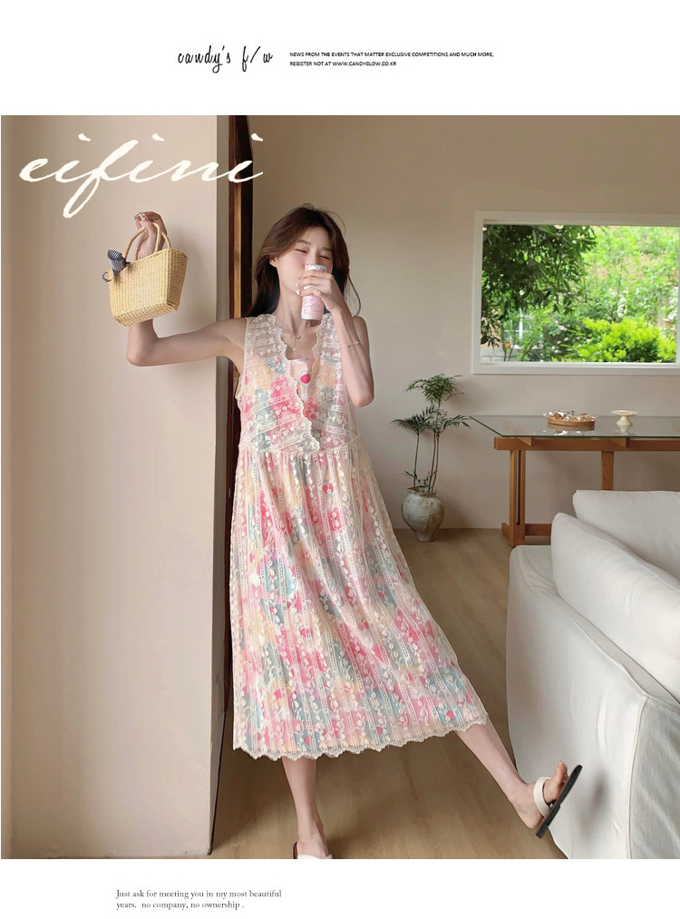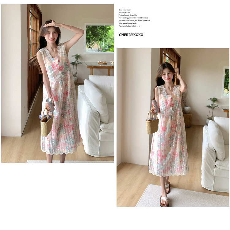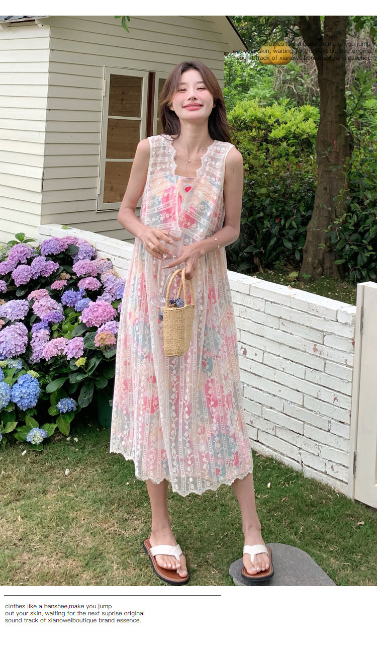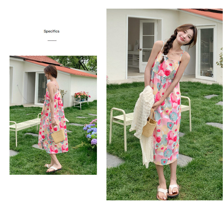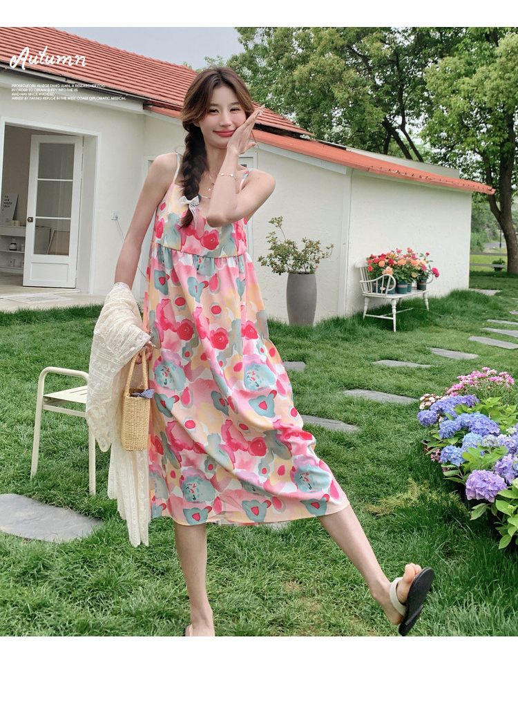 【商品名】【ワンピース】今年のトレンド 油絵プリントワンピース+メッシュワンピース 高級感 レイヤード 2点セット【SHシリーズ】