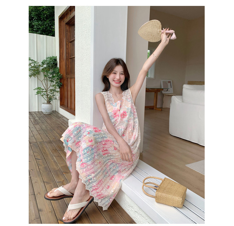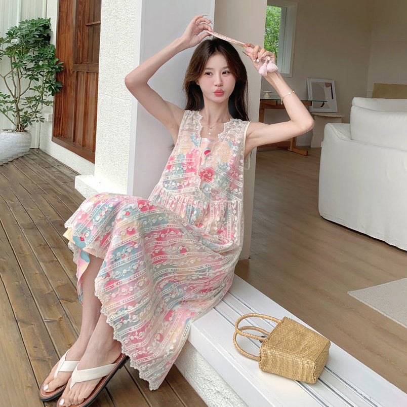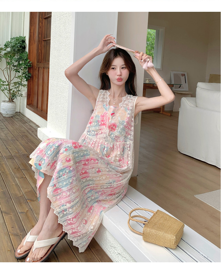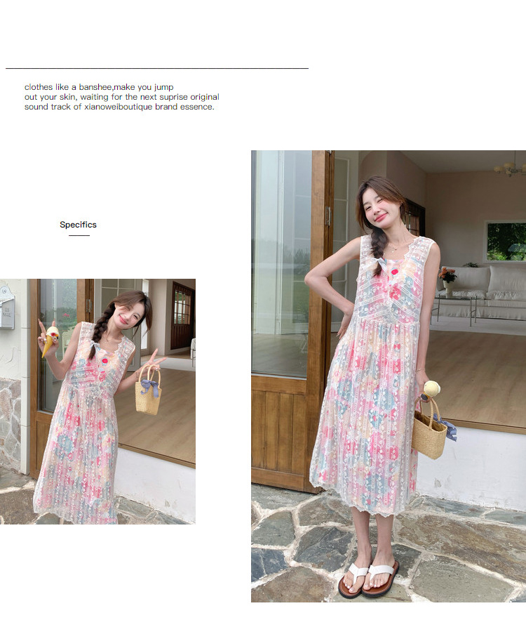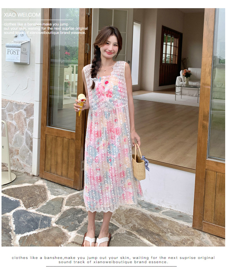 【商品名】【ワンピース】今年のトレンド 油絵プリントワンピース+メッシュワンピース 高級感 レイヤード 2点セット【SHシリーズ】