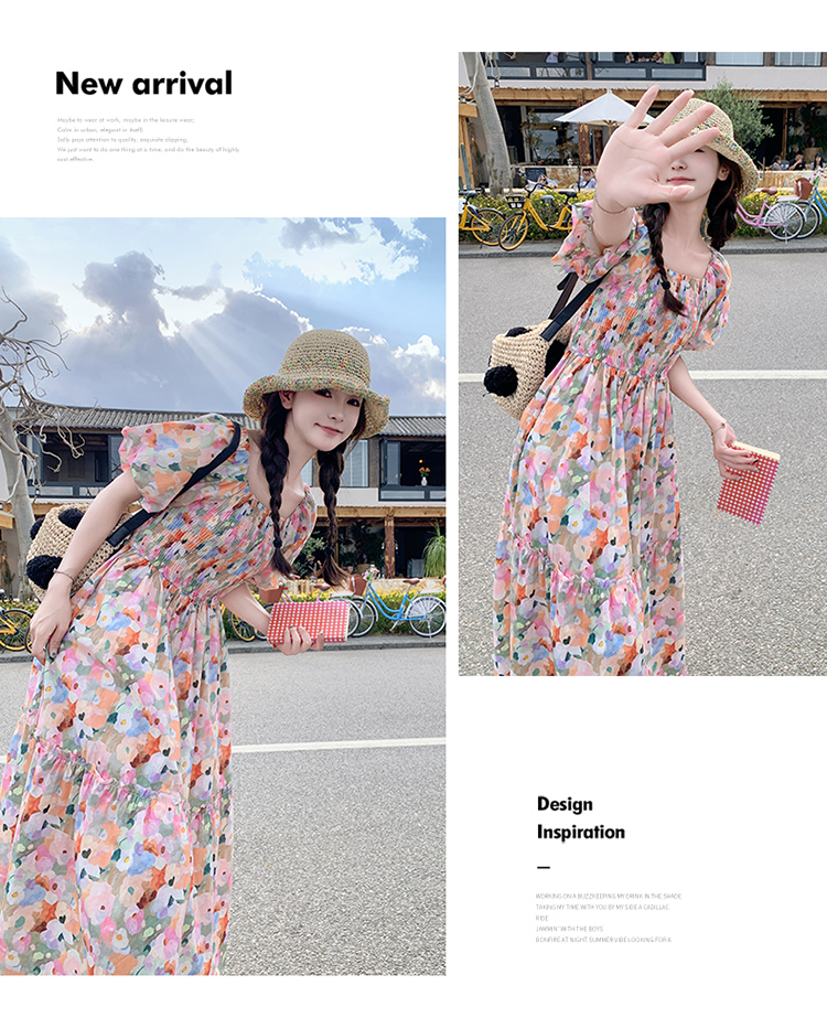 【商品名】【ワンピース】ピンクプリント パフスリーブ 夏 カントリー風 半袖ワンピース【SHシリーズ】