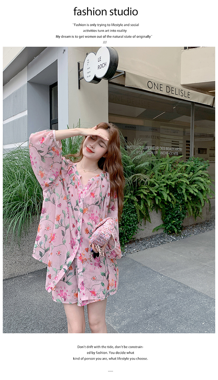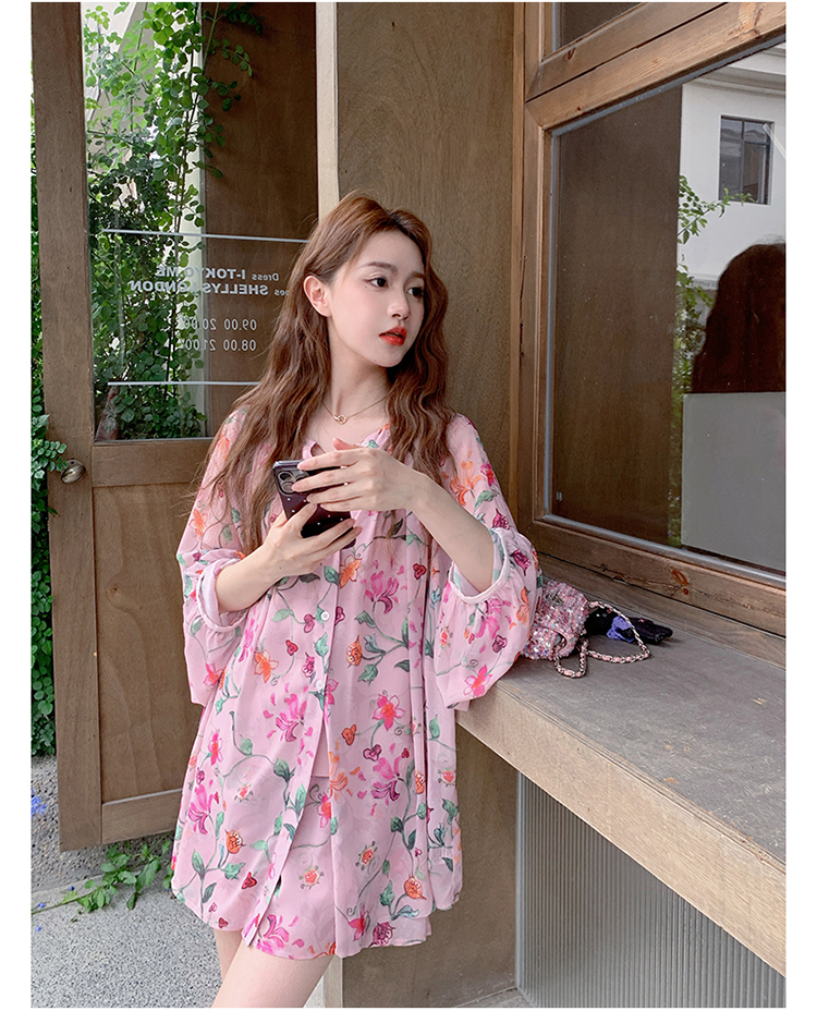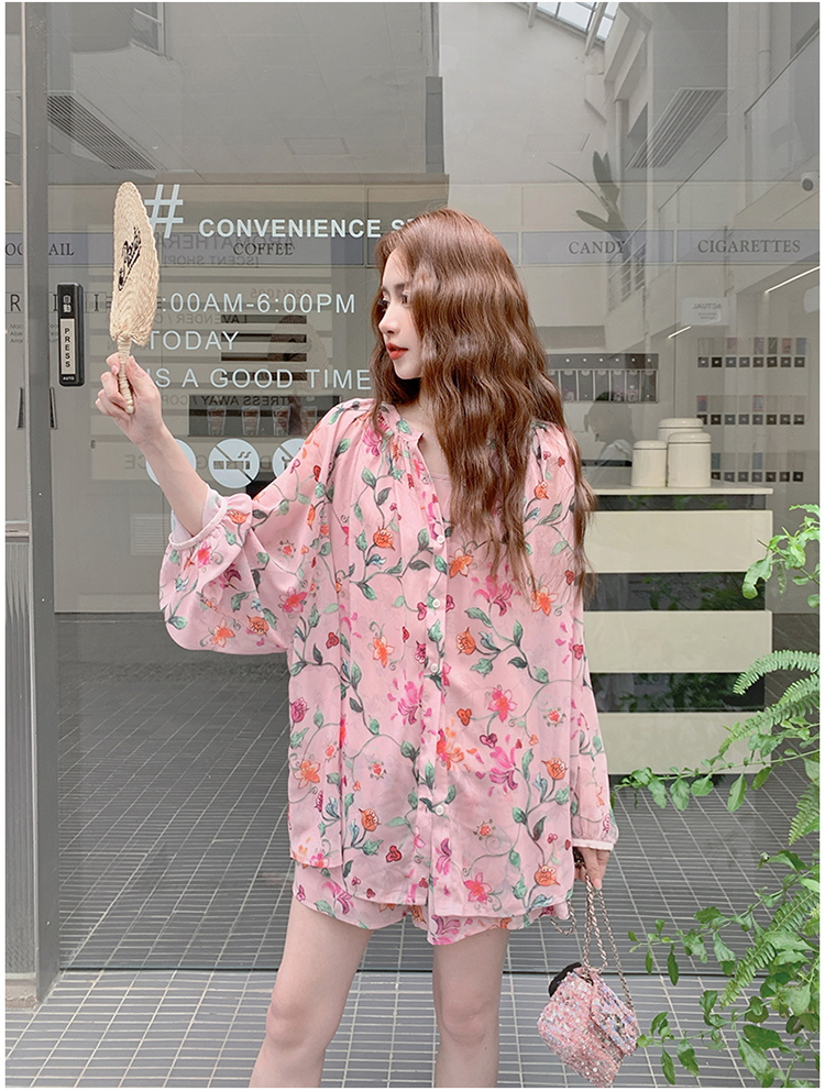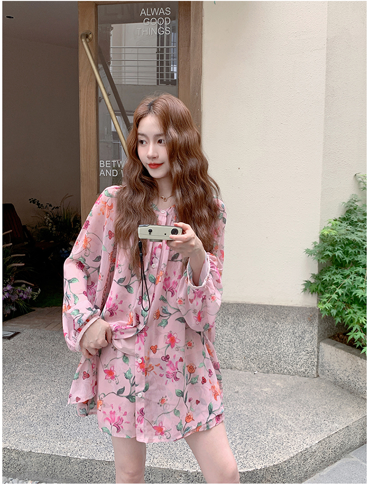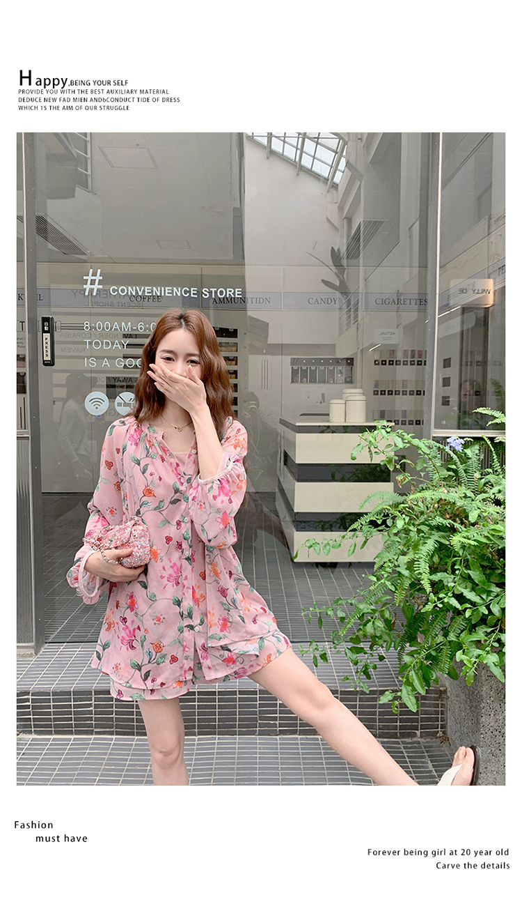 3点セット!【セットアップ】夏 日焼け防止 長袖プリントシャツ+キャミソール+ショートパンツ 3点上下セット【SHシリーズ】
